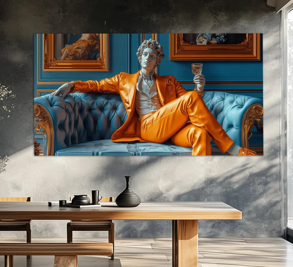 Abstract Man with Wine Statue Sculptor Unframed Canvas Print Australian Wall Art