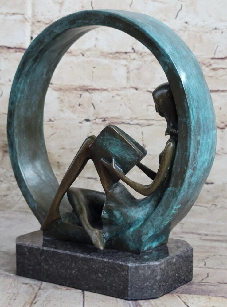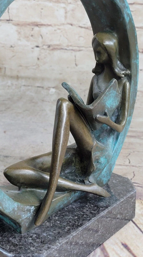 Condition : This sculpture is in perfect condition. Bronze Dimensions with Marble Base: Height 9" x Width 7.5" Marble Dimensions:6" X 3.5" Height without base:8" Weight:9 LBS Inventory:69YCN150C6396 This delightful sculpture of a young girl absorbed in her book is a heartwarming depiction of childhood wonder and innocence. The piece, standing at 9 inches tall, features a beautiful verdigris and bronze patina finish that gives it a timeless, antique feel. Crafted with exceptional attention to detail, every aspect of the sculpture from the girl's serene expression to the texture of the book in her hands has been masterfully rendered by the renowned artist Collett. It's the perfect addition to any tabletop or bookshelf and is sure to bring a touch of whimsy and charm to any space. Capture the enchanting essence of childhood with this delightful sculpture portraying a young girl immersed in her book. Standing at a height of 9 inches, the piece radiates a heartwarming sense of wonder and innocence. Its exquisite verdigris and bronze patina finish adds a touch of timeless charm, evoking an antique aesthetic that resonates across eras. Crafted with meticulous attention to detail, every element of the sculpture reflects the artist Collett's mastery. From the serene expression on the girl's face to the intricate texture of the book she holds, each feature has been expertly rendered. This sculpture stands as a testament to the artist's ability to capture the nuances of emotion and the subtleties of the human form. A perfect addition to any tabletop or bookshelf, this piece brings an aura of whimsy and charm to any environment. With its evocative portrayal of childhood curiosity and a touch of vintage elegance, this sculpture invites viewers to rekindle their own sense of wonder and transports them to a realm where imagination knows no bounds. Signed Original Artwork by Collet Girl Reading A Book Bronze Sculpture Figurine YCN-150C Video will open in a new window Using the eBay App? Paste link into a browser window: [isdntekvideo]