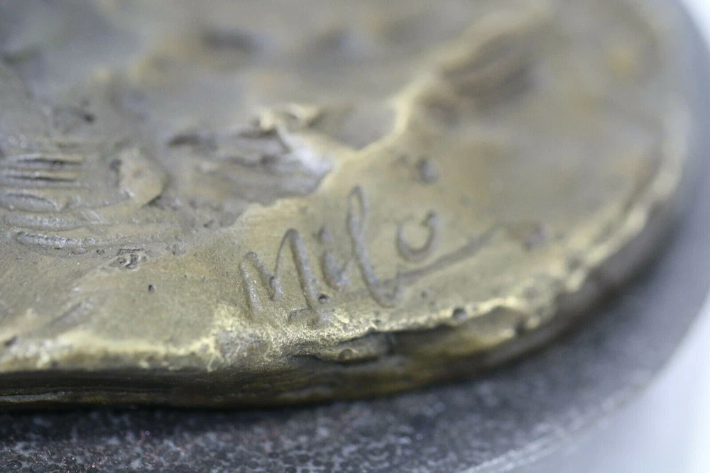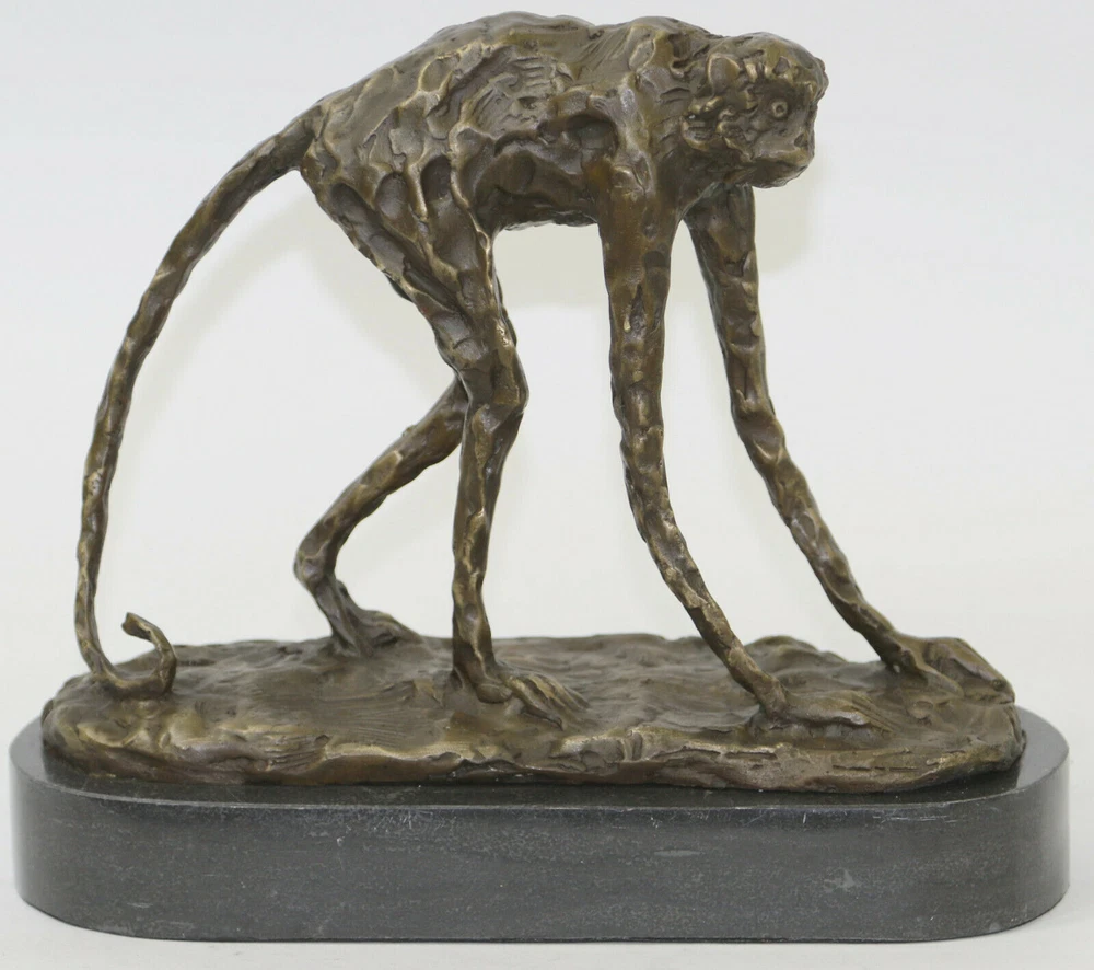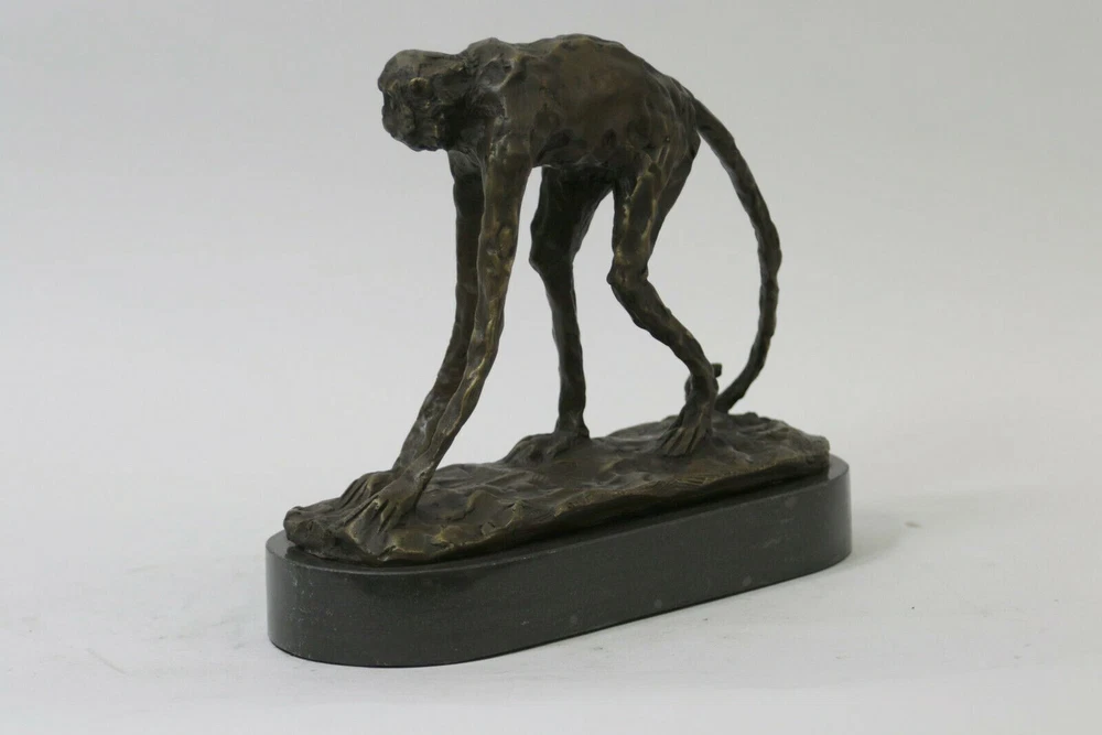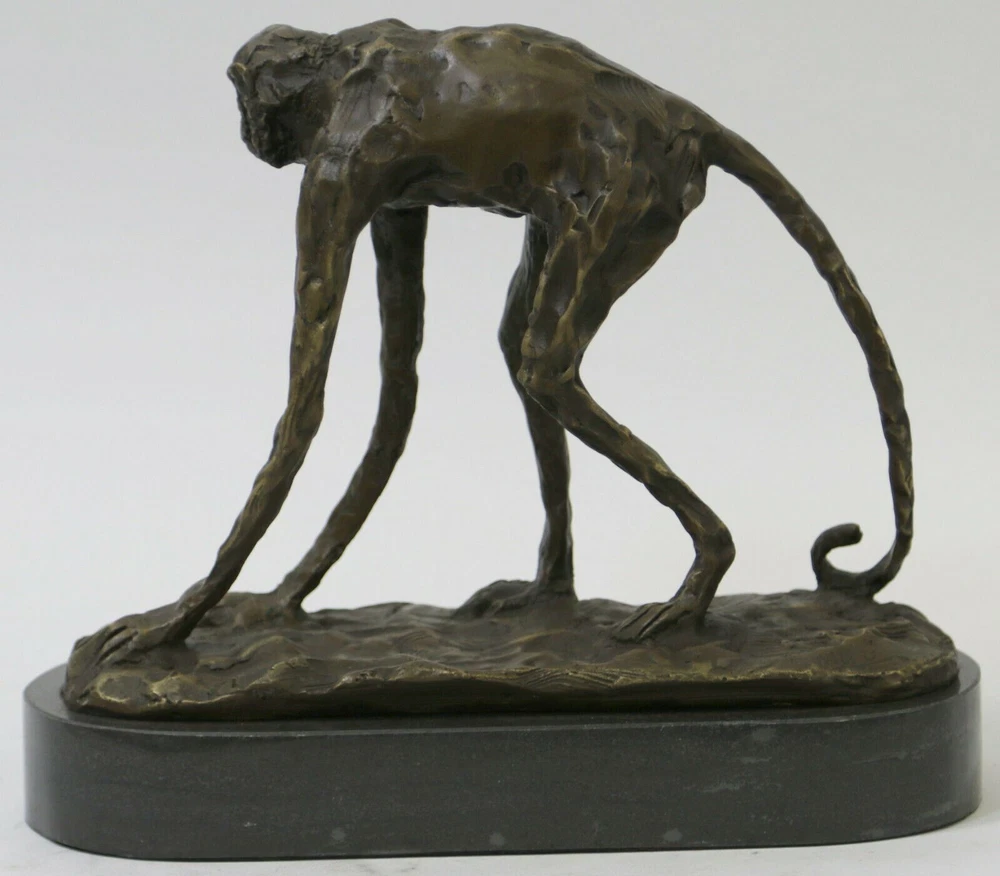 . Condition:nbsp; This sculpture is in perfect condition. Bronze Dimensions with Marble Base: Height 10" X Width 11.5" Marble Dimensions: Diameter 11.5" Height without base: 9" Weight: 14 LBS Inventory: 31FDW0985673 Discover the captivating world of Miguel Lopez's animal sculptures with this exquisite bronze figurine of an ape. As one of the most impressive pieces of the modern era, it seamlessly embodies the artistic legacy of the renowned Portuguese artist. With over 500 sculptures and statues created throughout his career, Milo's Walking Ape stands as a testament to his exceptional talent and unique approach to art. Mounted on a discreet marble base, the bronze ape figurine showcases authentic, slender proportions with a slightly abstracted surface design, reflecting the artist's time in Paris and his innovative style. The Walking Ape is one of Milo's masterpieces, skillfully accented with polishings that highlight the valuable material. Each sculpture undergoes a meticulous casting and refining process by hand, adhering to the well-established lost wax technique and strict quality guidelines. Experience the artistry firsthand with this signed piece by the artist, Milo. The decorative bronze ape figurine brings a touch of elegance and sophistication to any space, making it a treasured addition to your art collection or a thoughtful gift for any art enthusiast. Embrace the legacy of Miguel Lopez and his enthralling animal sculptures through this extraordinary creation. Abstract Modern Art Artwork Ape Monkey Animal Bronze Sculpture Marble Decor Sale www.bronzhaus.com Video will open in a new window Using the eBay App? Paste link into a browser window: [isdntekvideo]