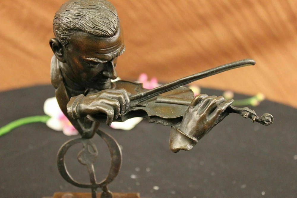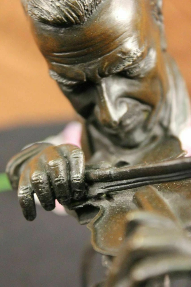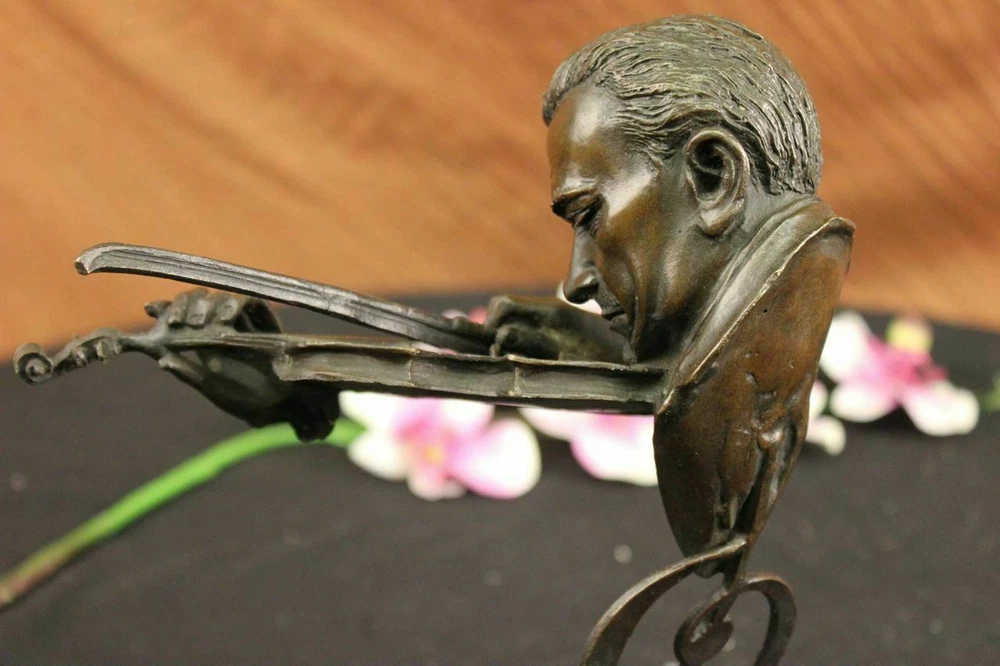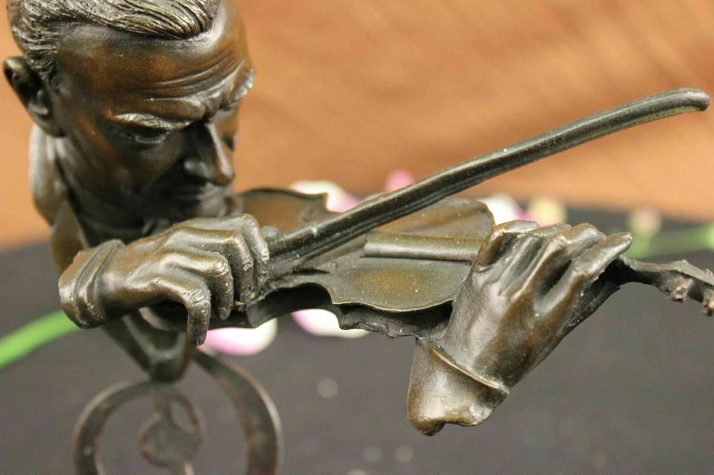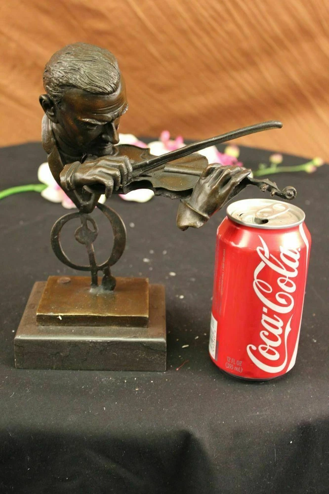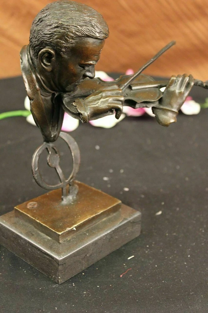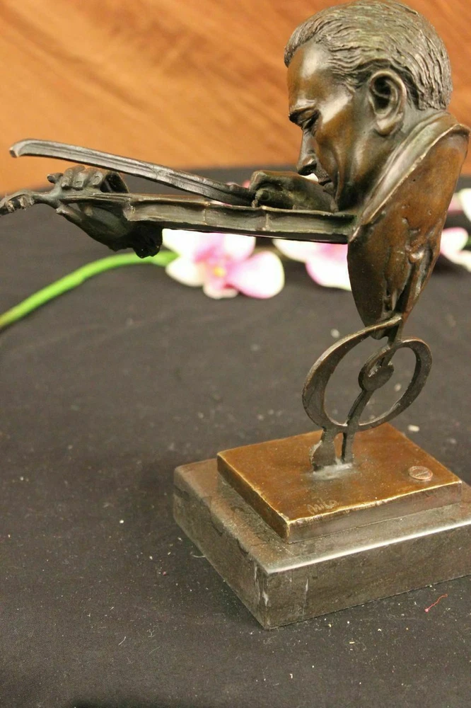 . . Condition :nbsp;This sculpture is in a perfect condition. Bronze Dimensions with Marble Base: Height 9" x Width 10" Marble Dimensions: 4 1/2" X 4" Height without base: 8" Weight: 5 LBS Inventory: 29-Y7583492 Immerse yourself in the world of music with this extraordinary abstract sculpture of a musician playing the violin. This exquisite piece captures the essence of the artist's imagination, focusing on the musician's head, face, hands, violin, and blazer's collar. The musician's intense concentration on each string is palpable, ensuring a flawless performance. Crafted using the ancient "Lost Wax Method," this fine and unique abstract sculpture showcases meticulous detailing and is stained in a brown patina finish for preservation. The 100% handmade bronze masterpiece is mounted atop a black marble base, adding to its visual appeal. Artist Milo's signature is a mark of authenticity, underscoring the quality and craftsmanship of this musical creation. Whether you're a music enthusiast, art lover, or someone who appreciates unique and expressive sculptures, this piece invites you to appreciate the dedication and skill involved in bringing the beauty of music to life through the art of bronze sculpture. Signed Milo Abstract Man Playing Violin Bronze Bust Sculpture Marble Base Statue www.bronzhaus.com Video will open in a new window Using the eBay App? Paste link into a browser window: [isdntekvideo]