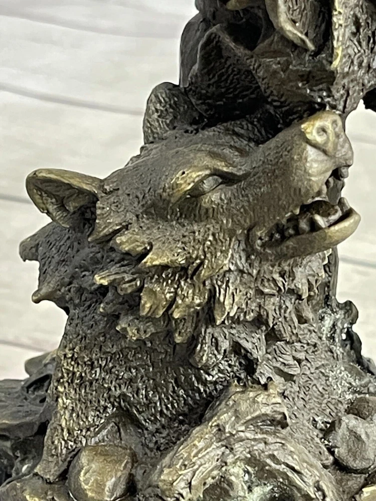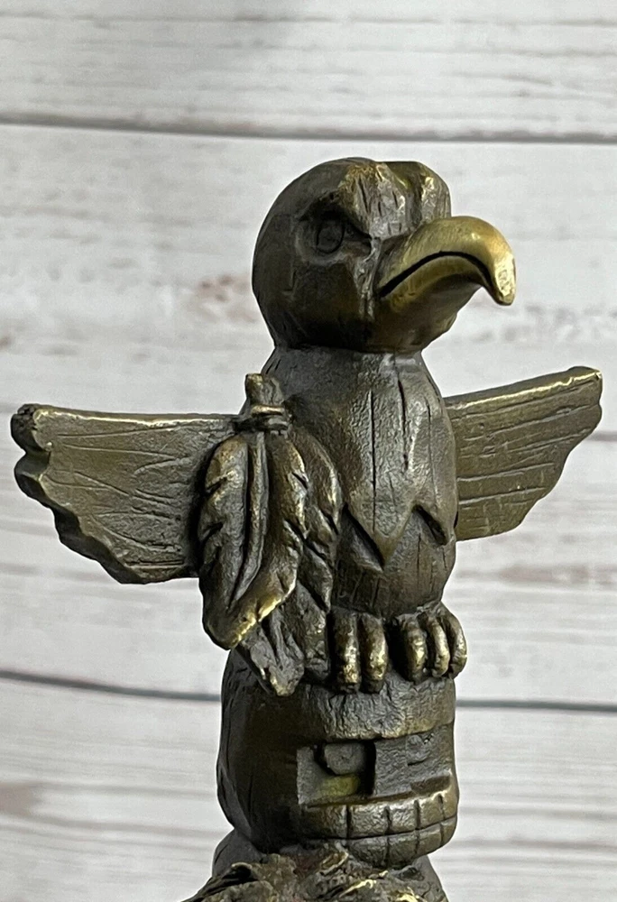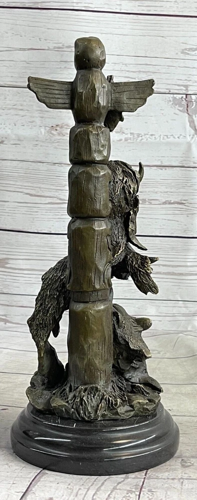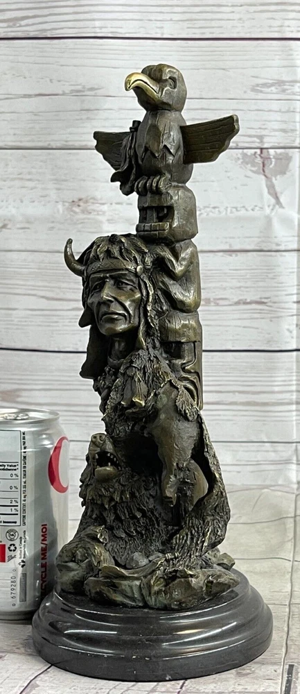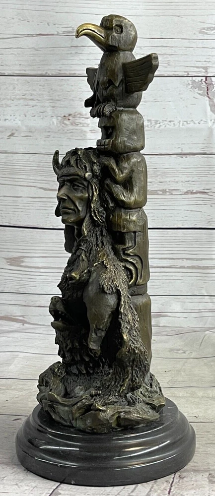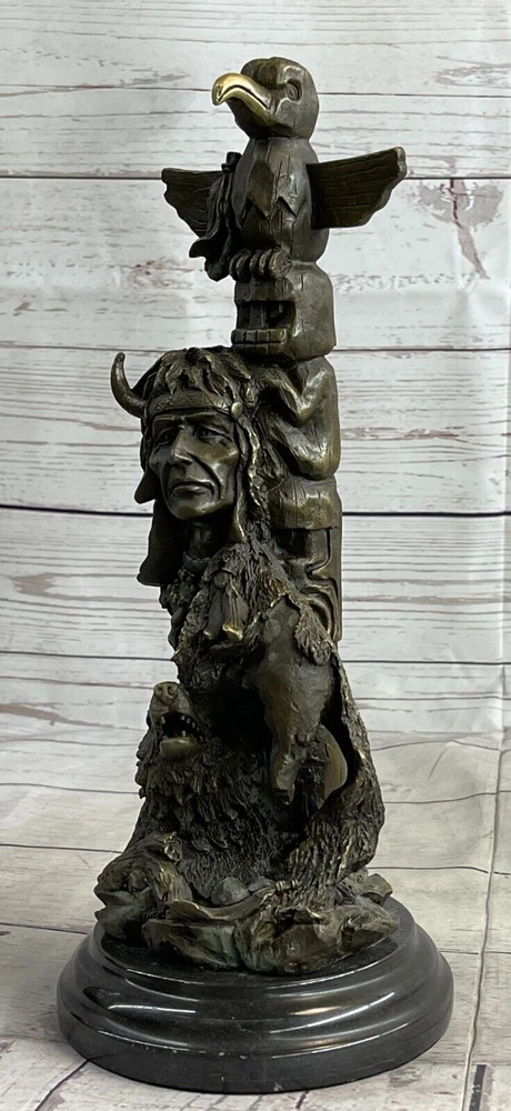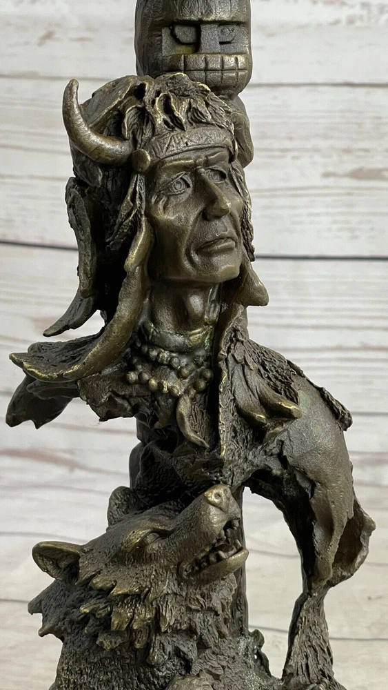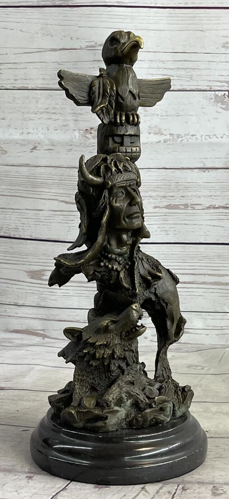 Abstract Modern Art Indian Chief with Wolf Bird Bronze Sculpture Hot Cast Statue Abstract Modern Art Indian Chief with Wolf Bird Bronze Sculpture Hot Cast Statue Condition : This sculpture is in perfect condition. Bronze Dimensions with Marble Base:Height 13" x Width 5.5" Marble Dimensions: Diameter 5.5" Height without base: 12" Weight: 10 LBS Inventory: 16Y11484261 Legend tells us that Indian and wolf once lived in such harmony that their spirits aligned in life and even in the hunt. The artist recaptures the moment when chief, scout, and wolf scan and eagle symbol the landscape with single aim. Cast in quality designer Real bronze to capture details from feathered headdress to magnificent fur, this gallery-quality work of art is a modern collectible. This 100% bronze sculpture rests on black marble base. It was crafted using the popular lost wax method and is signed by artist Milo. Shipping Terms : Most of our items are shipped via USPS (United States Postal Service) mail or UPS. Most orders are shipped within 24-48 hours of purchase. Please be aware that not all items are available for USPS shipping due to size and weight. We do ship to Hawaii, Alaska, Canada, Puerto Rico, APO/AE, and U.S. Virgin Islands, however, an additional charge may be required. Please contact us before making any purchases in these areas. For Non-USA customers, you may be responsible for all duty, tax, brokerage fees that may be due upon delivery (shipping costs cover freight charges only). We also ship internationally. Please refer to the "Shipping and Handling" chart for the rates for each area. Payment : We accept just about any form of payment. PayPal, Master Card, Visa or American Express credit cards. Money orders, cashiers checks, and even personal or business checks. For governmental institutions, we will also accept a purchase order. Please understand that for personal or business checks we have to wait for the check to clear (usually 7 days) before shipping. Condition : New Detailed Hand Crafted Hot Cast Bronze ~Not Resin~ Satisfaction Guaranteed. This is Stock Photo, Slight Color Variation!! Listing and template services provided by inkFrog