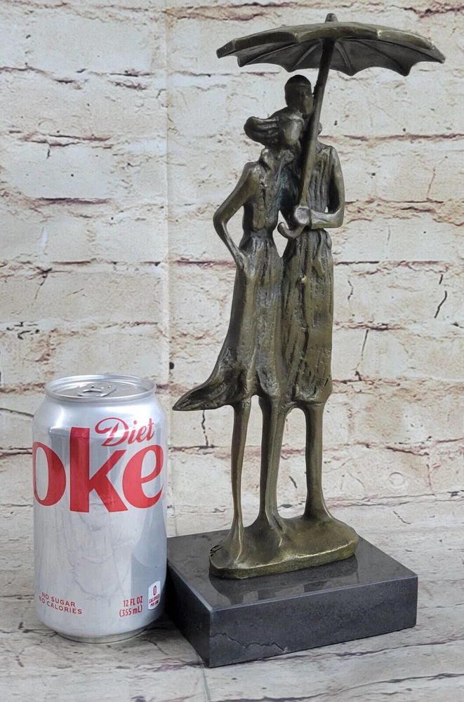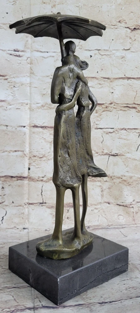 . Condition :nbsp; This sculpture is in perfect condition. Bronze Dimensions with Marble Base: Height 12" X Width 6" Marble Dimensions: Diameter 6" Height without base: 11" Weight: 5 LBS Inventory: 42Y9743224 Capture the essence of romance with this captivating bronze sculpture portraying two lovers seeking shelter under a shared umbrella. The intimacy and closeness between the figures are beautifully depicted, emphasizing their connection and devotion. Meticulously crafted with intricate details, this sculpture showcases the skill and ar tistry involved in its creation. The age-old lost-wax casting method was employed to cast this enchanting piece, a technique renowned for its ability to produce intricate and high-quality bronze sculptures. The finished sculpture boasts a lustrous brown patina, adding depth and warmth to its appearance. Resting on a round black marble base, it exudes an air of sophistication and elegance. This remarkable sculpture is signed by the esteemed artist Aldo Vitaleh, confirming its authenticity and ensuring its value as a collectible artwork. Perfect as a centerpiece in any living space or as a thoughtful gift for a loved one, this bronze sculpture captures the timeless beauty and emotional connection of two souls intertwined in love. Signed Original Aldo Vitaleh two Lovers in Rain Bronze Sculpture Statue Figurine www.bronzhaus.com Video will open in a new window Using the eBay App? Paste link into a browser window: [isdntekvideo]