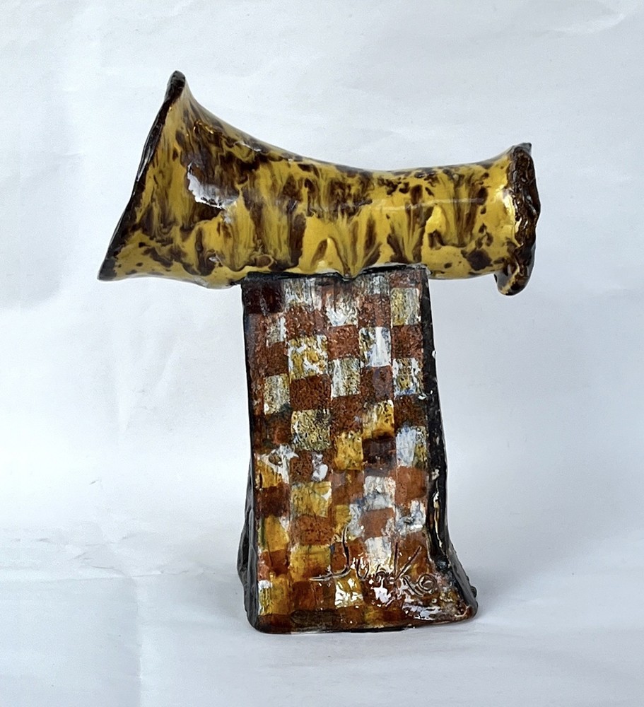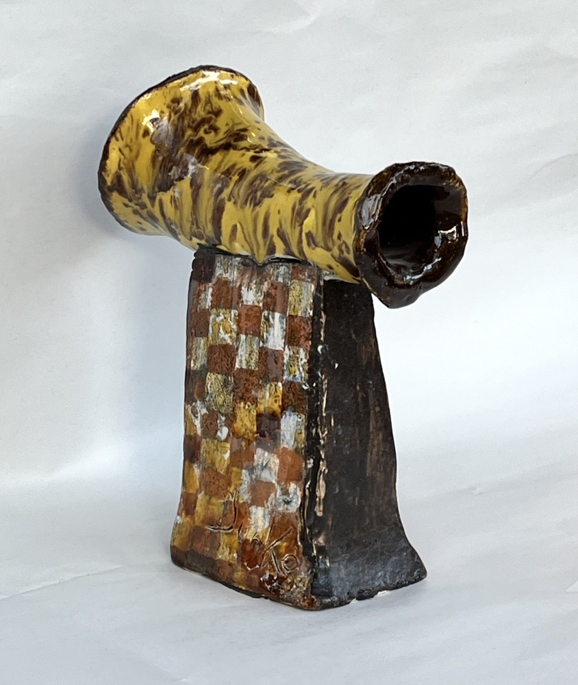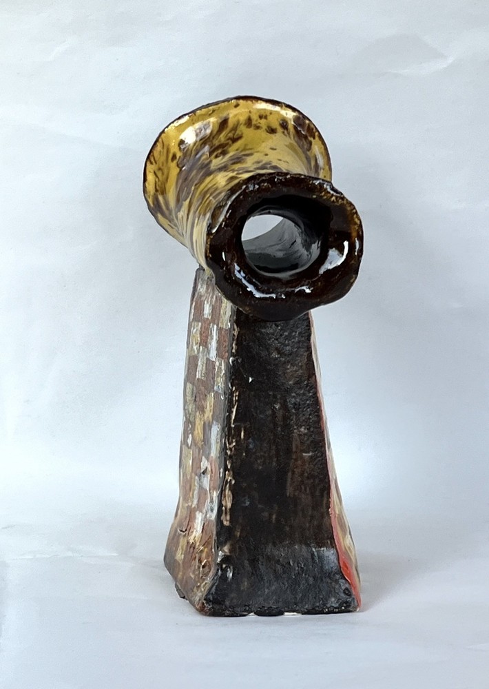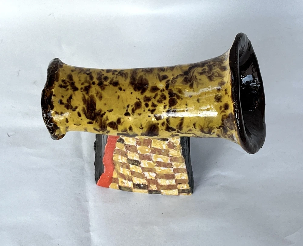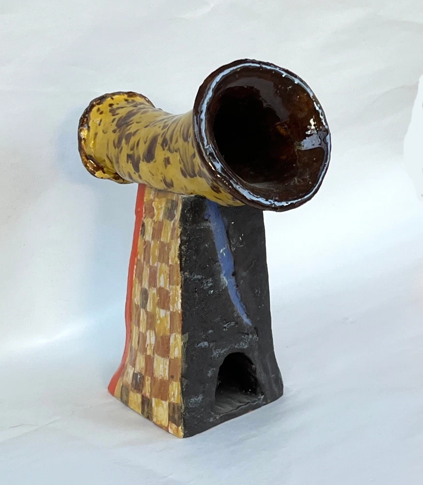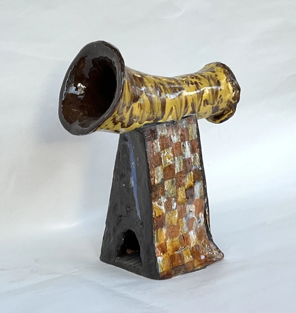 Abstract Modernist Horn Column Art Pottery MCM Brutalist Statue 8.5 Signed Junko DESCRIPTION: Beautiful Vintage Abstract Modernist Horn on Column Art Pottery MCM Brutalist Statue 8.5” Signed Junko. One of a Kind OOAK Statue from Glazed Heavy Clay with a Horn or Tube on a Square Column with an opening on side of the base. Signed Junko. Great character with lots of textural interest. See the photos. MARKINGS: Signed Junko. See the photos. AGE: Circa Mid to late 1900s. ORIGIN: Unknown. DIMENSIONS: Approx. 8.5” Tall. COMBINED SHIPPING: We will be happy to combine shipping. However, we sell items that vary too much in size, weight and fragility to automate it. Please contact us and we will work out a good deal on shipping. SEE OUR EBAY STORE "Land of Chiles" FOR MORE GREAT ITEMS! _gsrx_vers_1715 (GS 9.9.2 (1715))