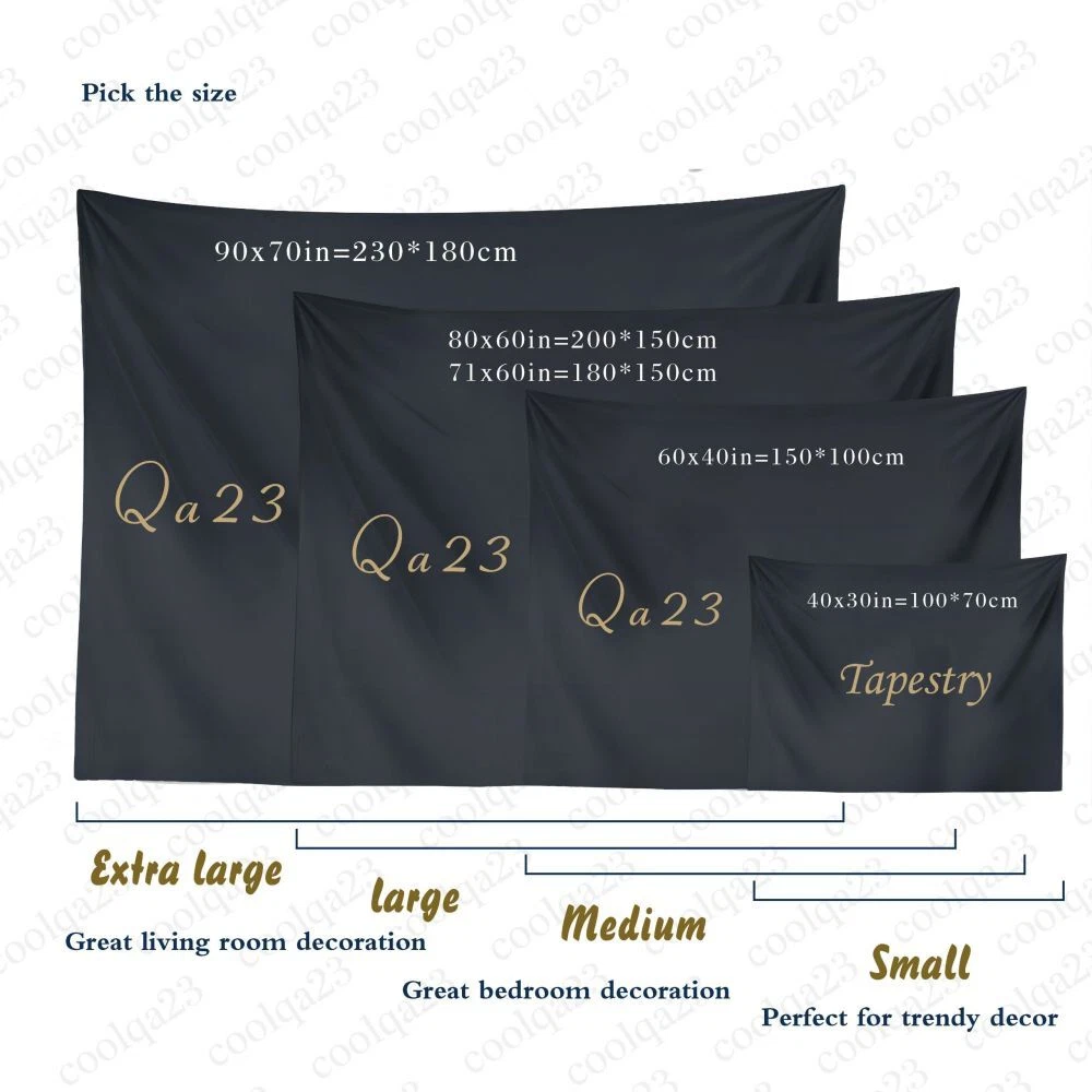 Store Categories Store Categories Shower Curtain Garden Flag Tapestry Anime Girl Background Blacklight UV Reactiv Kitchen Curtain Mat Blanket Other Tapestry Wall Hanging Fabric Decorations Product Description Logistics and transport ( Shipping ) : with tracking number Features : Material: Soft polyester fiber, sagging good, durability. Color: HD pattern printing, colorful and beautiful, do not fade.It is a nice decoration for your room. Widely used: Durable enough for both indoor and outdoor use, tapestry, wall hanging decor, curtains, tablecloths, picnic mats, beach towels and other functions. Care guide: The new tapestry has folds, you can iron it, so it will be more beautiful. Hand or machine wash under gentle cycle or dry clean, and do not bleach. Please use mild detergent with cold water. Size: About 90inx70inches (=230cmx180cm) 80x60inches ( =200x150cm ) 71x60inches ( =180x150cm ) 60x40inches ( =150x100cm ) 40x30inches ( =100x70cm ) conversion :1 inch=2.54cm Package : Tapestry with Nails Payment Policy Shipping Policy Returns Policy Payment Policy Available for purchase. Shipping Policy We will dispatch the goods within 3 working days. Logistics and transport(Shipping):w ith tracking num ber Returns Policy If you have anything about item, please contact me, I will reply you within 24 hours due to the time difference. Thanks and regards. Copyright © 2023 Dianxiaomi