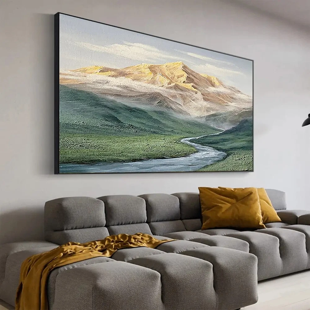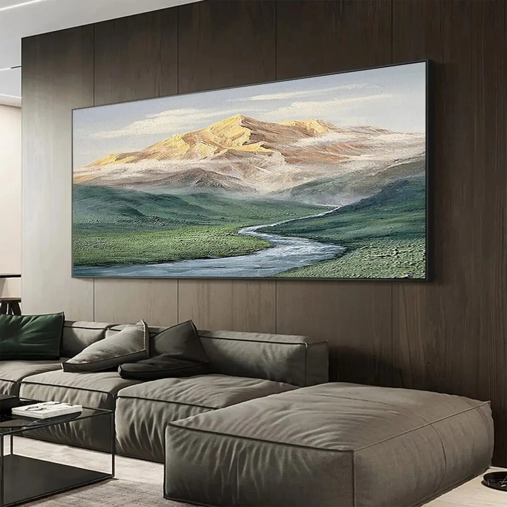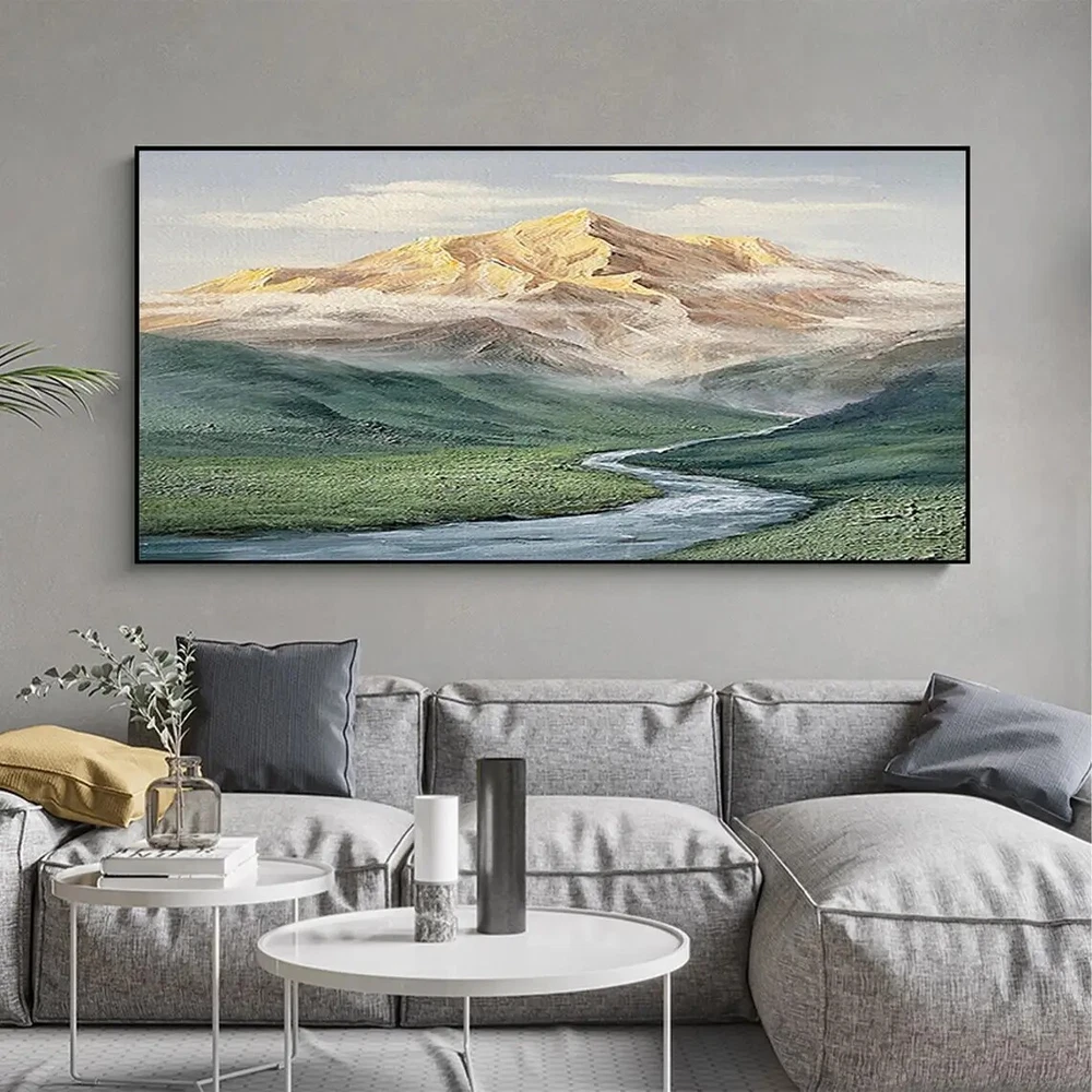 Abstract Mountain Oil Painting on Canvas Green Landscape Acrylic Painting Custom