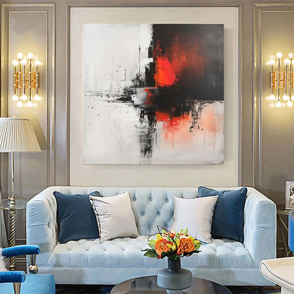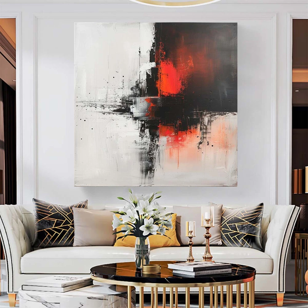 Abstract Oil Painting Thick Textured Hand Painted On Canvas Wall Art Black Red