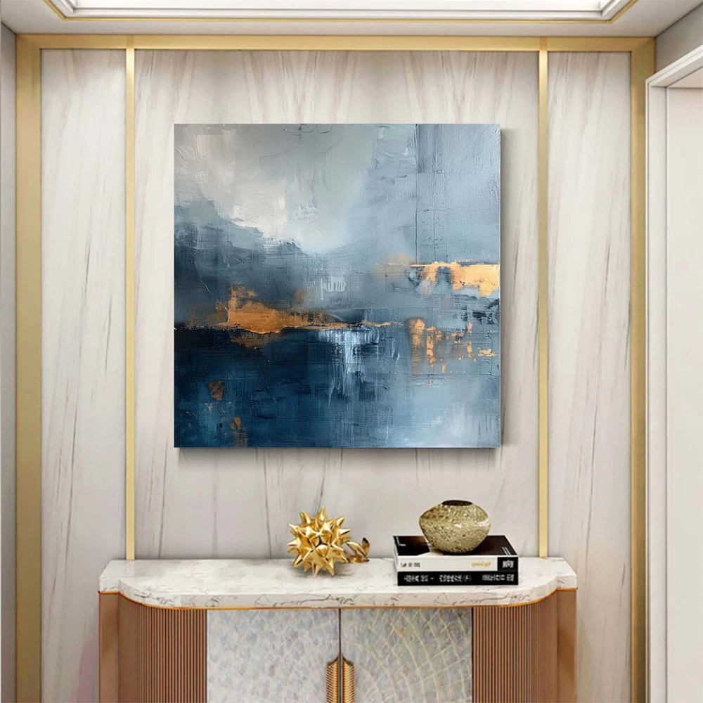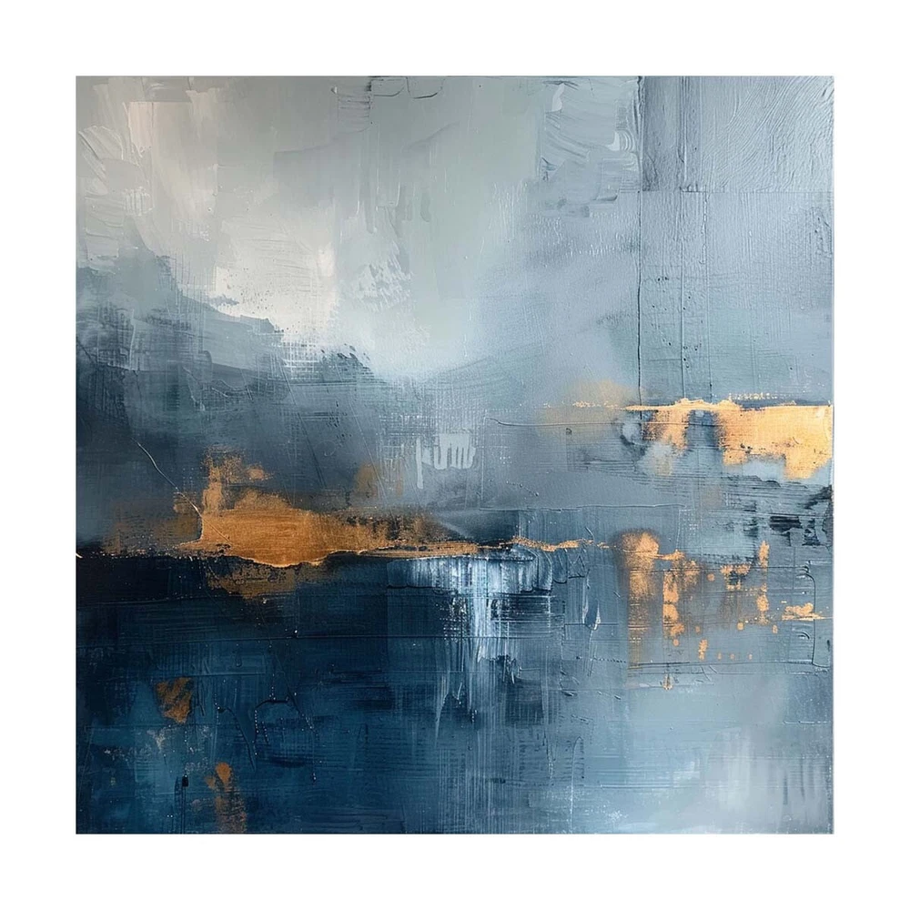 Abstract Oil Painting Thick Textured Hand Painted On Canvas Wall Art Blue Gray