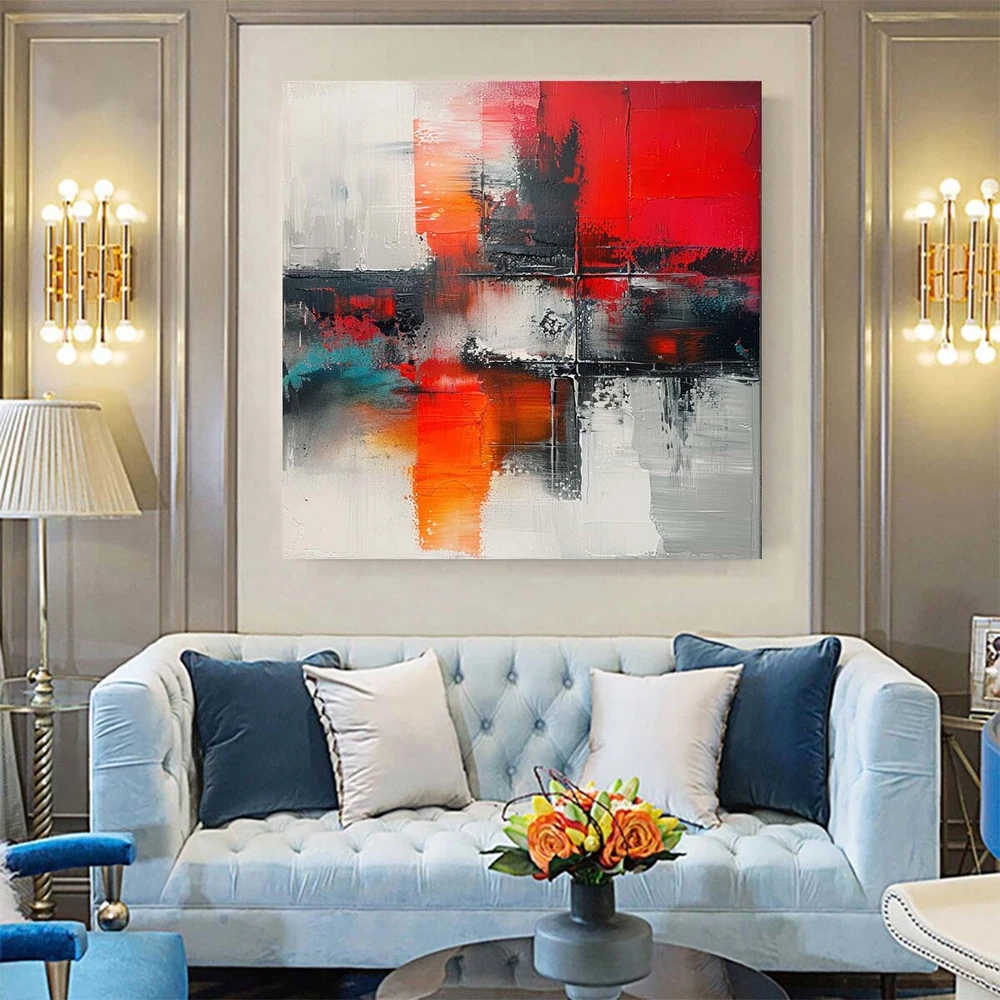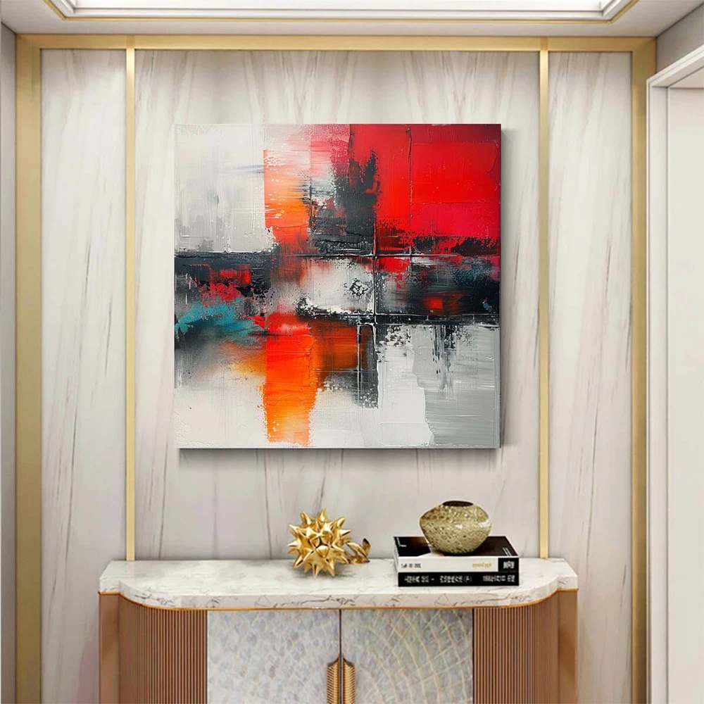 Abstract Oil Painting Thick Textured Hand Painted On Canvas Wall Art Red Gray