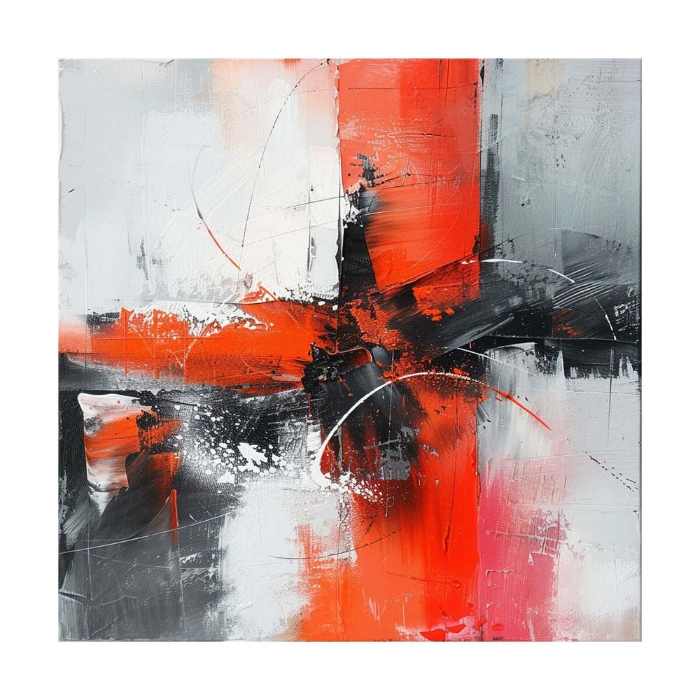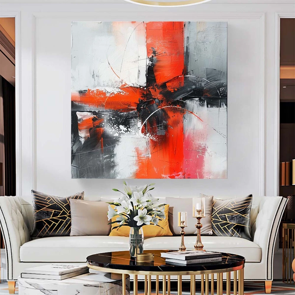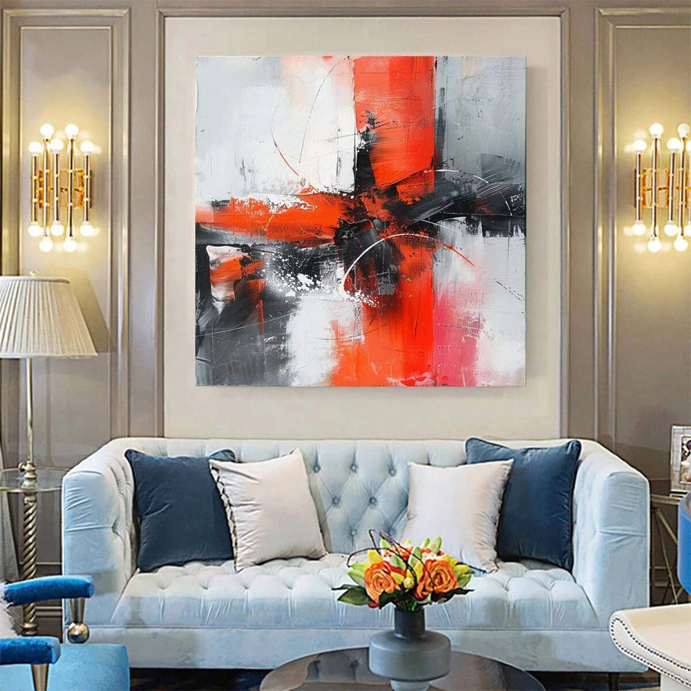Abstract Oil Painting Thick Textured Hand Painted On Canvas Wall Art Red Gray