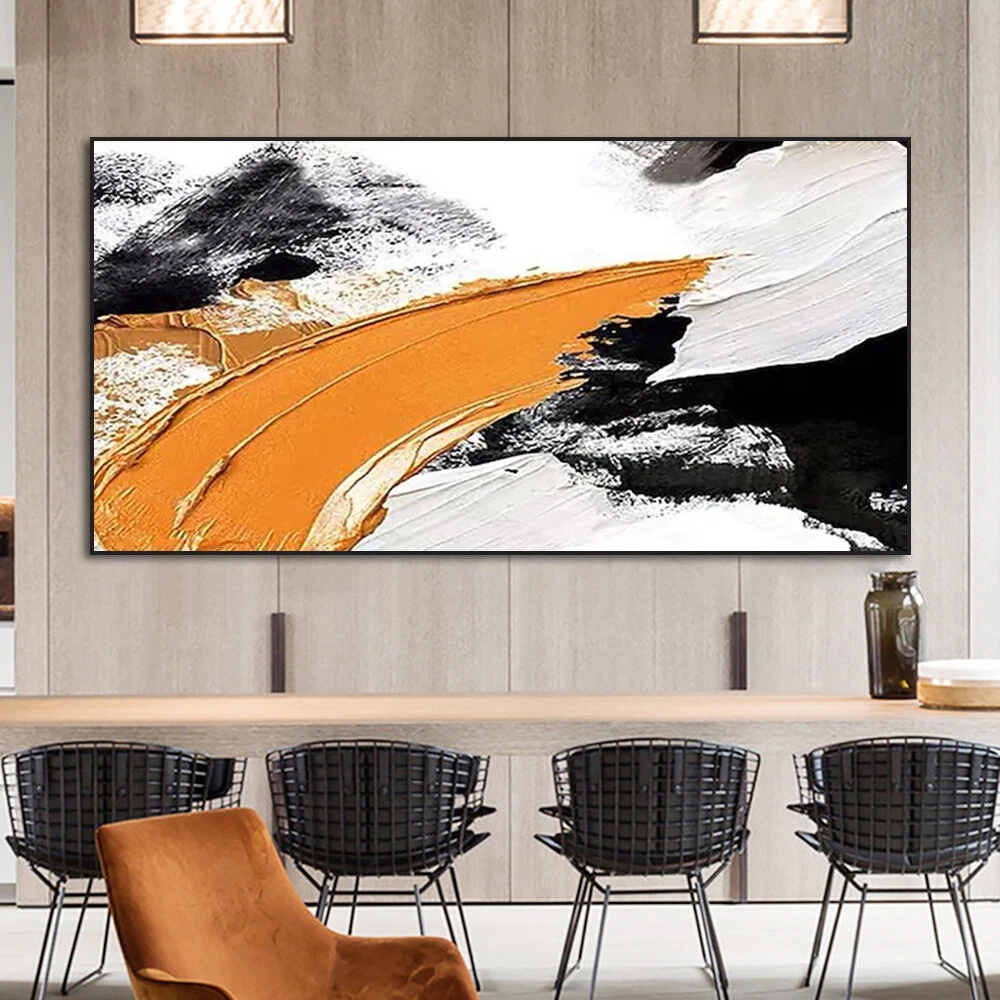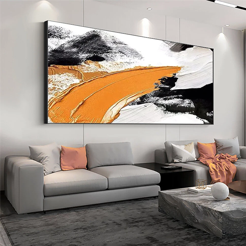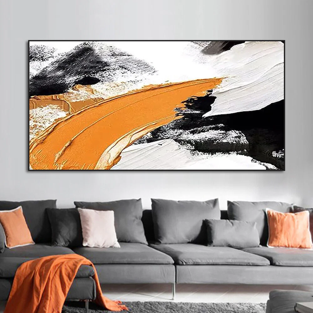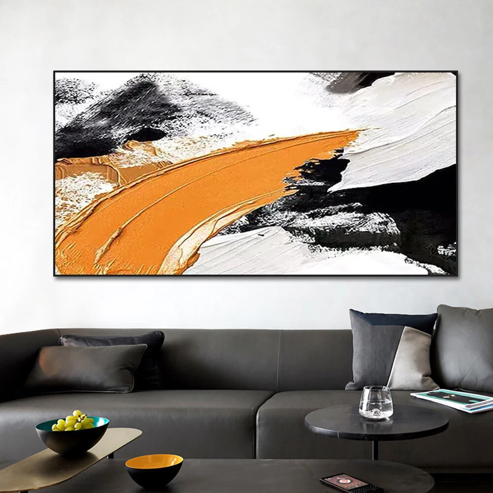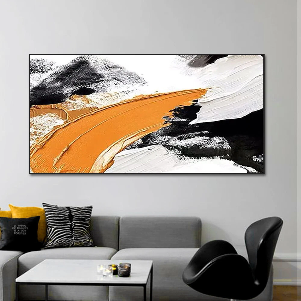 Abstract Orange Black White Oil Painting Hand Painted On Canvas Modern