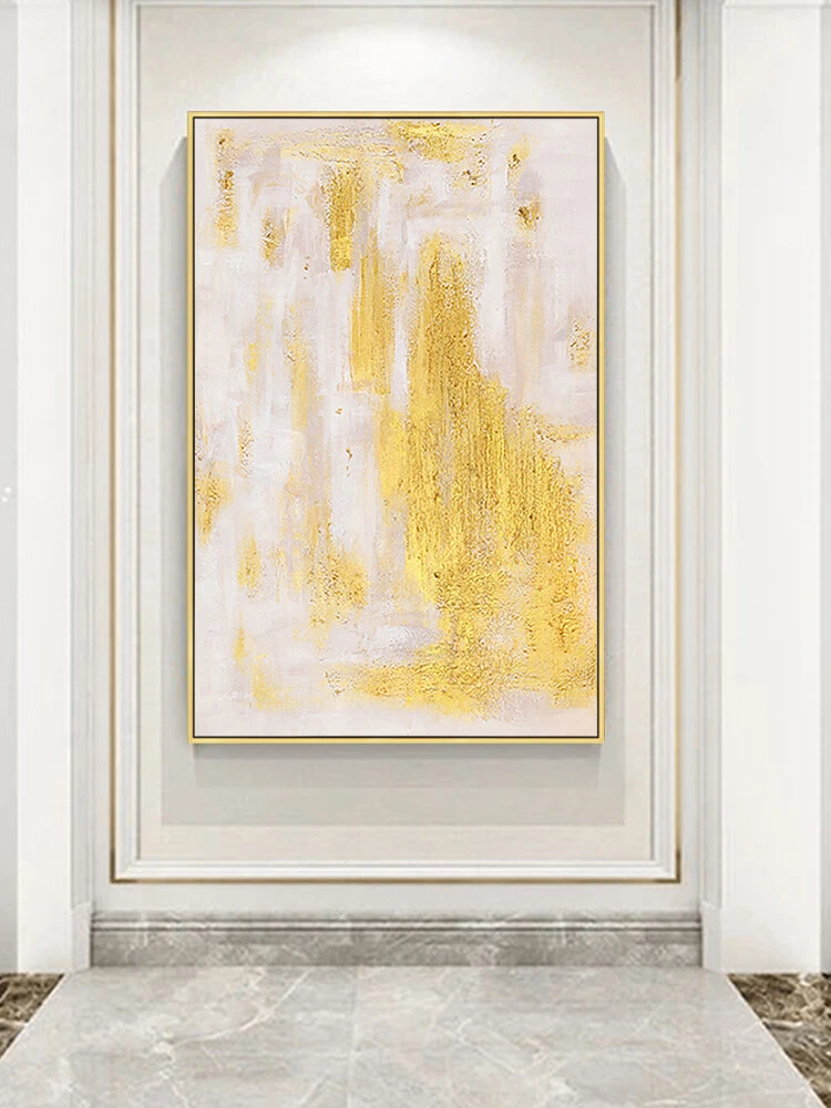 Abstract Painting Canvas Art With Golden Color Hand Painted Thick Texture Oil