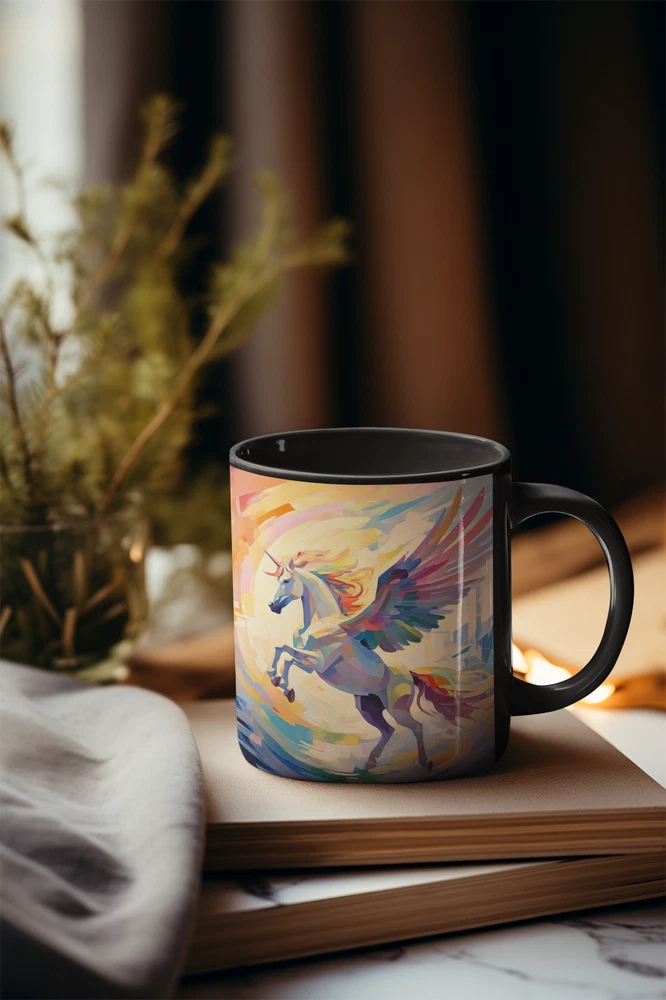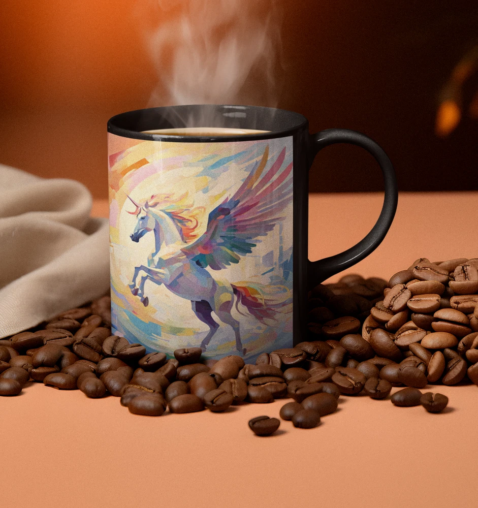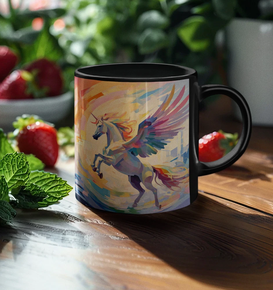 Abstract Pegasus Design Black Ceramic Mug 11oz
