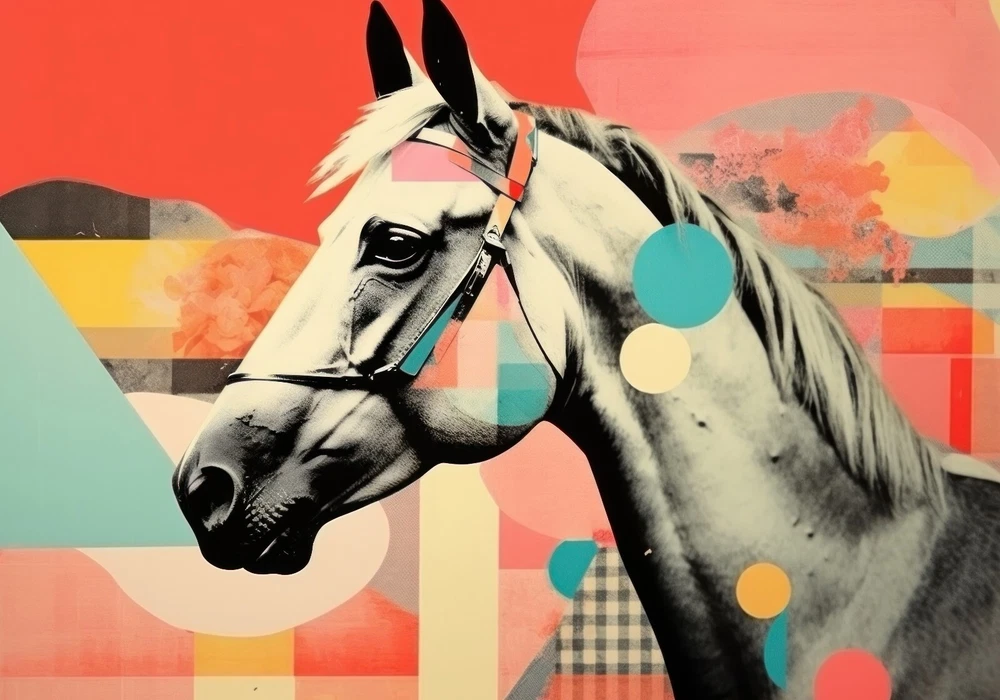 Abstract Pop Art Retro Horse Portrait Collage Illustration 7x5 Wall Decor Print