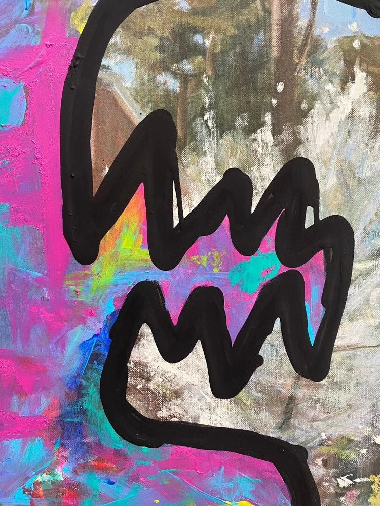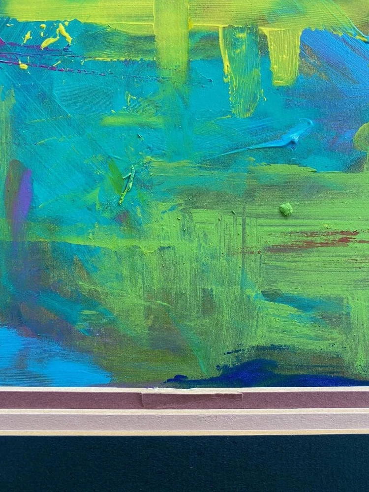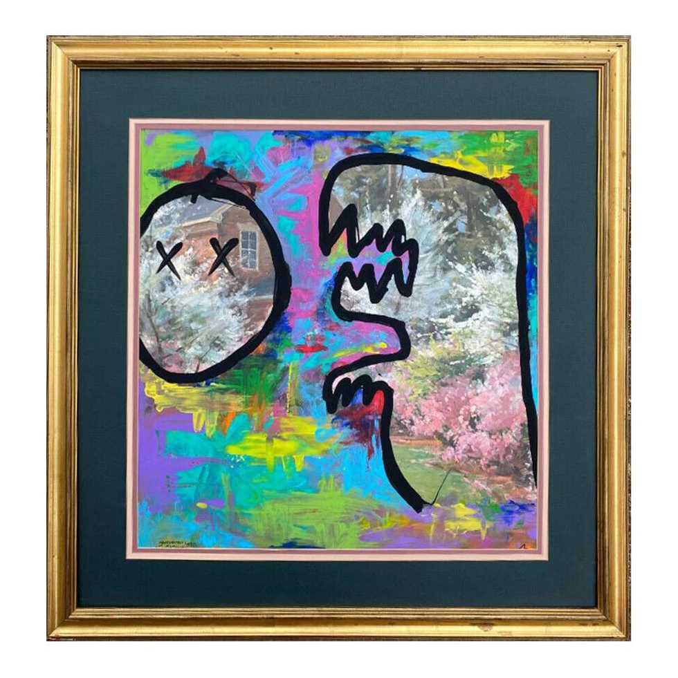 Acrylic and ink on Canvas in a vintage worn frame. Comes with easy to install hanging hardware. I took a thrift shop painting and painted over it leaving some parts of the original painting, it is a surreal abstract piece. The frame is purposely kept worn which adds to the piece. Description: This is a new original abstract artwork which used acrylic paint, I took a thrift shop painting and painted over it leaving some parts of the original painting . Each canvas & print will be signed on the front and back. Size: 31" x 30" x 1.25" Options: Have a special request, question, interested in a painting not shown or interested in commissioning me to create or recreate a specific painting? Contact me. Additional Painting Details: Color may differ slightly than depicted due to variances in computer screens. Painting looks different in different lighting. International Order buyers are responsible for any customs duties or fees. Seller not responsible for anything once it is shipped and leaves the US. Artist Background: Originally from Jersey City & New York City, now residing in San Diego, I have an extensive background in Art. I studied art going back to artistically talented classes in the days of high school and earlier, and then on to New Jersey City University and Monmouth University. I have had my Art featured in exhibitions & galleries, on websites, and at businesses. My art is comprised of Acrylic & Mixed Media paintings on wood, pallets/skids, canvas and anything else that I can find to make a good pallet, sketching, drawings, graphic design, original characters, and photography. For my paintings I use Acrylic & Spray Paint and experiment with a mix of some other mediums and methods. I try to create fresh and unique abstract, contemporary and modern paintings that are open to interpretation yet have certain inspiration behind them. I have been inspired by, enjoyed & admired the likes of artists ranging from Jackson Pollock to Andy Warhol, Van Gogh to Monet, Walt Disney to Chuck Jones, Matt Groening to Stan Lee, and Tim Burton to Wes Anderson. Some notable work includes art for companies ranging from Disney to Coca Cola, M&M’s, Starz Network, Google, as well as experience as a Creative Director and Art Director.