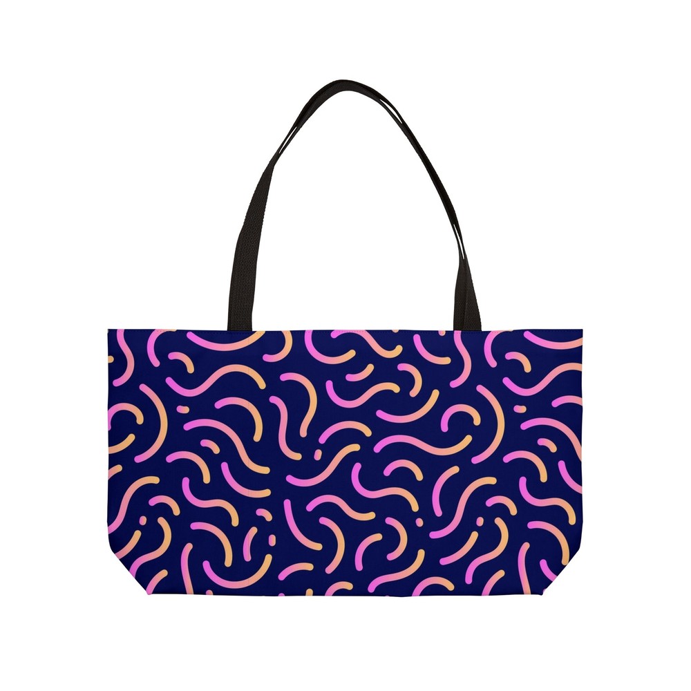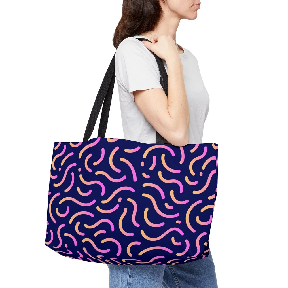 This versatile Weekender Tote Bag is perfect for weekend getaways, gym trips, or daily use. Made from durable 100% spun polyester, it provides ample space for all your essentials with its spacious 24” x 13” design. The T-bottom construction adds stability, while the double-stitched handles ensure comfort and reliability. The stylish all-over print and black interior lining make this bag both functional and fashionable for any occasion. Material: 100% spun polyester for durability and long-lasting use. Size: 24” x 13” (60.9 cm x 33 cm), spacious enough for weekend trips or daily use. Design: Modern all-over print for a stylish touch. Interior: Black lining, easy to maintain and complements the design. Construction: T-bottom provides extra stability and support. Handles: Double-stitched for comfort and reliability. Care: Spot clean or hand wash for easy maintenance. 24" × 13" Width, in 24.00 Height, in 13.00 Depth, in 2.01