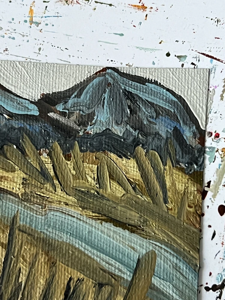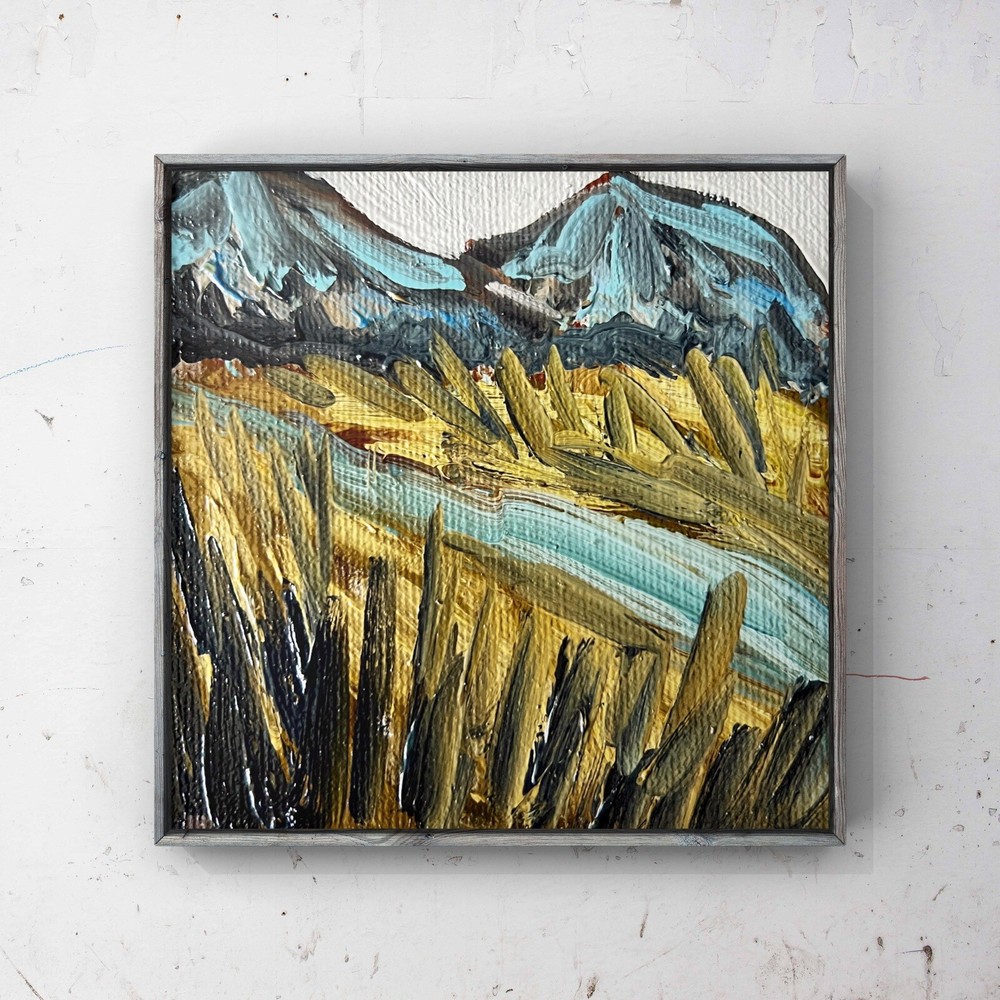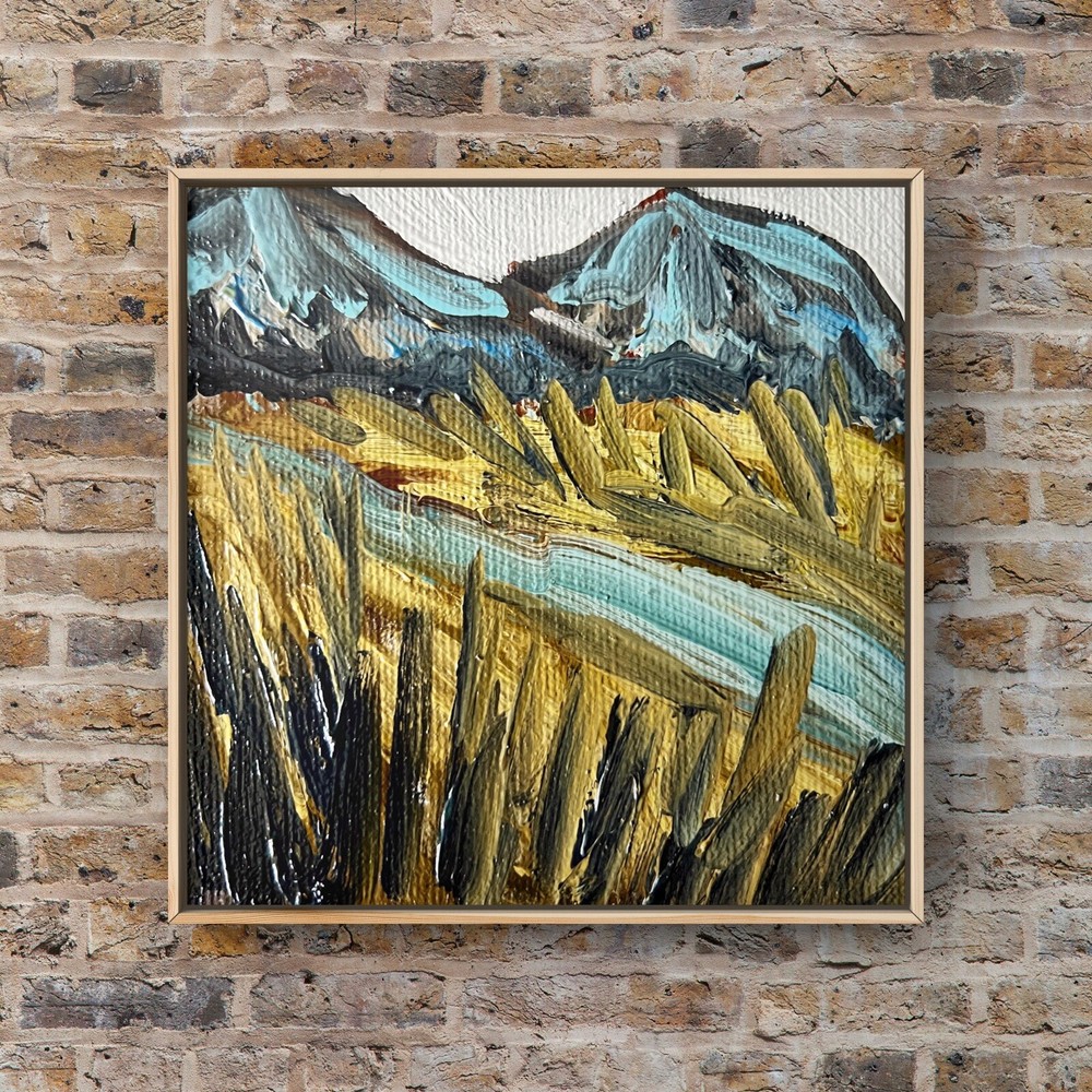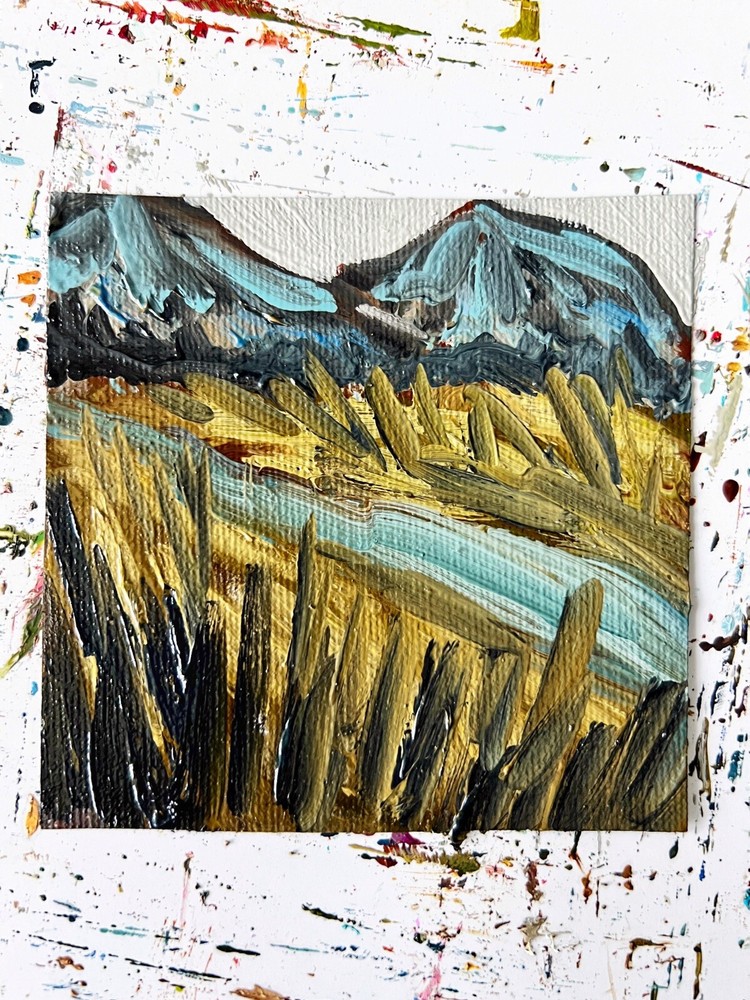 Abstract River Mountain Landscape Miniature Oil Painting 4" Canvas