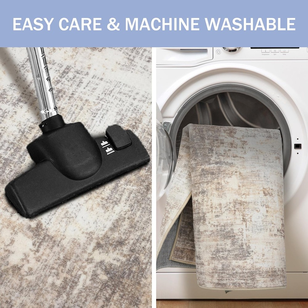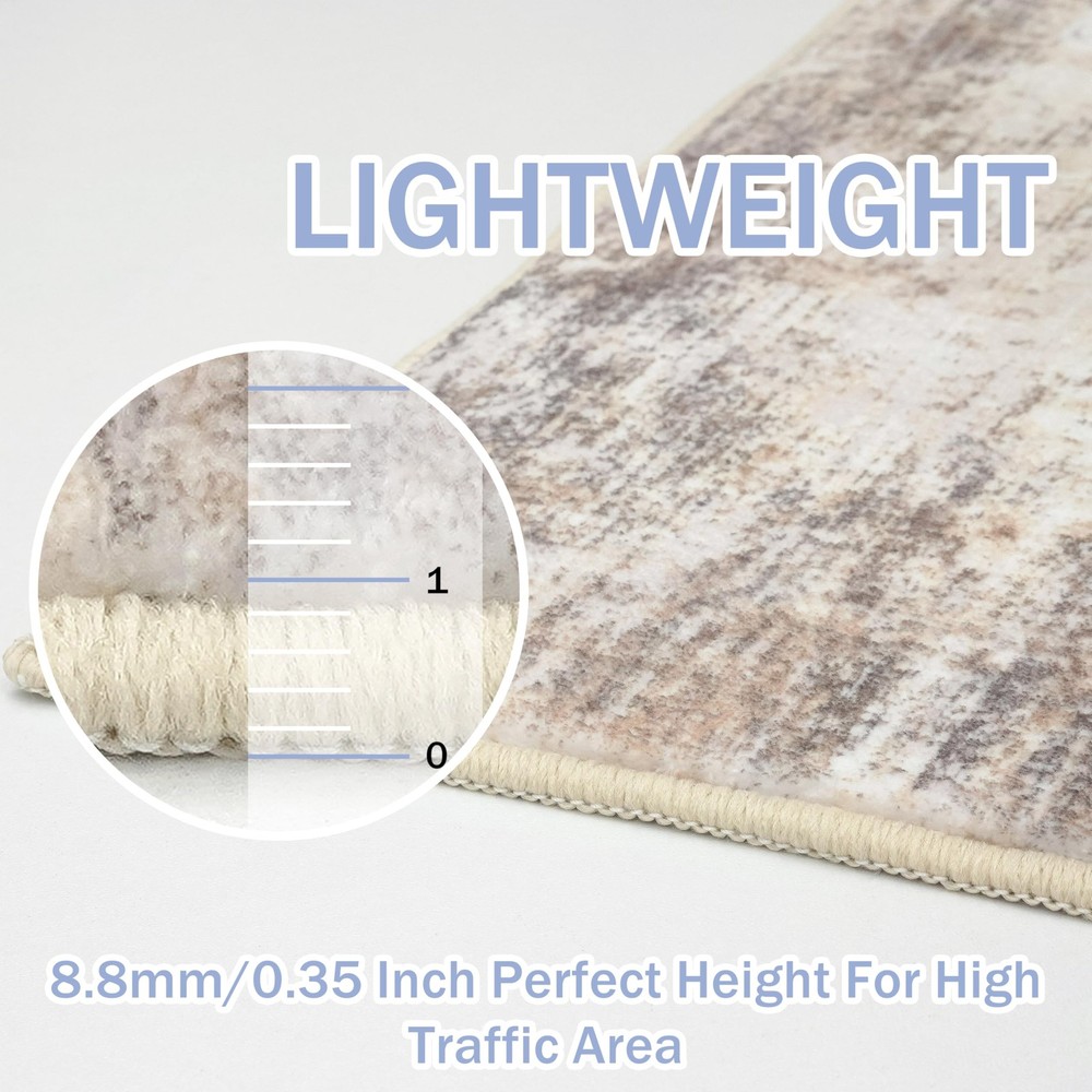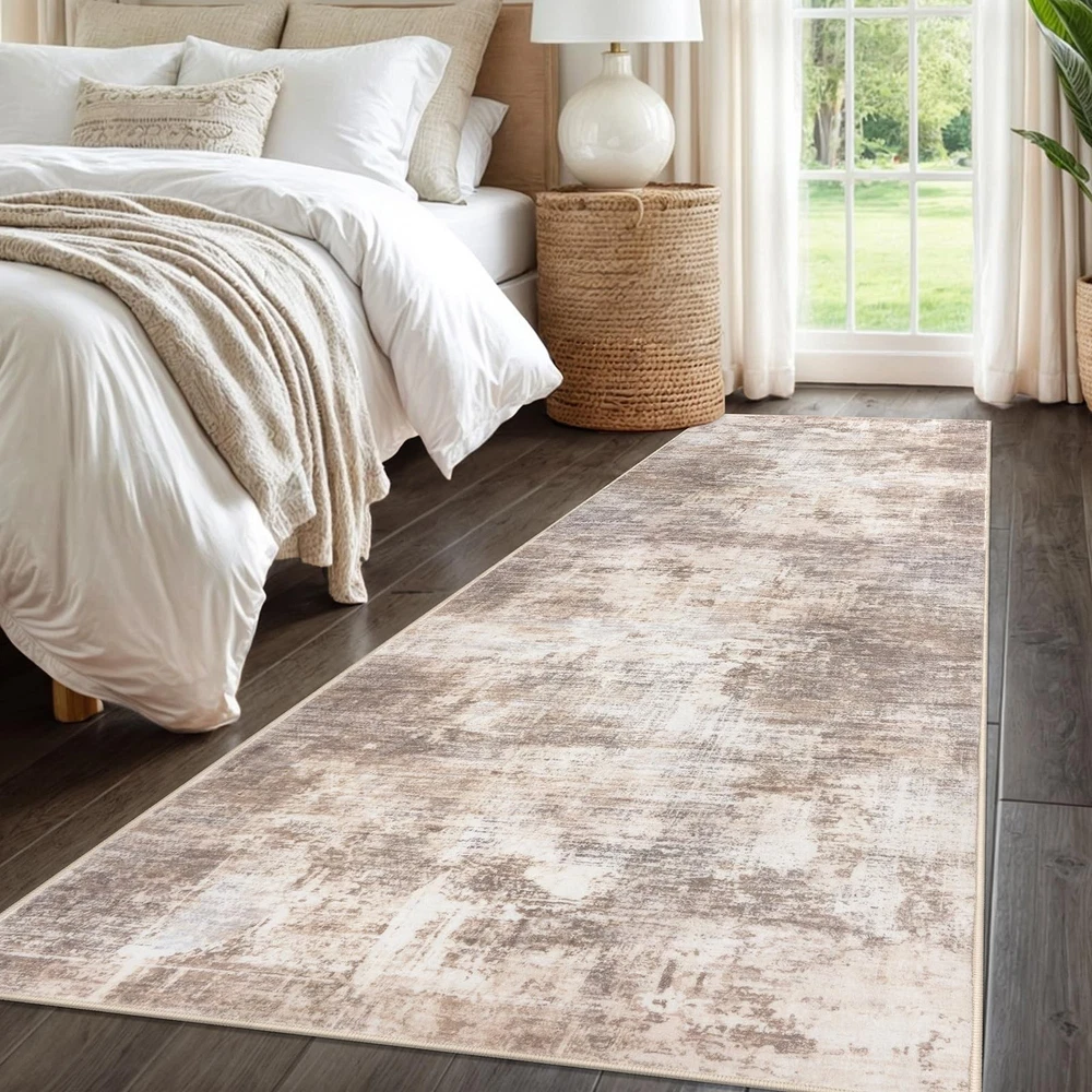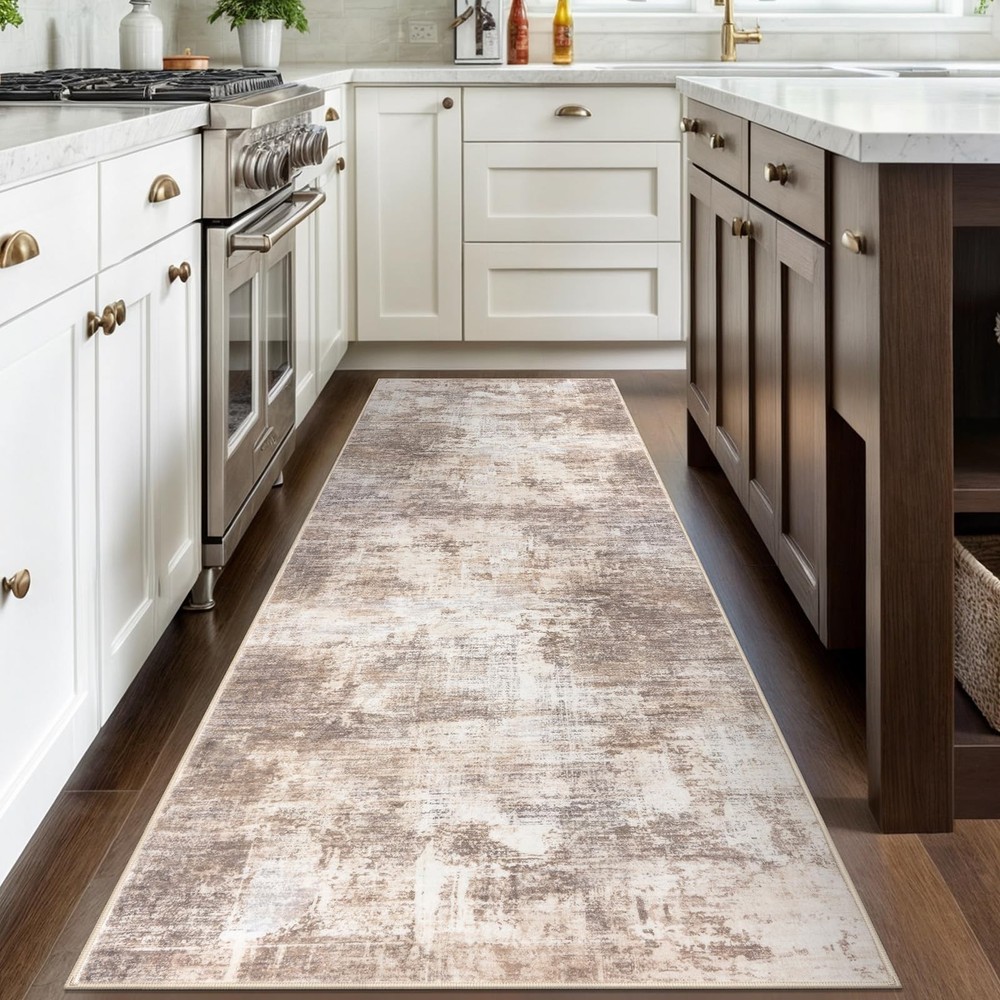 Elevate your living space with the stunning allure of Abstract Rugs. Designed for the modern home, this 3x8 runner rug masterpiece seamlessly blends functionality with a jaw-dropping abstract pattern, making every corner of your room a visualretreat. Let's dive into the world where fashion meets comfort, and design meets durability—all wrapped up in one exquisite floor runner! Starting with its eye-catching design, this kitchen rug runner features an enigmatic blend of navy hues, capturing the essence of modern abstract art. It’s not just a runner rug for entryway indoor; it’s a statement piece that speaks to the soul, enhancing the ambiance of your room and sparking conversations. Perfect for any setting, from your chic entryway to the cozy nook by your kitchen, hall, bedroom, this hall runner rug promises to infuse a burst of creativity wherever placed. Safety is paramount, and with this rubber backed runner rugs, rest assured that elegance comes with high-end functionality. Equipped with a non slip backing, this non slip runner rug stays securely in place, providing a safe, slip-free area even in high traffic zones of your home. Whether it’s playful pets or running kids, our rug handles it all with grace. Experience luxury under your feet! Made from premium synthetic fibers, our entryway runner rug offers a soft, plush sensation that makes stepping on it a pure joy. With a practical pile height of 0.3 inches, it’s designed to fit seamlessly under doors and furniture, enhancing your space without inconvenience. Caring for your indoor outdoor runner is as easy as it gets. Machine washable and built to last, this rug not only resists fading but also holds its captivating charm wash after wash. It's the perfect blend of durability and effortless style—just toss it in the wash and it’s good as new, ready to stun all over again. Key Attribute: Size: 3' x 8'(36"x96"); Style: Printed Abstract Modern; Thickness: 0.35 in.; Color: Gold/Yellow/Brown/Beige/White. Note: Due to differences in computer monitors, the rug colors may vary slightly Notice the Fold: The rug is folded for cost-effective shipping, which may cause creases. To remove them, lay the rug flat, weigh down creased areas, use a steam iron on low with a damp cloth, or roll the rug in the opposite direction Machine Washable: This hallway runner is machine washable for easy maintenance, keeping it fresh and vibrant without the need for manual cleaning. Noted: When vacuuming, use a low setting or a robotic vacuum to prevent shifting or bunching Non-Slip Rubber Backing: Designed with a non-skid TPR backing, this 3' x 8' entryway runner stays securely in place, eliminating the need for an extra rug pad. Ideal for families with children and pets, it remains steady even in high-traffic areas Ultra Soft Touch: This kitchen runner rug is made from plush synthetic fibers, offers a dense, cloud-like surface that cushions feet and shields toes from cold floors. Durable, non-shedding, fade-resistant, and odorless, it's ideal for high-traffic areas Modern Abstract Printed Design: Transform your home with the modern abstract rug, a perfect blend of art and functionality. Printed with a modern abstract pattern, Its dynamic splashes of brown, gray, and beige hues add a vibrant touch to any room