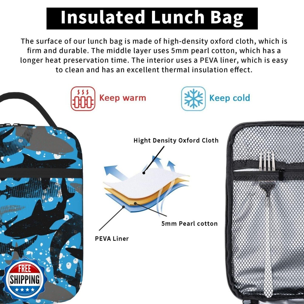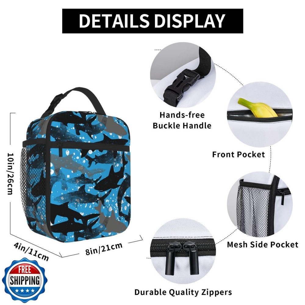 Abstract Sharks Insulated Lunch Bag Kids,Kids Lunch Box for Girls Boys,Bento Lunch Box Cooler Bag with Front Pocket for Women Men,Cute Lunch Tote Bag Lunchbox for Work/Office/School/Picnic Features 【Capacity】The Lunch Bag Can Easily Accommodate All Snacks, Drinks, Sandwiches, Fruits Or Vegetables. You Can Take It To The Office, Pack Healthy Snacks For Your Family Or Enjoy A Happy Sunday Picnic. 10 X 8 X 4 In, Suitable Size, Easy To Carry. 【Insulated Lunch Bag】: This Fashionable Lunch Bag Keeps Your Food Fresh For Longer Than Plastic Lunch Boxes Or Paper Lunch Bags. The reusable Lunch Bag is made of the highly durable 100% Polyester oxford fabric ,safe PEVA lining and sturdy zippers. 【Multi-Function】: The Insulated Lunch Bag Not Only Can Be Used For Work Lunch Tote, It Also Can Be Used As Picnic Tote Bags, Sundry Bag, Shopping Bag As It'S Capaciousness, It Has Heat/Cold/Fresh Preservation, Can Be Used To Pack Frozen Food, Hot Pot Dishes, Frozen Drinks, Ice Cream, Etc. 【Cute Designs】: Choose From A Variety Of Unique, Stylish Designs, And Support The Arts. The Special Style Make The Lunch Bags Distinctive, And It Matches Well With All Your Dress Style, And Popular Patterns Suitable For Anyone Of All Ages. 【Best Gift】:A great gift for family and friends on Birthdays, Halloween, Thanksgiving, Christmas 【Applicable Age】 :Above 3 Years Old Shipping Free & Fast Shipping: We offer free shipping to most of the USA with a normal delivery time of 3-7 days. However, due to the current situation, additional delivery time (up to 3 weeks) may be required for some items. Alternative Carriers: We may use alternative carriers (e.g., USPS, FedEx, UPS) to ensure your package arrives safely and on time. Due to the use of multiple carriers, we are unable to provide a tracking number automatically. Handling Time: Orders are processed and shipped within 1-2 business days of receiving cleared payment. Shipping Restrictions: Shipping to Alaska, Hawaii, Puerto Rico, Guam, and other US territories may incur shipping charges or delivery restrictions. Please contact us before ordering, or your order can be refunded/cancelled. State Restrictions: Certain items may not be shipped to California due to state regulations. Contact for Tracking Updates: If you require tracking updates or have any concerns about the delivery of your order, please feel free to contact us, and we will be happy to assist you. Return Policy 30-Day Hassle-Free Returns: If you are not completely satisfied with your purchase, you can return the item for free within 30 days of receiving it for a full refund or exchange. Easy Return Process: Contact us, and we will provide you with a prepaid return shipping label and detailed instructions. No Restocking Fee: There are no restocking fees for returns. However, the buyer is responsible for return shipping costs if the return is not due to a seller"s error. Refund Processing: Refunds will be processed within 1 business day of receiving the returned item in its original condition. Feedback Your feedback is extremely important to us. We strive to provide the best products and customer service possible. If you are satisfied with your purchase, please take a moment to leave us a positive review. If you have any concerns or issues with your order, please contact us before leaving negative feedback. We are committed to resolving any problems and ensuring your satisfaction. Contact Us If you have any questions or concerns, please feel free to reach out to our customer support team. You can contact us through the eBay messaging system. We are available Monday to Friday, 9:00 am to 5:00 pm EST, and we will do our best to respond to your inquiry within 24 hours. Thank you for supporting our small family business!