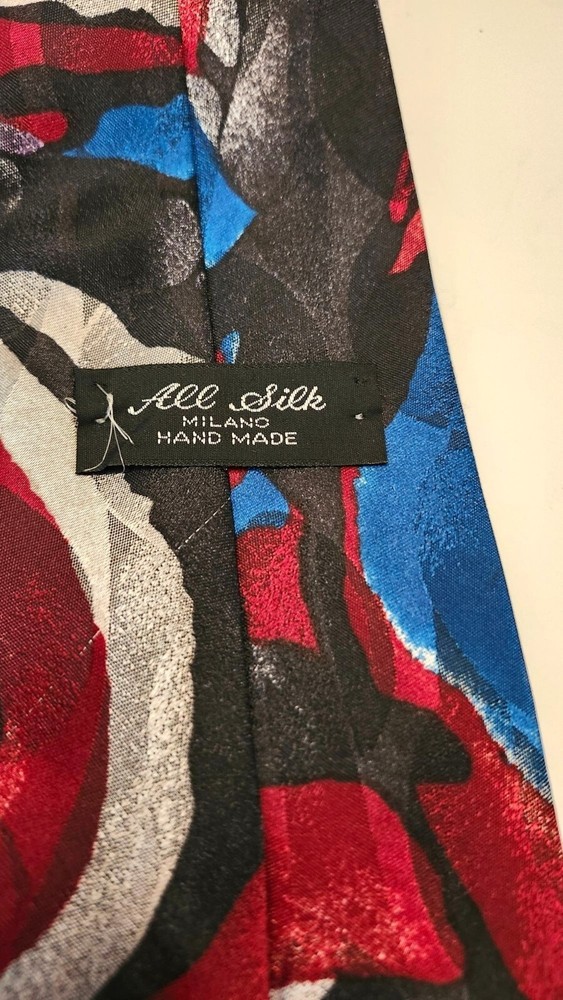 This tie is so fancy, even your coffee will be impressed. Handmade with all silk, it's like wearing a Monet painting around your neck. • Handmade design • All silk material • Abstract pattern • Length: Approximately 58 inches • Width: 3.25 inches • Vibrant colors Length = 58 inches Width = 3.25 inches Condition: Pre-Owned Good no rips, stains or tears