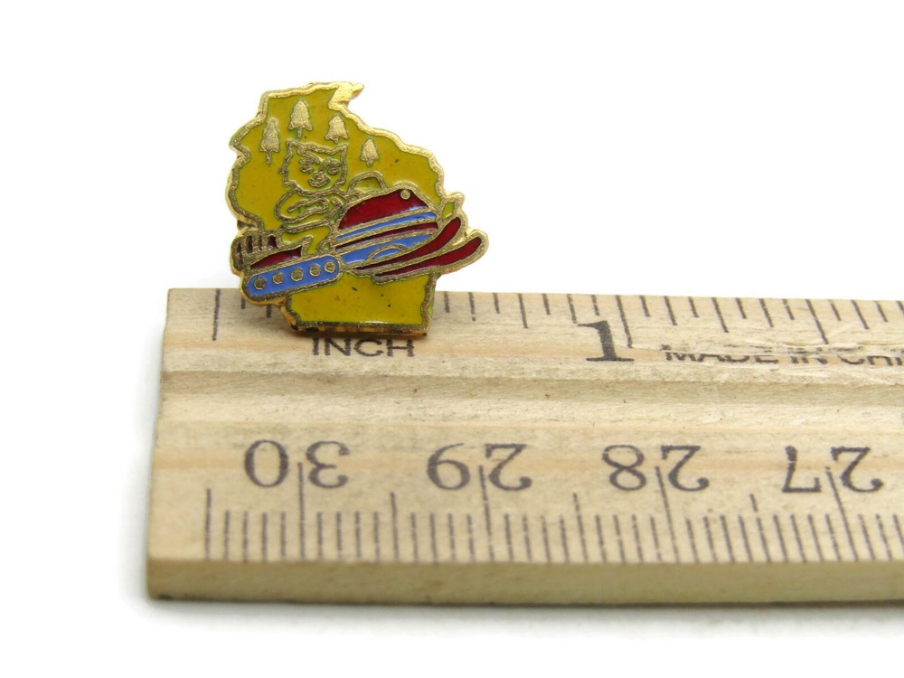 Abstract Snowmobiling Graphic Pin Yellow & Gold Tone ~ Almost all of our items are vintage and will have various degrees of wear, but we really don't carry anything that we wouldn't own ourselves. Please take a look at the pictures for the all vintage pins to get the best idea of wear. ~