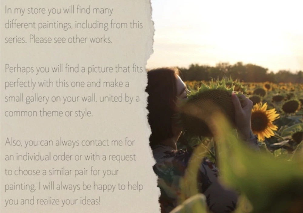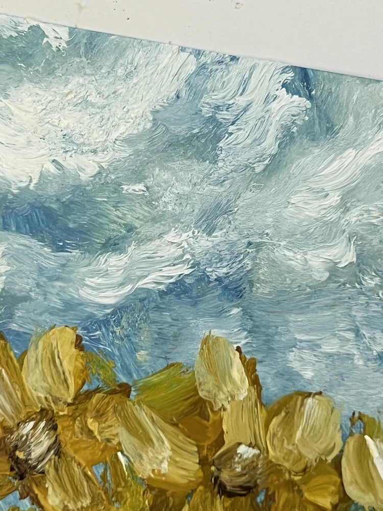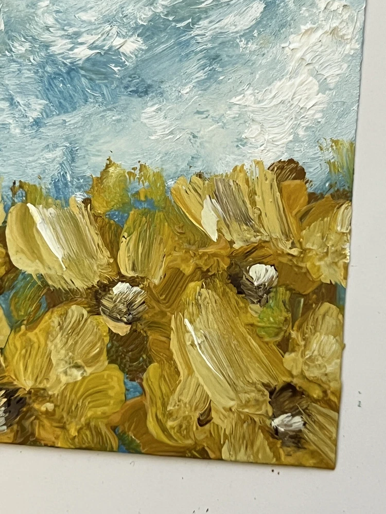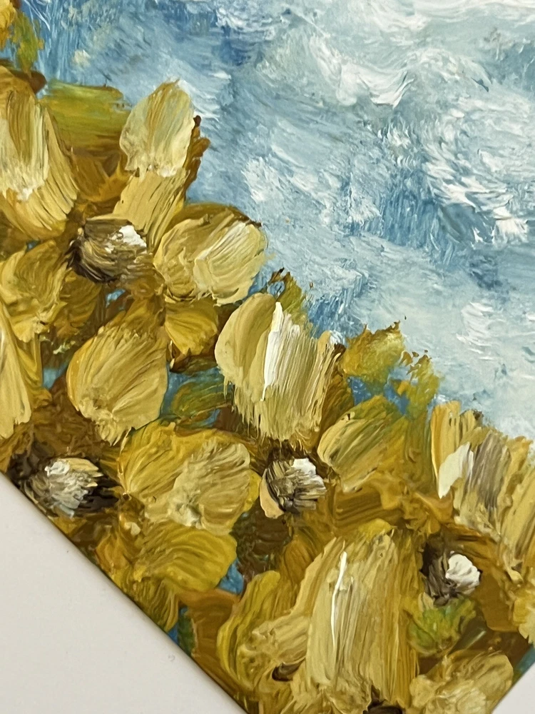 🌿 Ukrainian Sunflower original oil painting for bedroom wall decor. Sunflower original oil artwork for gift. Impressionism sunflower living room wall art for home decor. Small floral art for dinning room decor. 🌿 The best original and unique gift for friends and family. 🌿 This painting is a hand-painted original painting of fine art. It’s unique and one of a kind. The texture can be seen in close-up photos. 🌿 Original Impressionist oil painting from Ukrainian artist Kateryna Oliynyk. 🌿 10x15cm / 4x6” oil on cardboard. 🌿 Need a decorative frame. 🌿 This is not an illustration, not a poster, not a print. All my works in the store are original. 🌿 I use different painting techniques for my paintings: brush, palette knife, my own fingers. Each painting is unique and filled with love. I am inspired by nature and convey all my impressions and emotions through colors. Painting is an important part of my life, it fills me, charges me with energy and positive emotions. I’m sure you will definitely feel this pure and bright energy from my paintings. ❤️ IMPORTANT DETAILS: 🌿 The frame is not included. The picture is not framed! The photo shows an example of the design , but the frame is not included. 🌿 Please note that the colors shown may vary, but I guarantee that the colors will be bright. DELIVERY: 🌿 The painting will be carefully packed with gift wrap. I will do everything necessary to ensure that the painting is delivered in perfect condition. 🌿 As soon as your item is shipped, you will receive an email from me via EBay with the tracking number. 🌿 I am always in touch with you and are responsible for the delivery of your works. You can always contact me in private messages to resolve any questions. 🌿 I always try to send orders as quickly as possible, but sometimes it takes time to dry the oil paint. Please specify the details and delivery time if you need a picture by a certain date. We can also arrange an express shipment for your paintings. ❤️ Thank you for supporting my art! ❤️ ❤️ Dear friends ❤️ I wanted to take a moment to express my deep gratitude for your unwavering support of my art and the importance of supporting Ukrainian artists during these difficult times. Your generosity has allowed me and many other talented individuals to continue pursuing our passion and providing for our families. In times of conflict, it can be easy to overlook the importance of art and culture. However, I believe that it is precisely in these moments that art becomes even more important. It provides a source of hope, inspiration, and beauty that can help us all to endure and persevere. Your contributions have not only helped me personally, but they have also helped to showcase the beauty and creativity of Ukrainian art to the world. Through your support, we are able to preserve and promote the rich cultural heritage of Ukraine, while also providing a source of hope and inspiration for our fellow citizens. I am deeply honored to be a part of such a wonderful community of supporters, and I am grateful for each and every one of you. Thank you for believing in me and my art, and for recognizing the importance of supporting Ukrainian artists during these challenging times. With heartfelt appreciation, Kate ❤️