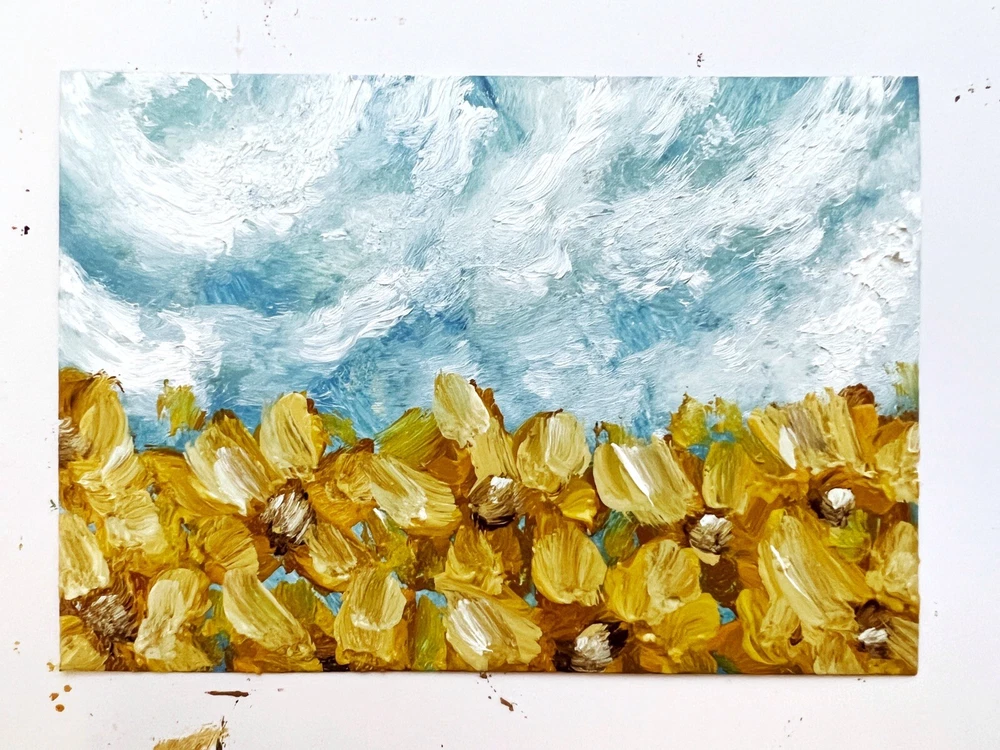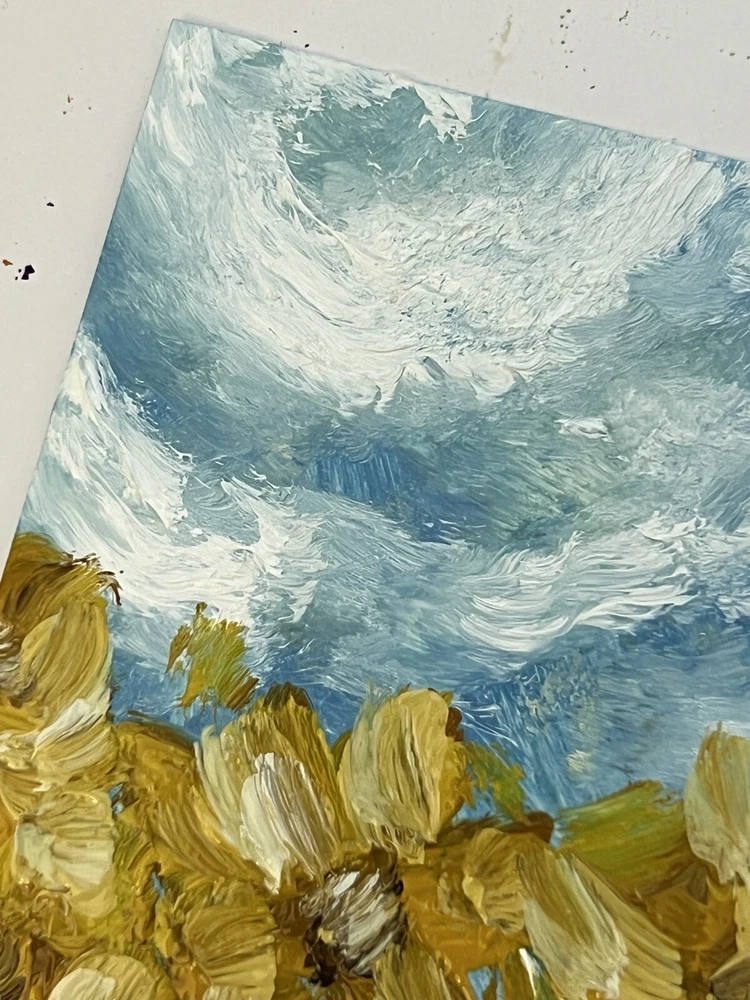 Production Technique: Oil Painting Country/Region of Manufacture: Ukraine Item Length: 6 in Type: Painting Material: Cardboard, Oil Date of Creation: 2000-Now Signed: Yes Handmade: Yes Title: Ukrainian Sunflowers Oil Painting Size: Small Features: Miniature, One of a Kind (OOAK) Listed By: Artist Signed By: Artist Region of Origin: Europe Framing: Unframed Unit of Sale: Single-Piece Work Original/Licensed Reproduction: Original Personalize: No Time Period Produced: 2020-Now Theme: Art Year of Production: 2023 Item Height: 4 In Subject: Flowers, Landscape, Plants, Nature Item Width: 0.1 In Style: Abstract, Impressionism, Outsider Art, Post-Impressionism, Impressionist Artist: Kateryna Oliynyk