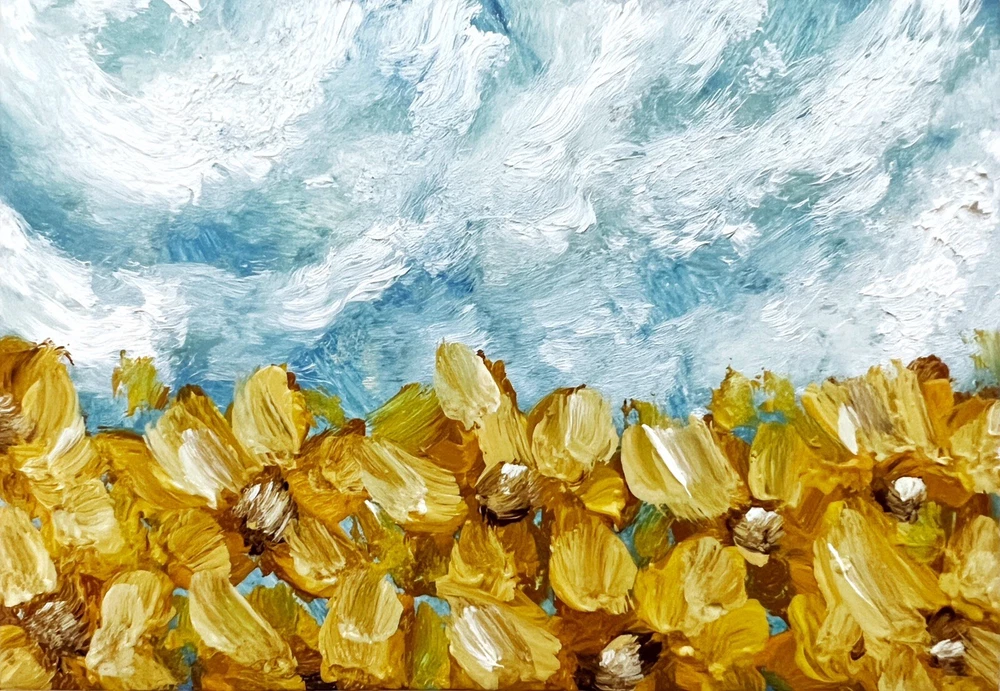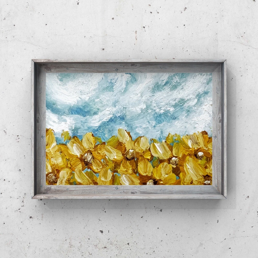 Abstract Sunflower Field Oil Painting Impressionist Ukrainian Landscape Artwork