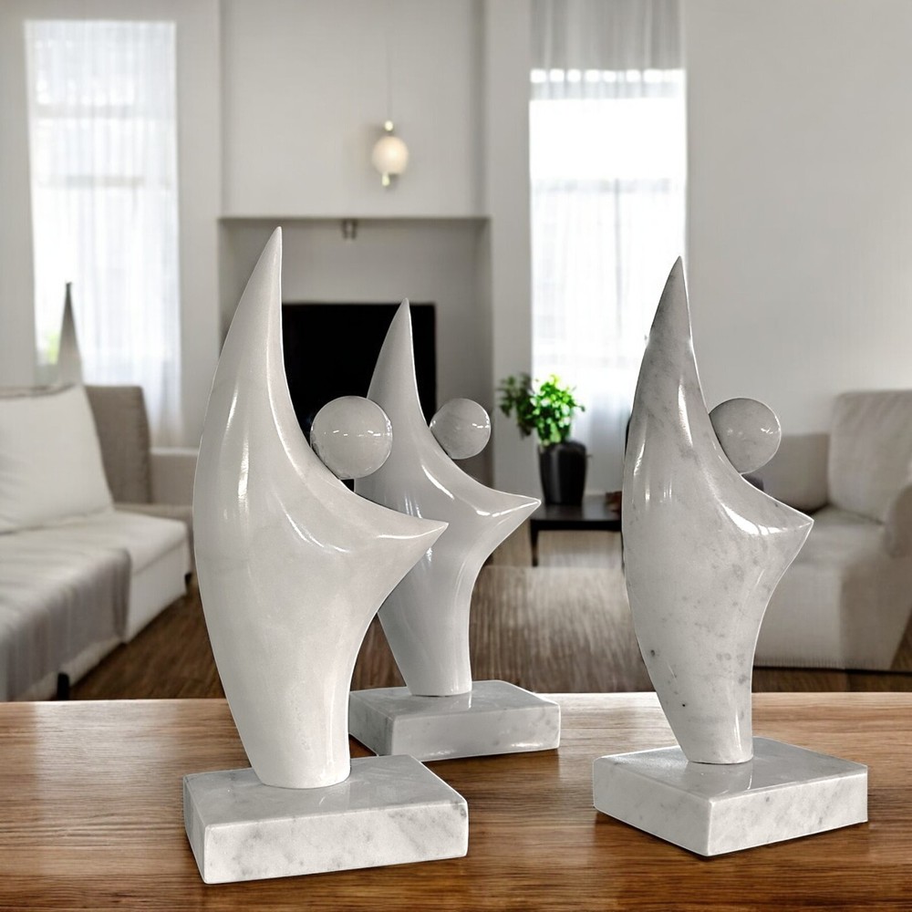 Safe purchases | Reply within 24 hours | Fast deliveries & traceable | Feedback Interior Exterior Home Decor Antiques Life Style Abstract table sculpture with carrara art marble sphere art design marble H 28cm Product details: Carrara marble, known for its purity and brightness, coming from the prestigious Carrara quarries. Height 28cm. Abstract and symbolic design, an artistic expression that evokes lightness and cosmic connection. Slying texture, a touch of silkiness that enhances the sinuous form and sublime quality of marble. Ideal to enhance any environment with a touch of art. Robustness and delicacy, a perfect balance between the strength of matter and the grace of form. Perfect for art collections or as a design element in modern and minimalist environments. Artisan work of value, a sculpture that celebrates the harmony between form and matter. This abstract carrara marble sculpture is a work of art that captures the essence of lightness and cosmic connection. The sinuous form, which rises upwards, and the sphere, a symbol of perfection and totality, create a visual dialogue that invites contemplation. Carrara marble, with its purity and brightness, enhances the shape and gives sculpture an aura of ethereal beauty. The enigma of the form: a sculpture that transcends the matter The smoothing texture of the surface, obtained with a process that respects the nature of the stone, invites the touch and amplifies the perception of the form. The sculpture, with its small size, is ideal for enhancing intimate and personal spaces, such as studies, libraries or bedrooms, adding a touch of art and refinement. The craftsmanship of the processing, which manifests itself in the precision of the form and in the attention to detail, makes each sculpture a unique piece, a work of art that celebrates the harmony between form and matter. The abstract carrara marble sculpture is an investment of value, a symbol of beauty and spirituality that enriches the environment and the soul. It represents lightness, connection, and harmony, universal values that resonate in every person. Ita Payment must be made no more than seven working days from the auction auction. Shipment Will Be Made Within 1 Business Day of Receipt of Payment. If you buy More Than One Product, You Can Make A Bulk Shipment and Save on Shipping Costs. Payment must be made within seven working days from the auction auction. Payment Must Be Made Within Seven Working Days of the Auction Being Award. Shipment Will Be Made Within 1 Business Day of Receipt of Payment. Eng International Shipping: please contact me Before Payment to ESTABLISH CONDITIONS. Shipping Amount Includes Insurance. Ita It is possible to return the goods and be reimbursed if the product does not correspond to the description. It is possible to return the goods if it arrives damaged due to the seller's service. Returns are not accepted if the product is damaged following the use of the customer. Eng It is possible to Return the goods and be reimbursed if the product does not working to the description. It is possible to Return the goods If it Arrivies Damaged Due to the Seller's Service. We do not Accept Returns If the Product is damaged as a result of the use of the customer. Contact us, click here! This abstract carrara marble sculpture is a work of art that captures the essence of lightness and cosmic connection. The sinuous form, which rises upwards, and the sphere, a symbol of perfection and totality, create a visual dialogue that invites contemplation. Carrara marble, with its purity and brightness, enhances the shape and gives sculpture an aura of ethereal beauty. The craftsmanship of the processing, which manifests itself in the precision of the form and in the attention to detail, makes each sculpture a unique piece, a work of art that celebrates the harmony between form and matter. The abstract carrara marble sculpture is an investment of value, a symbol of beauty and spirituality that enriches the environment and the soul. It represents lightness, connection, and harmony,