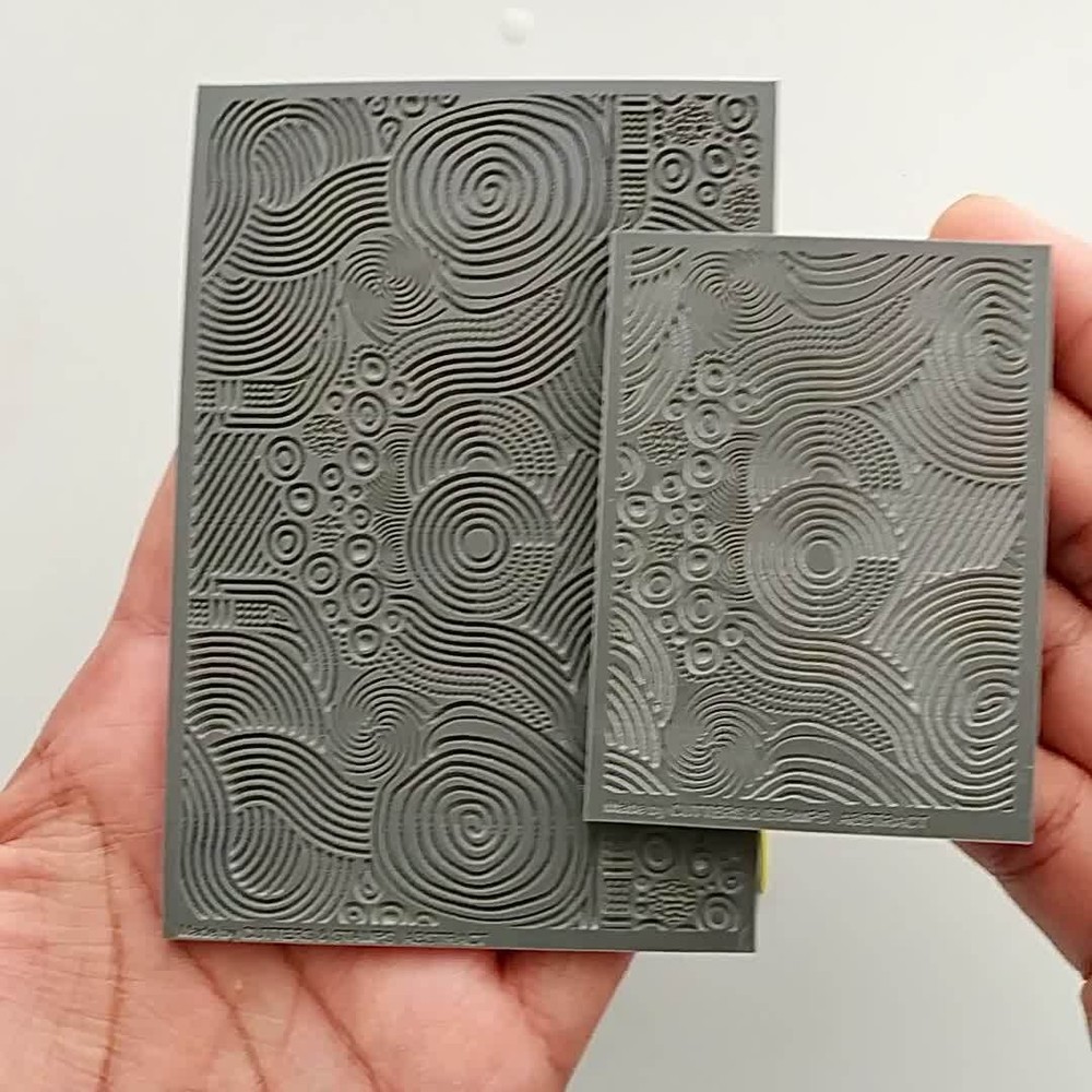 ABSTRACT Texture Mat for Polymer clay | Clay pattern stamps | Textures for Clay imprints | Polymer clay texture | ●● DESCRIPTION ●● This mat features a beautifully intricate pattern that adds depth and character to your clay, or other crafting materials. Texture mats are perfect for adding intricate details and designs to your polymer clay projects. From delicate floral patterns to geometric shapes, our texture mats has a variety of textures to choose from, giving you endless creative possibilities. These flexible texture mats are very easy to use, Place the texture mat on your conditioned rolled out Polymer clay slab and using a rolling pin, roll the texture mat on your clay with pressure to imprint the texture. ●● SIZE ●● Please take a moment to review the listing photo for the size of the texture mat. This will help you to determine whether the dimensions of the mat are suitable for your needs. If you have any questions or concerns about the size or dimensions of the texture tile, please don't hesitate to contact us. ●● CARE INSTRUCTIONS ●● - Hand wash the mat with dish soap and soft-bristled brush before first time use. - Generally Polymer clay will not stick to the mat, but if there is any residue of clay stuck into some intricate detailing of the texture after use, then remove then with a soft-bristled brush. - Avoid using sharp objects on the mat, as they can scratch or score the surface and create permanent marks. Add our texture mats to your crafting arsenal today and take your polymer clay creations to the next level. Happy crafting! AROHA Texture Mat for Polymer clay | Clay pattern stamps | Textures for Clay imprints | Polymer clay texture | ●● DESCRIPTION ●● This mat is designed to infuse your creations with heartfelt emotions and it features a beautifully intricate pattern that adds depth and character to your clay, or other crafting materials. Texture mats are perfect for adding intricate details and designs to your polymer clay projects. From delicate floral patterns to geometric shapes, our texture mats has a variety of textures to choose from, giving you endless creative possibilities. These flexible texture mats are very easy to use, Place the texture mat on your conditioned rolled out Polymer clay slab and using a rolling pin, roll the texture mat on your clay with pressure to imprint the texture. ●● SIZE ●● Please take a moment to review the listing photo for the size of the texture mat. This will help you to determine whether the dimensions of the mat are suitable for your needs. If you have any questions or concerns about the size or dimensions of the texture tile, please don't hesitate to contact us. ●● CARE INSTRUCTIONS ●● - Hand wash the mat with dish soap and soft-bristled brush before first time use. - Generally Polymer clay will not stick to the mat, but if there is any residue of clay stuck into some intricate detailing of the texture after use, then remove then with a soft-bristled brush. - Avoid using sharp objects on the mat, as they can scratch or score the surface and create permanent marks. Add our texture mats to your crafting arsenal today and take your polymer clay creations to the next level. Happy crafting!