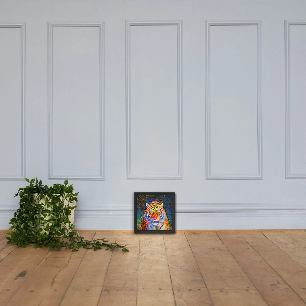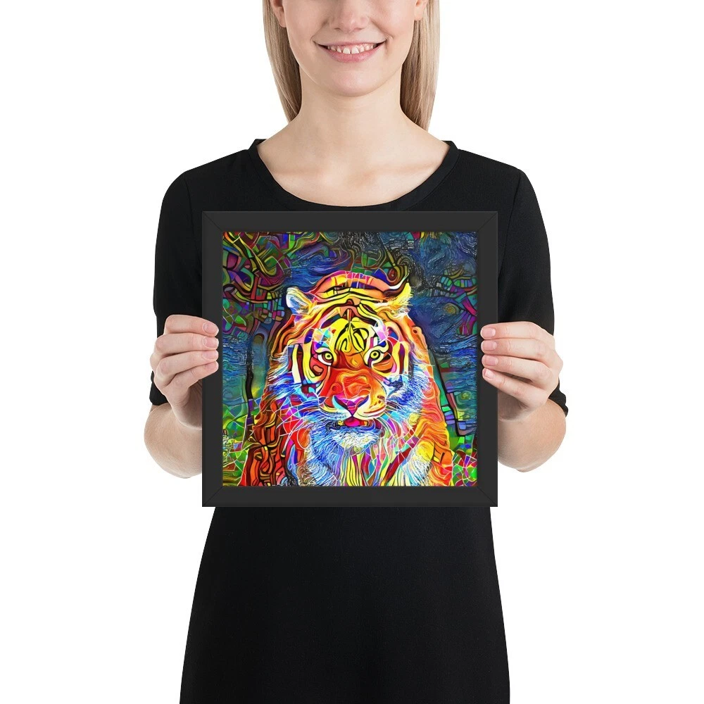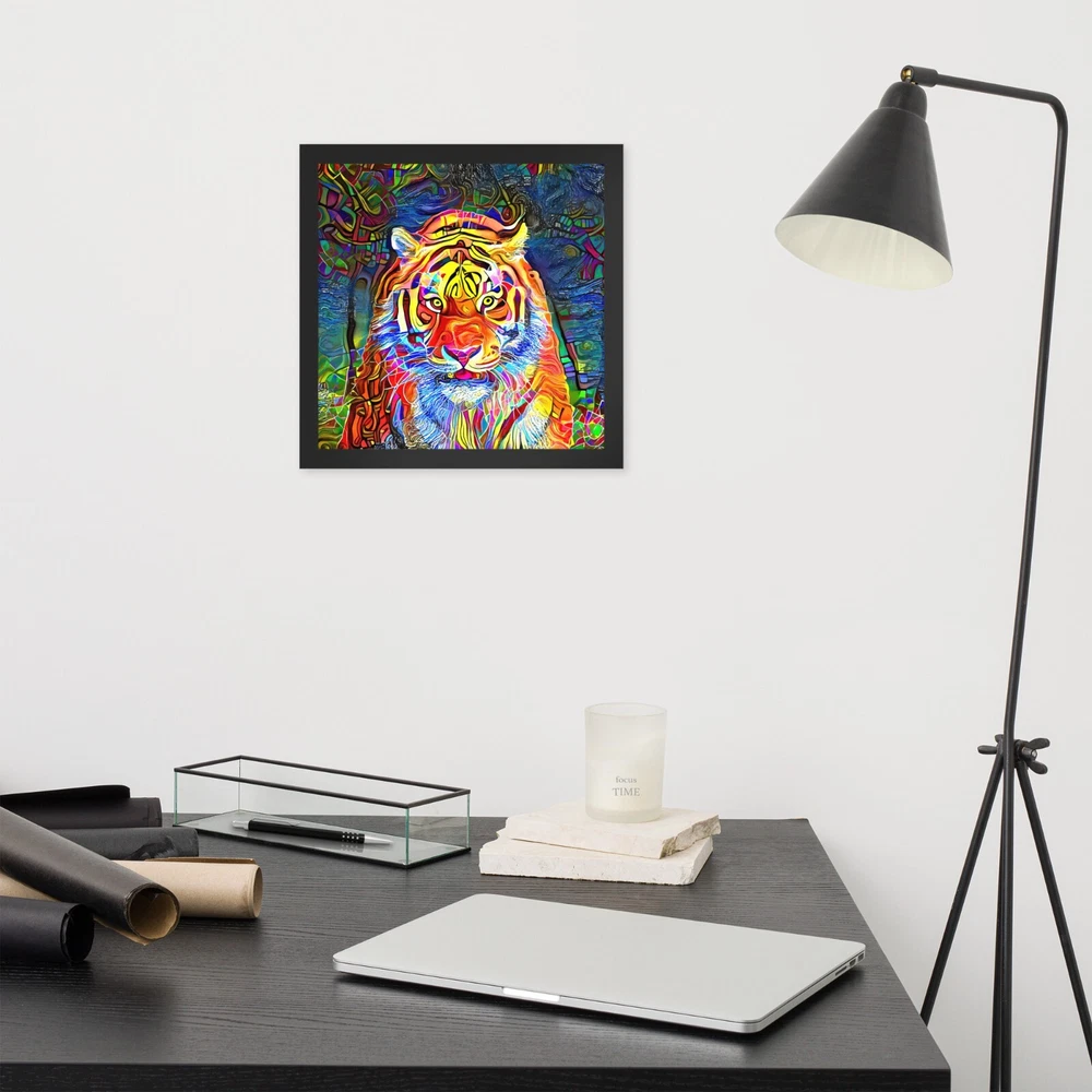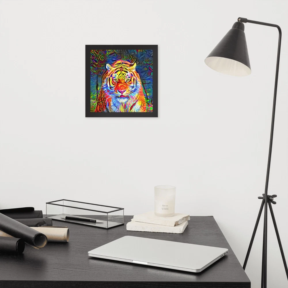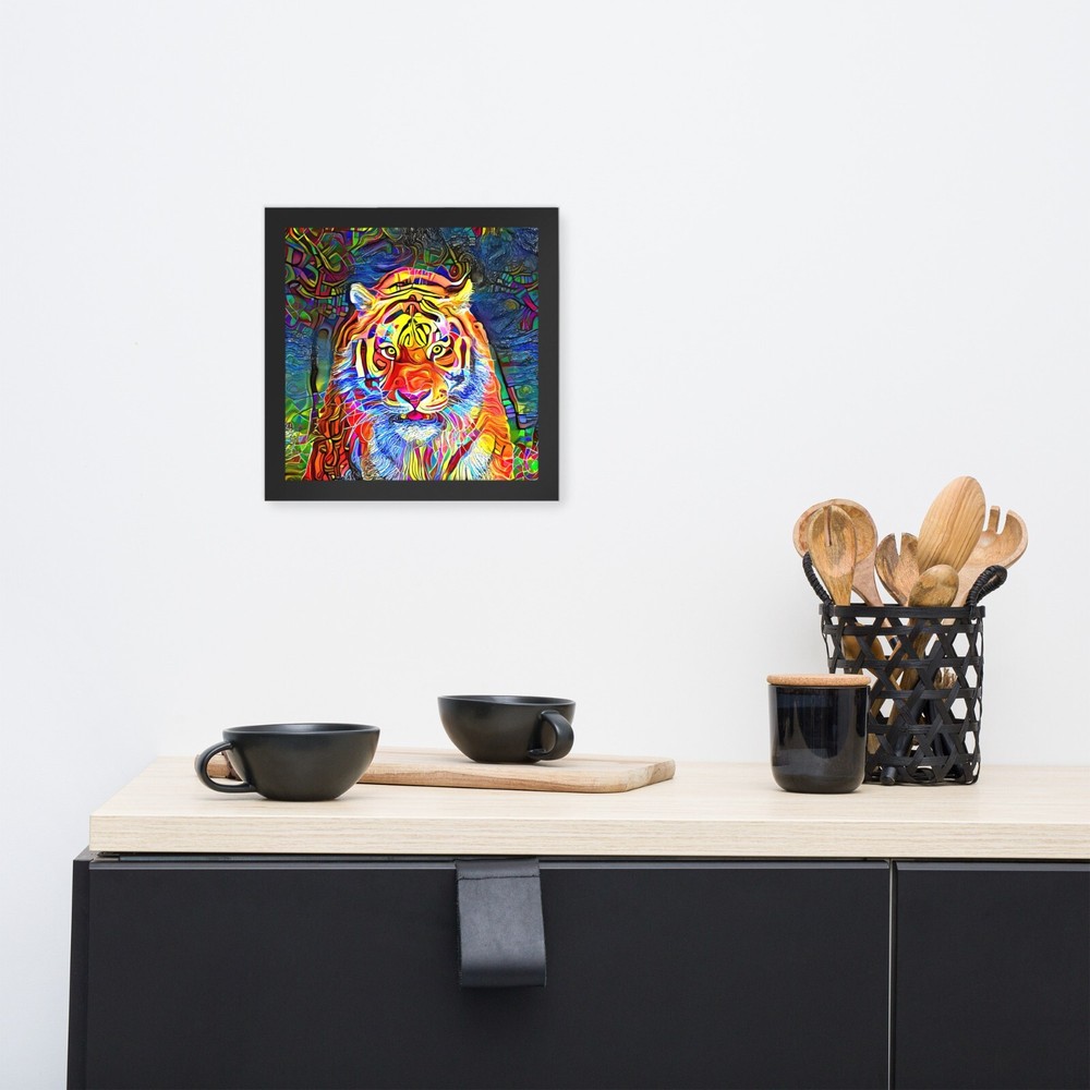 This stunning tiger portrait instantly elevates any space with its bold, artistic vibe. The high-quality matte paper makes colors pop, while the sleek black wood frame adds modern elegance. I love how lightweight yet durable it feels, and the included hanging hardware made setup a breeze. The protective acrylite front keeps it looking sharp, and knowing the materials are responsibly sourced is a nice bonus. Perfect for adding wild sophistication to living rooms, offices, or bedrooms!