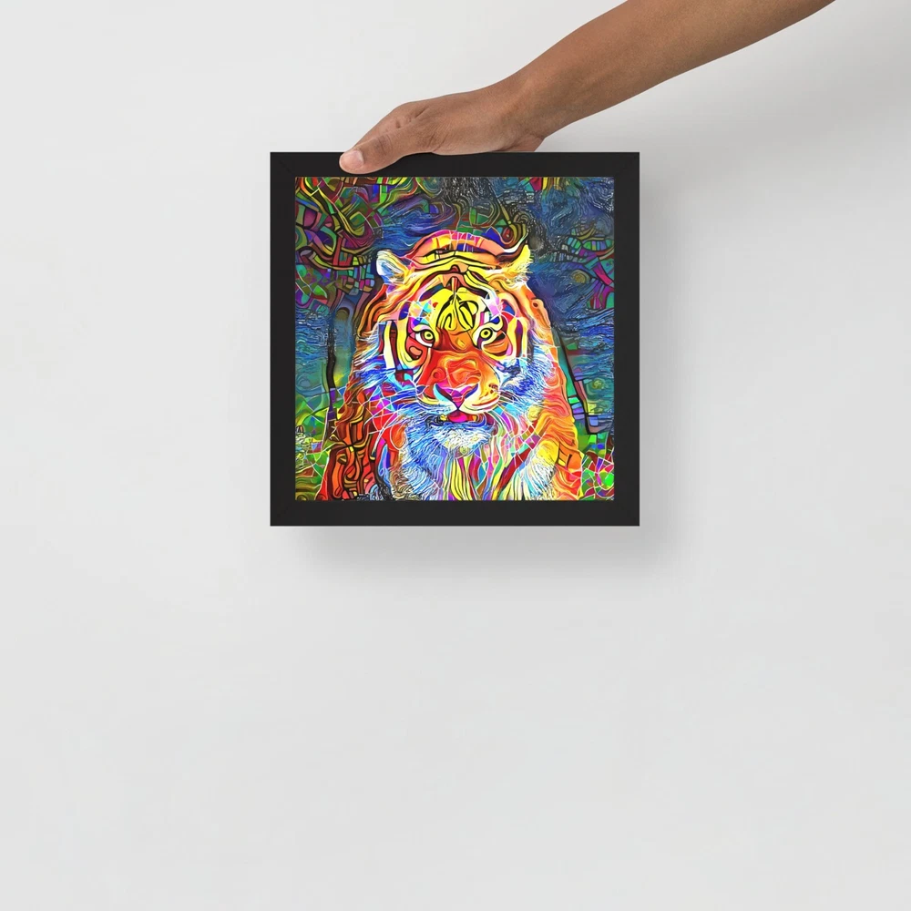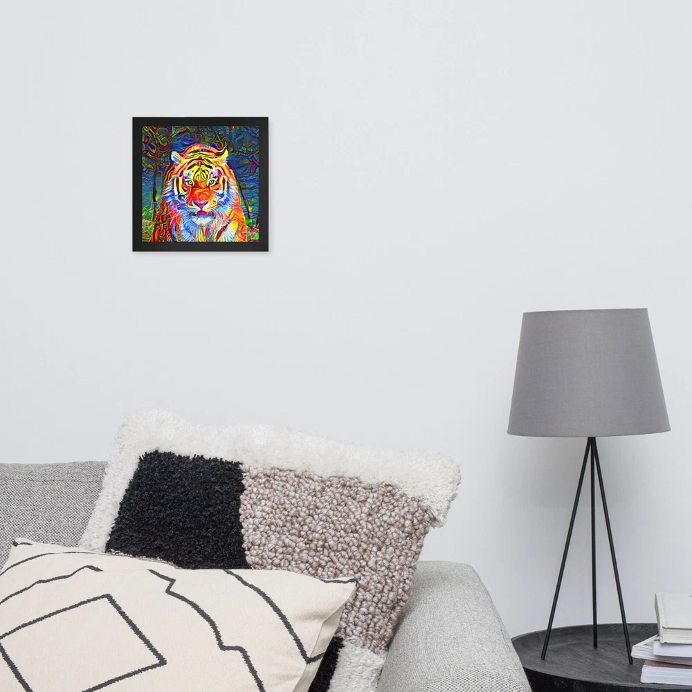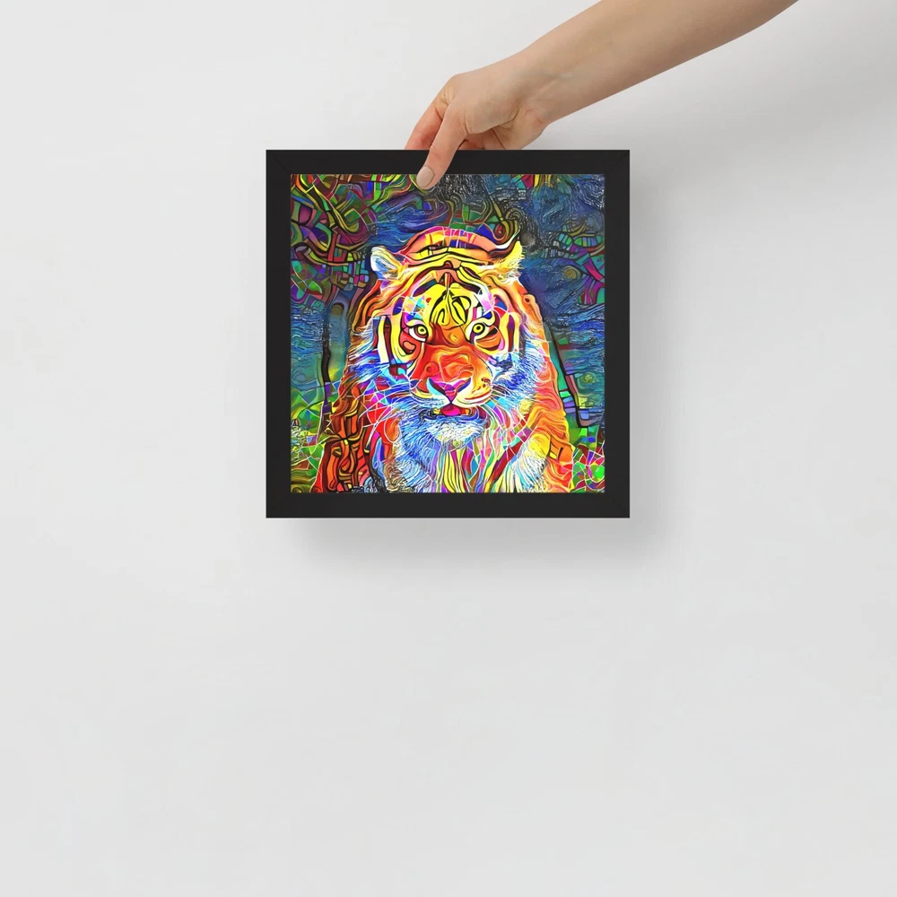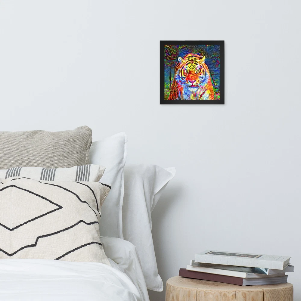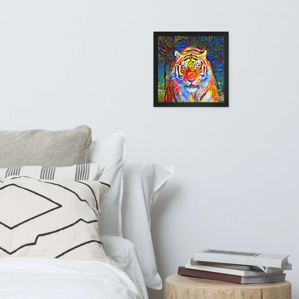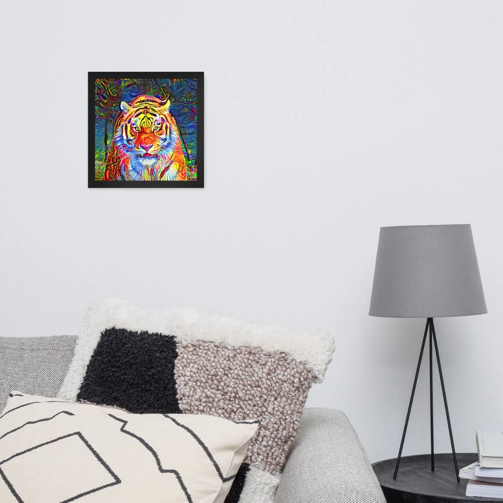 This stunning tiger portrait instantly elevates any space with its bold, artistic vibe. The high-quality matte paper makes colors pop, while the sleek black wood frame adds modern elegance. I love how lightweight yet durable it feels, and the included hanging hardware made setup a breeze. The protective acrylite front keeps it looking sharp, and knowing the materials are responsibly sourced is a nice bonus. Perfect for adding wild sophistication to living rooms, offices, or bedrooms!