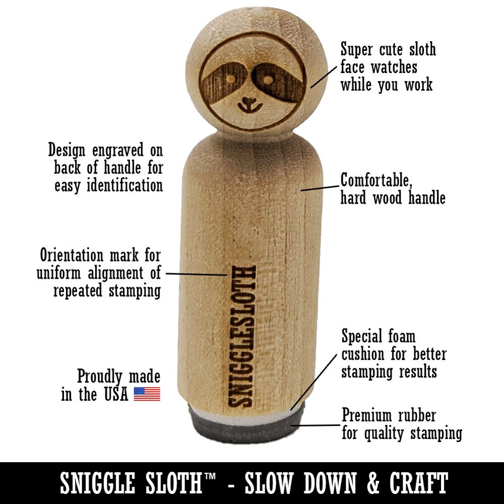 Slow down and craft with this charming mini rubber stamp from Sniggle Sloth. Small in size, but big in character, our stamps features deeply etched rubber for excellent clarity. A foam layer between the handle and rubber adds cushion to make stamping a breeze. The wood handle features our Sniggle Sloth mascot, the stamp design for easy identification and an alignment mark to make sure your stamped image is aligned the way you want it. You've never seen a wooden stamp handle quite so cute or useful. Decorate cards, gift wrap, journals, planners, paper, clay, fabric, eggs and more with this delightful rubber stamp. Use alone or combine with other Sniggle Sloth stamps to create fun borders, wreaths and other designs. The creative possibilities are only limited to your imagination. The long natural hardwood handle keeps fingers away from the ink to eliminate smudging and messes. Use with traditional stamp ink pads, acrylic or watercolor paints, and more. Easy to clean with a wet cloth. The materials in this stamp are sourced from top US companies and assembled in our Sniggle Sloth California facility to form a high-quality product you'll cherish for years.