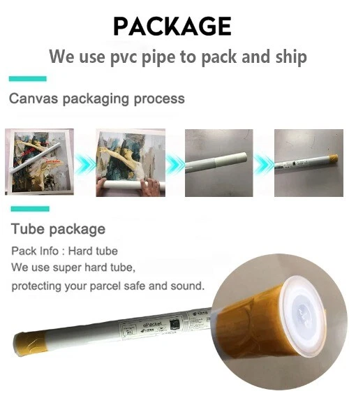 Remind our customers about something Important 1. This is unframed canvas rolled, no outside frame and no inside frame. 2. Due to different lighting effects between computer monitors,cell phone, the color of objects will be a little different from show pictures in Our store 3. 1 inches=2.54 cm Product Show About Size: About Details: About Package: -We use a hard PVC Tube packaging to protect it -PVC pipes have enough strength ensure the safety of decorative paintings during transportation Tariff Delivery details Feedback Return /Refund Contact us Tariff Paying tax is the duty of every citizen, buyer need to responsible for the all of taxes. Due to the tax problem, buyer refuse to receive the goods, buyer need to Responsible for freight out and home. Delivery details 1. Delivery time: We send by China Post Air Mail in Default. (20-60 days for different cournties, Brazil sometimes needs 90days). We send by Epacket to USA about 7-15 days. 2. For fast delivery, please choose EMS (7-10 days), for Russia and Brazil, it needs 10-15 work days. 3. We guarantee to ship out within 15days after payment confirmation (except Holiday). 4. Our shipping rates include the cost of shipping, handling, packaging and related manpower costs. 5. Please contact us If you don't receive over above business days,we will solve this problem in a very short time. 6. Please make sure the shipping address is correct. We are not responsible for any wrong or undeliverable addresses. Feedback 1.We depend on our aliexpress reputation and customer satisfaction to succeed. Therefore, Your feedback and DSRS are extremely important to us as better DSR scores affect our search; placement on aliexpress. 2.If you love my items please leave me good feedback and 5 star DSR rating. Your action will help us offer our milk and bread . I will do the same for you .If we have not given you reason enough for 5-star grades on each DSR then please let us know how we can earn your 5-star rating before submitting your stores! Return /Refund 1. We will check the goods quality before shipment. If there are some unexpected problems happen, we hope to solve the problems with buyer through friendly in the following ways: (1) If it is quality problem, buyer can contact us after receiving the goods, buyer can help to provide photos or video and other evidence to help us to solve the problems. (2) Man-made damaged, buyers take full responsibility. (3) If the cusomers do not satisfy with the products, the buyer return the goods in original conditon to us; after we receive the goods ,we will send a new product to buyer or refund the money. But shipping fee is not refundable. And the item should be returned to us in its original condition by mail with tracking number. 4. Any question you would like to ask ,welcome to email us Contact us All emails will be answered within 24 hours. If you do not receive our reply, please kindly re-sent your email and we will reply you as soon as possible. If you email us and don't hear a reply, please email again through the aliexpress system as sometimes our mail servers have errors Because of the new rule of Russia post office, When make an order, Russia customers have to write the Full name(a surname, a name and a middle name), or the packages would be sent back . No full name, we will refuse to send goods out! thanks! Thank you for your coming to our shop!!!