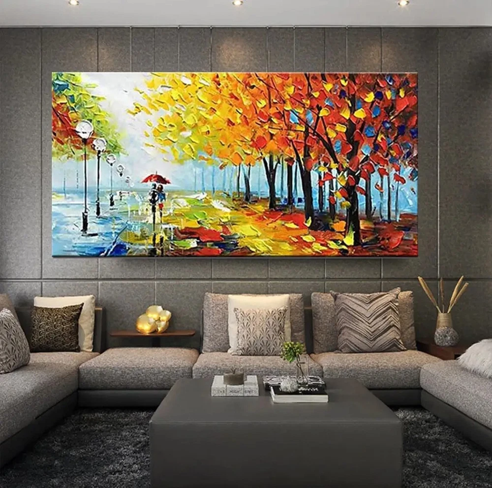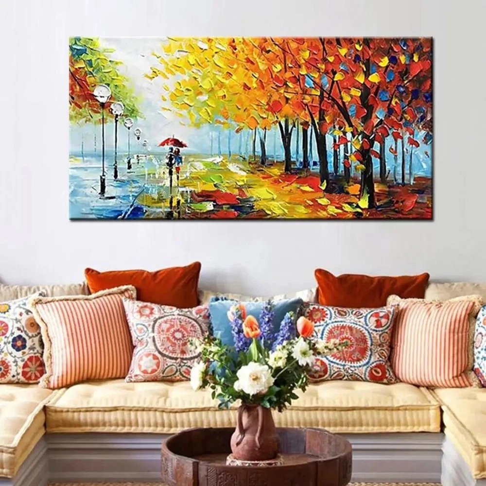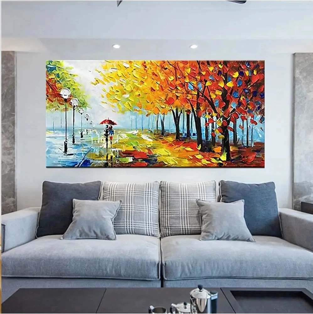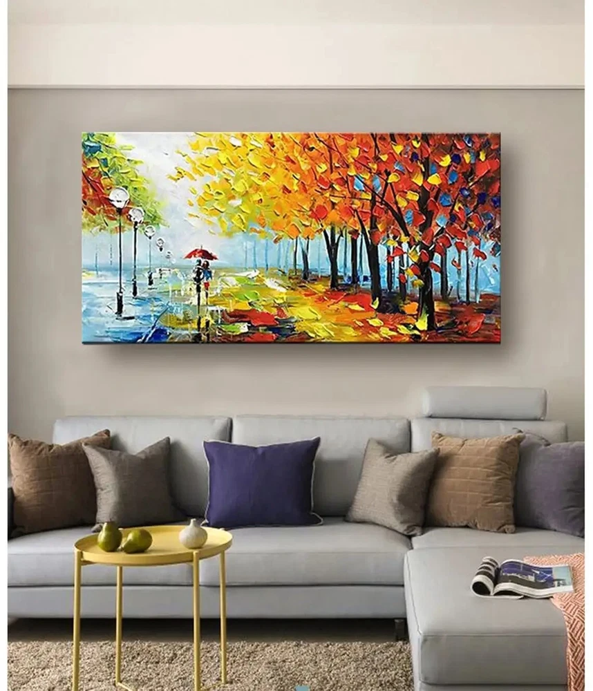 Abstract Wall Art Handmade Oil Painting Modern Textured Paintings Park Landscape