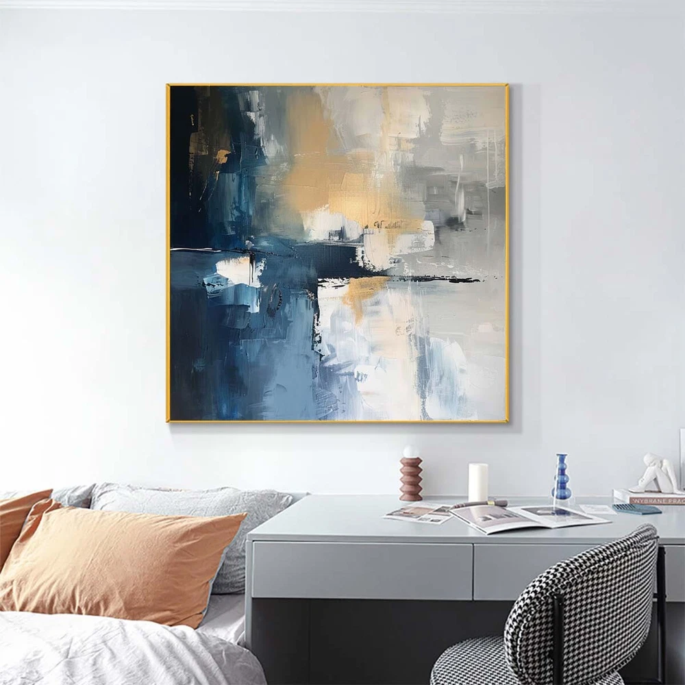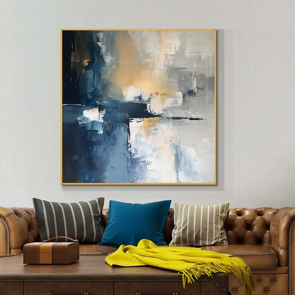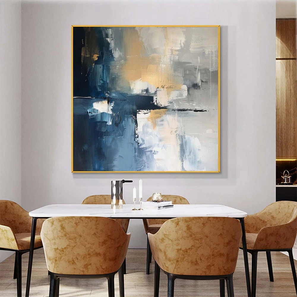Abstract Wall Art Handmade Oil Painting On Canvas Living Room Blue 31in