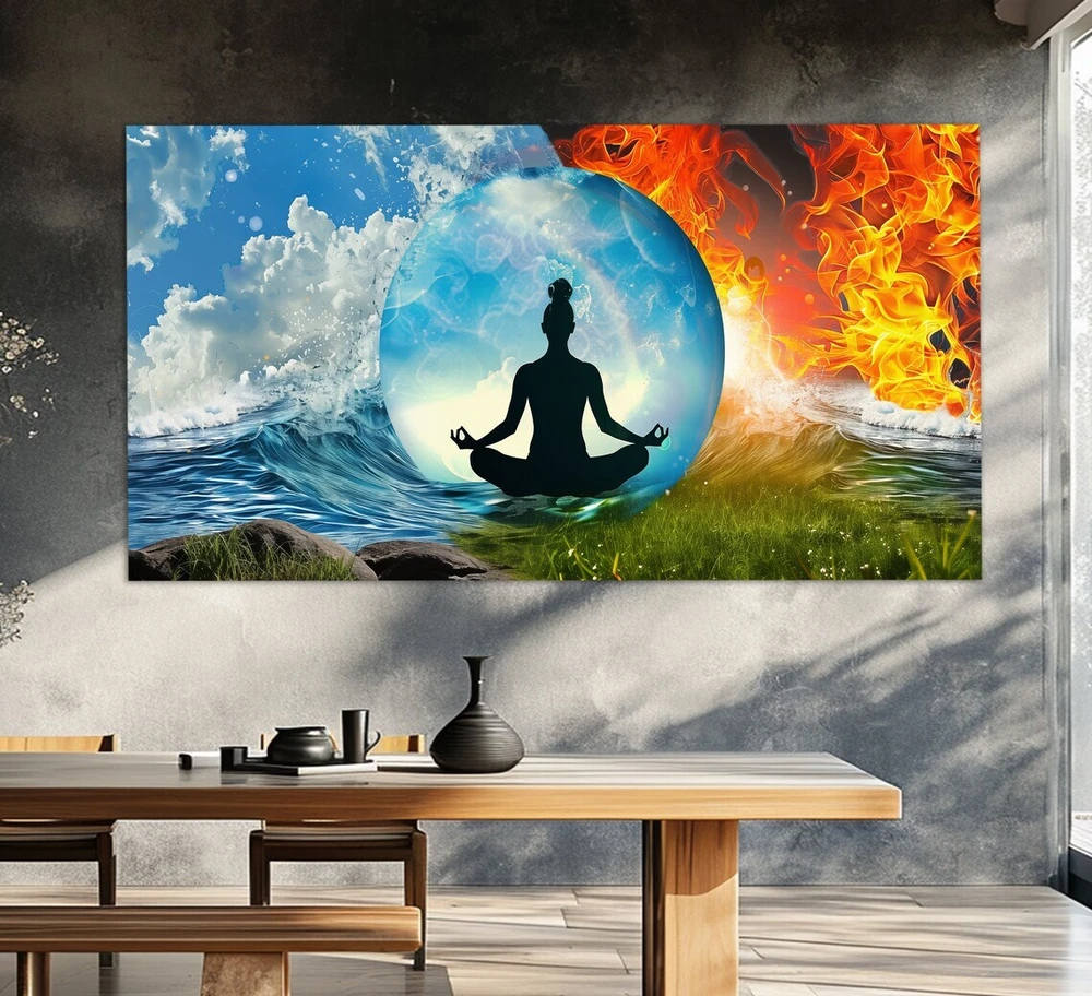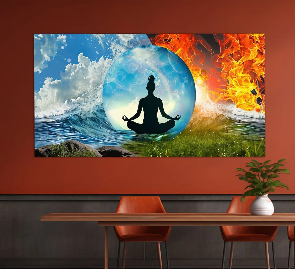 Abstract Water and Fire Buddhism Paint Wall Art Canvas Unframed Print Art