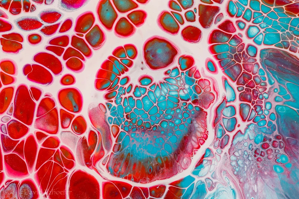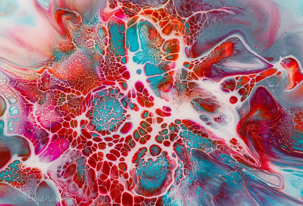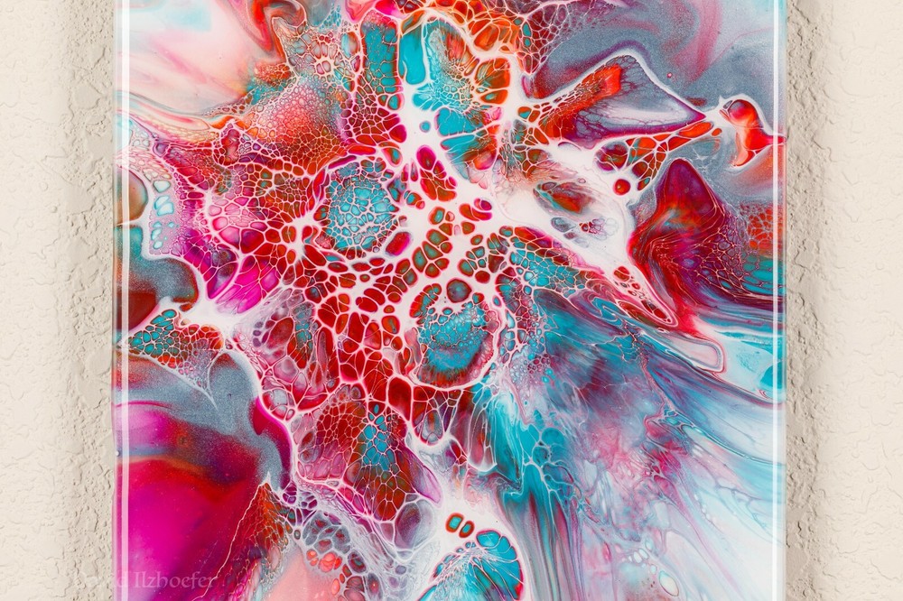 This is an original acrylic pouring painting, done by me. Hot pinks and blues together have nice constrasting colors. It is painted on a 6" x 6" porcelain tile. The technique is called Bloom Technique. The back is painted black and has 4 rubber bumpers to protect your wall also signed by me and the signature is sealed. The hanging mechanism is a 'd' ring affixed to the back of the tile. My paintings include working with high quality acrylic paint. This painting is sealed with superior resin which has uv protection and is scratch resistant (not scratch proof). Colors differ on everyone's monitor, please reach out to me with any questions. Please check my other auctions. David Ilzhoefer