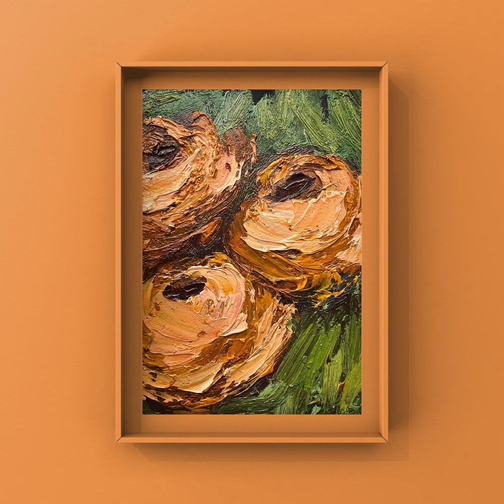 This gorgeous little oil painting brings a burst of floral beauty to any space! The rich impasto texture and vibrant colors make it feel alive, like a tiny garden on your wall. Perfect for adding a touch of nature-inspired elegance to a cozy corner or desk. The expressive brushwork gives it an impressionistic charm, making every glance feel fresh and joyful. A delightful piece for art lovers who appreciate handcrafted details!