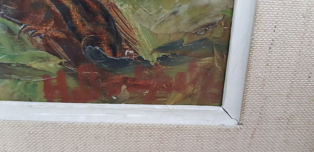 Handgemaltes Ölgemälde. Technik: ÖL auf Platte, signiert. Die Größe mit Rahmung beträgt: 58 cm x 65,5 cm. Ohne Rahmung: 46 cm x 53,5 cm. Gebrauchter Zustand, aufgrund des Alters. Schauen Sie sich bitte die Fotos genau an. Diese gehören zur Artikelbeschreibung und können nicht als Reklamationsgrund angegeben werden. Der Bilderrahmen ist nicht Gegenstand des Kaufs, wird jedoch gratis mitgeliefert. Beschädigungen am Rahmen werden nicht Alls Reklamation anerkannt. Überprüfen Sie bitte unsere Versandbedingungen genau. Mit dem Kauf eines Gemäldes erklären Sie sich damit einverstanden. Farbabweichungen sind möglich, da jede Kamera und ein Bildschirm die Farben unterschiedlich vermittelt. Sollten Sie Fragen haben bzw. weitere Angaben benötigen, insofern ich sie hebe. Stellen Sie, sie bitte vor dem Kauf. Bitte beachten Sie auch unsere anderen Angebote, es folgen jede Menge Bilder. Wir wünschen Ihnen viel Spas beim Stöbern und Kaufen.