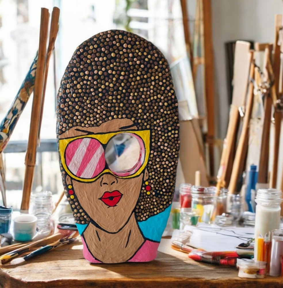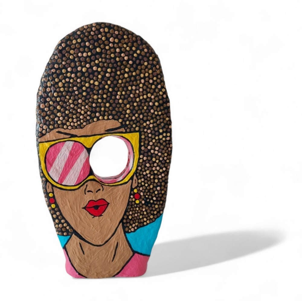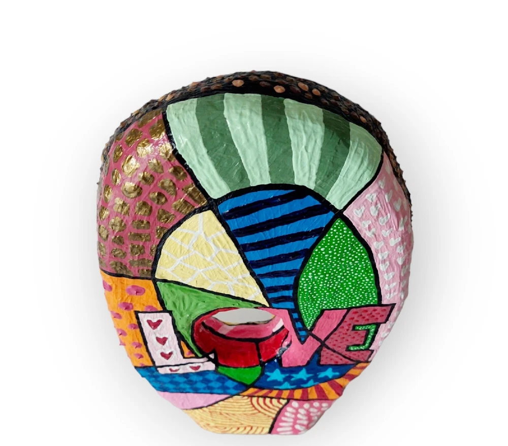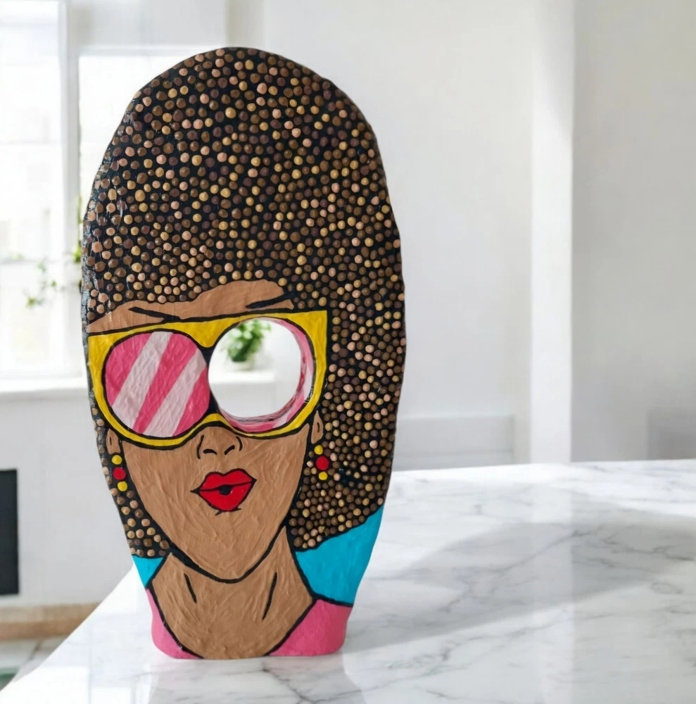 ➤Handgefertigte Unikate: Meine Skulpturen sind aus Draht, Gips, Papier, Gelmedium und Acrylfarbe gefertigt. Habe Skulpturen im Pop Art Stil oder auch abstrakte Figuren im Sortiment. ➤Geschichte/Informationen zur Skulptur: Skulptur ist auf zwei Seiten bunt bemalt im Pop Art Stil. Eine Seite mit einem Frauengesicht. Die Frau trägt eine Sonnenbrille und hat braune Haare. Auf der anderen Seite mit einem großen Schriftzug Love. Darum im Pop Art Stil bemalt. Gesamtmaße: 18 x 34 x 4 cm (B x H x T). ➤Hinweise: "Angegebene Preise sind Gesamtpreise. Kein Ausweis der Umsatzsteuer (Kleinunternehmer)." Meine Skulpturen sind ja im Inneren aus Draht und daher auch nach Fertigstellung leicht biegsam. Man darf daher gerne behutsam damit umgehen und für die Deko Skulptur gerne einen schönen Platz im Wohnzimmer, Hobbyraum o. ä. finden und die Figur dort einfach stehen lassen. Es handelt sich um eine Skulptur für den Innenraum. Bitte die Skulptur nicht in feuchte Räume (wie zum Beispiel Badezimmer) stellen. Meine Arbeiten unterliegen dem Urheberrecht und dürfen ohne schriftliche Genehmigung von mir weder verändert, ausgestellt, kopiert oder reproduziert werden. ➤Geschenkideen: Die Figur in Bewegung kann als Geschenk für einen Kollege / Kollegin sein. Oder als Mitbringsel zum Geburtstag. Als witziges oder originelles Geschenk einfach so. Als Geschenk für den Freund die Freundin. Als besonderes lustiges Präsent als Ostergeschenk gedacht sein. ➤Personalisieren: Gerne kann ich auf Wunsch eine Skulptur auch Personalisieren um ein ganz besonderes Geschenk daraus werden zu lassen. ➤Zeitgenössische abstrakte Skulpturen, Figuren, Statuen als Dekoration: Moderne, filigrane, elegante, puristische Plastiken für Kanzleien, Praxen, Hotels, für das Büro, das Schlafzimmer, das Wohnzimmer, die Wohnwand, das Sideboard, das Ablageboard, Flure, den Schreibtisch und Eingangsbereiche geeignet.