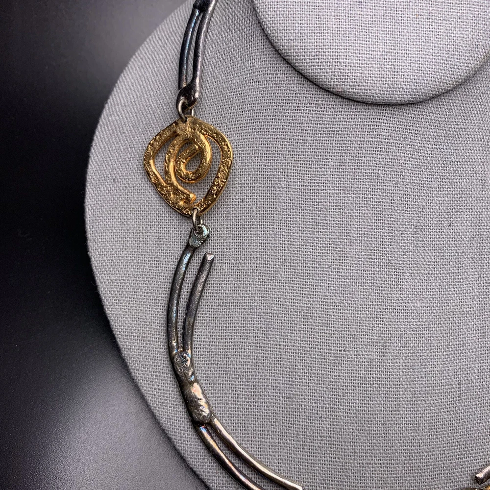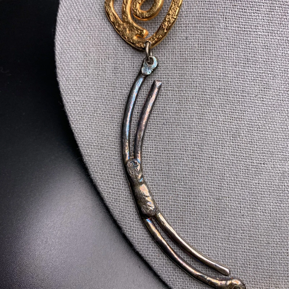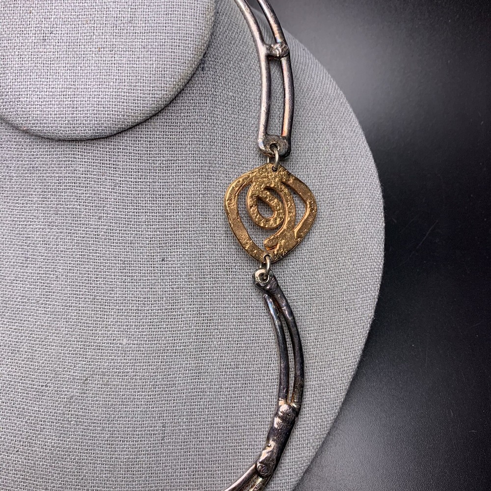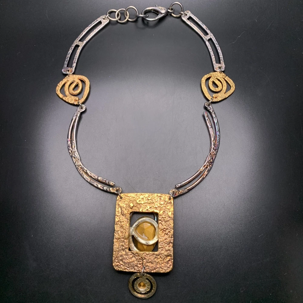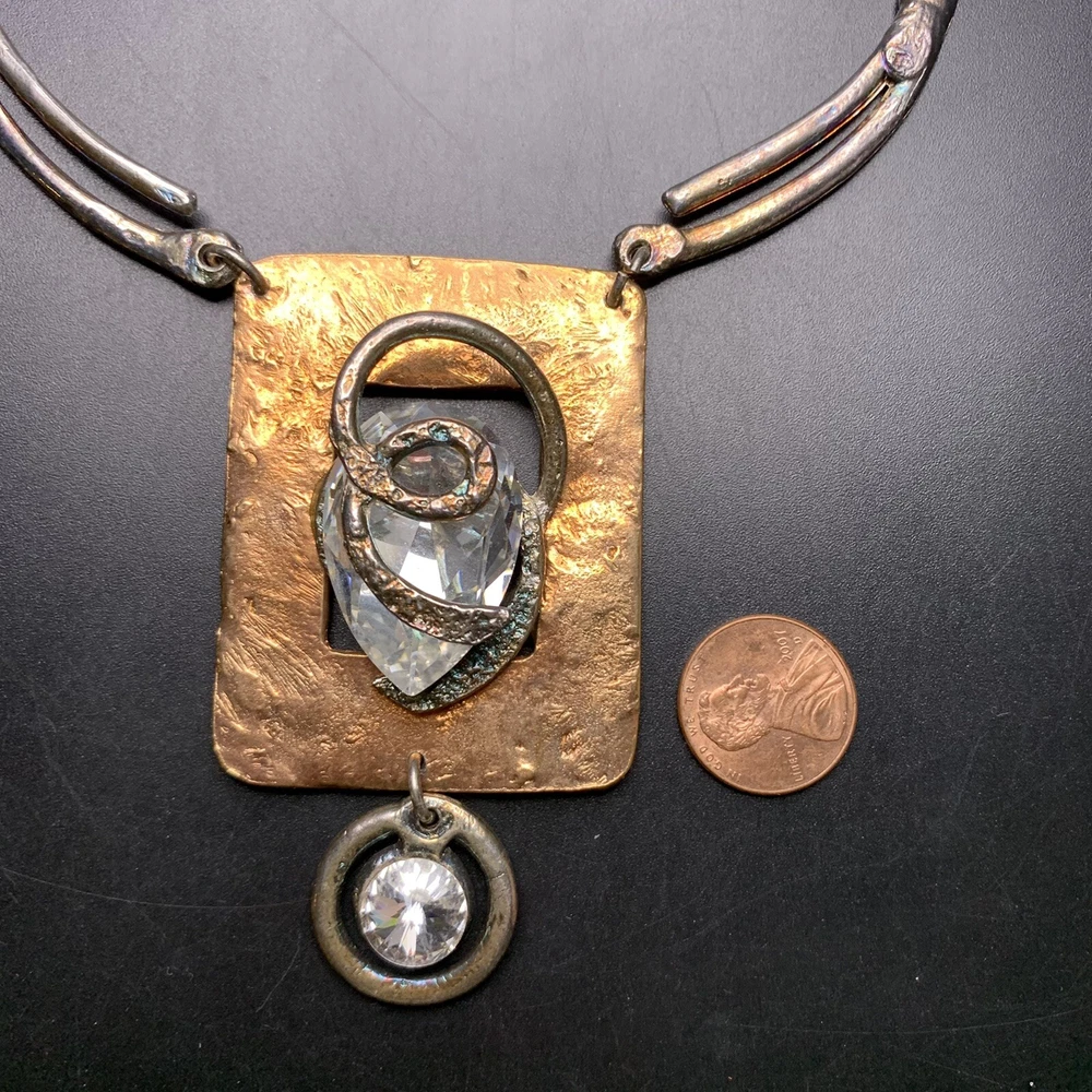 Two-tone with clear glass stone bold statement necklace; Approx 18" up to 19" long; has a paisley maker's mark (unsure what maker this is)