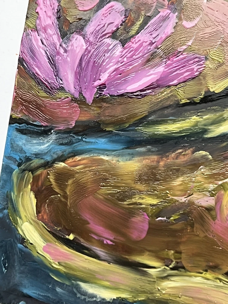 đŸŒ¿ Water lily pond oil art 6" Waterlily oil painting Claude Monet pond inspired wall art Waterlilies artwork . đŸŒ· Original author's oil painting on cardboard. đŸŒ¿ Size: 15x15cm / 6x6 inch đŸŒ· Signed from the back. Made in Ukraine, 2022. đŸŒ¿ Materials: professional oil paints, cardboard, brush. Unframed. đŸŒ· I use exclusively professional and safe high quality paints for artists in my artworks. đŸŒ¿ Each parcel is securely and beautifully packed, so you don't have to worry about its safety. đŸŒ· Please note that paintings are sent without frames.