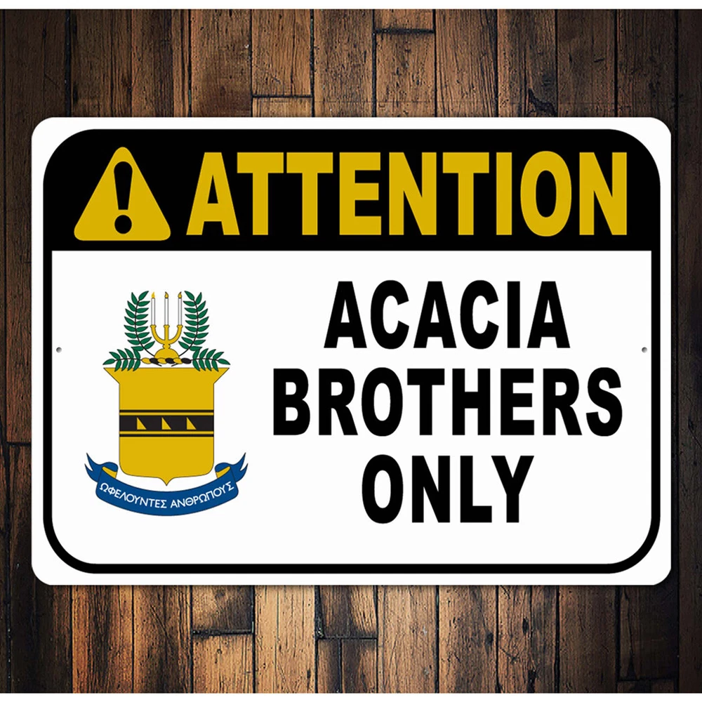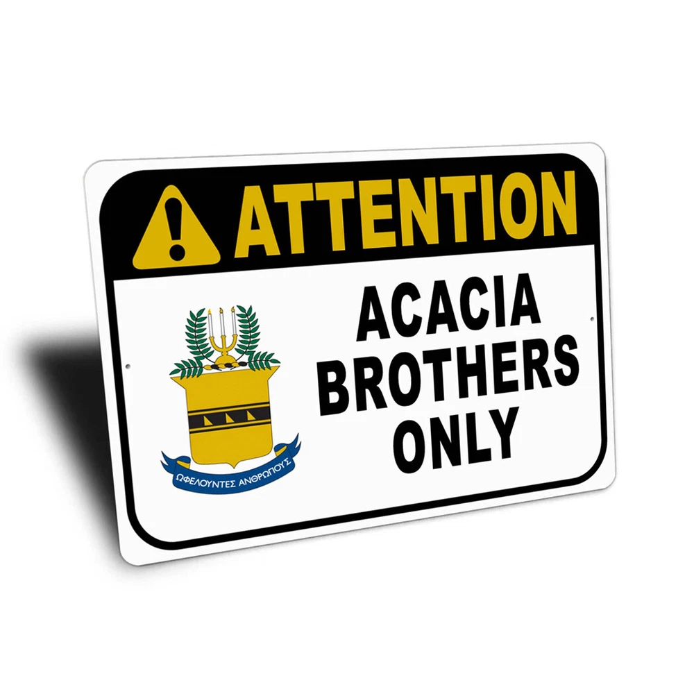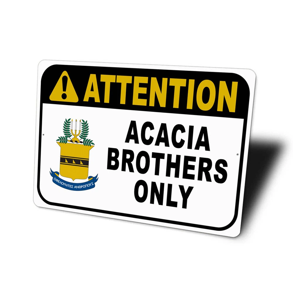 The Lizton Sign Shop Product Description Acacia Brothers Only Attention Sign **there may be slight variations in color and text spacing, however your sign will be very similar to the image above. Quality Aluminum Street Signs Sign Information Aluminum Brand New Sign Comes with rounded corners and pre-drilled for easy hanging. We use the highest quality materials - 100% USA-made! Great Gift Idea - Our signs truly make a one of a kind gift. Personalize the sign with the text you want to add. Custom text for the sign can be sent to us via email. A BRAND NEW SIGN!! All of our street signs are made of premium materials. The sign itself is made of aluminum and will never rust providing years of enjoyment indoors and outdoors. No Cheap plastic!! The Lizton Sign Shop specializes in quality personalized custom aluminum signs for any occasion. These make the perfect sign for any man cave, office, basement, garage, college dorm, kids bedroom, game room, bar, pub, tavern or countless other places. *Colors may vary slightly from one computer screen to the next but the image should be very close. All content and designs are subject to copyright and may not be reproduced in any form. Payment Methods We would prefer payment to be made through paypal but we also accept all major credit cards. If you select the credit card option please contact us after you make your purchase and we can walk you through the steps to make a secure payment. Return Policies We will accept returns within 30 days of the purchase date. The buyer is responsible for any costs to return the item or items. Returns will only be accepted for items that were damaged in shipping or if we made an error in the manufacturing of your item, i.e. spelling error.