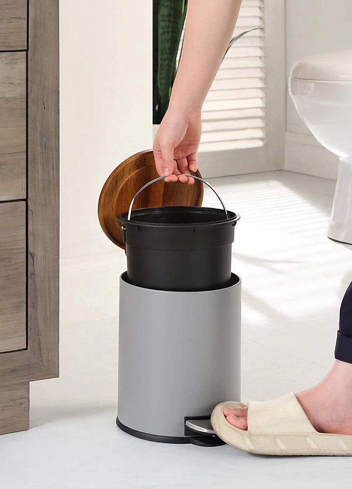 We offer Free Shipping on all orders!! Welcome to my store, The Smart of your choice and satisfaction guarantee. Acacia Cover 3 Liter / 0.8 Gallon Round Trash Can with Plastic Inner Bucket B... Product Description Round-sized perfectly for smaller spaces, these Square waste cans from SunnyPoint fit perfectly in bathroom cupboards, unused corners, vanity space, or next to the toilet. The interior liner bucket has handles for easy removal and emptying. Open the lid hands-free with the step design. The durable material is easy to clean. Most important is the Slow Close Lid Can Features OverAll Size: 9.5" H x 9.5" x 6.75"; Natural Acacia Lid + Textured Powder Coating. 3 Liter / 0.8 Gallon Capacity; Mini Size - 3 Liter; Inner Bucket Size: 6.65"D X 7"H Made of Steel With A Durable Powder Plated The Durable Plastic Liner Bucket Can Be Easily Lifted Out Of The Can And Rinsed Out With Mild Soap And Water When Needed Silent Close Lid Function Payment Policy - Payment managed by eBay. - We accept payment via PayPal, which provides a high level of security for buyers and sellers. All major credit cards are accepted through eBay. - Orders will be processed and shipped only after payment is received. - If you wish to cancel an order, please contact us as soon as possible. Orders that have already been shipped cannot be canceled. Shipping Policy - We do not ship to a different address. We will ship to the address you provide on eBay only. Please check your address before purchase. - Items are dispatched within 24 hours (except weekends and holidays) and shipped from the US. - It should take 3-5 business days for the product to reach your destination (Saturday and Sunday excluded). - We use a selection of shipping services such as UPS, FedEx, USPS, etc. - We ship only to the 48 contiguous states of America. We do not ship to Hawaii, Puerto Rico, Alaska, US Protectorates, APO/FPO addresses, and PO Boxes. Local pickups are not offered. - If it takes any longer than that, please do not hesitate to contact us to resolve the issues. Returns Policy - This product comes with a 30-Day Money Back Guarantee. - If you receive an item and it doesn't work properly or you don't like it for any reason at all, - We have a 100% refund/return policy. We will ship you a new item or refund your money for the full sale amount. - For all returned products, buyers MUST contact us for the returning address.