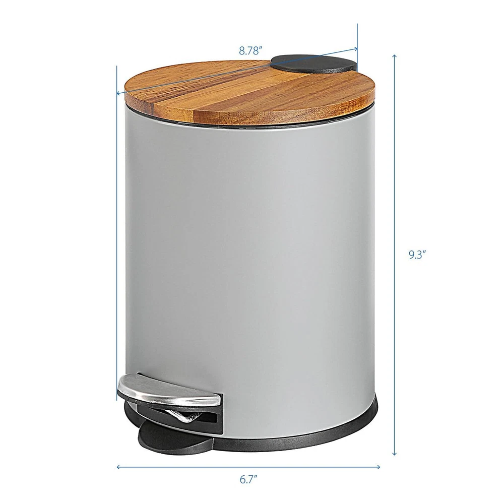 Acacia Cover 3 Liter / 0.8 Gallon Round Trash Can with Plastic Inner Bucket B... Acacia Cover 3 Liter / 0.8 Gallon Round Trash Can with Plastic Inner Bucket B... Product Description Round-sized perfectly for smaller spaces, these Square waste cans from SunnyPoint fit perfectly in bathroom cupboards, unused corners, vanity space, or next to the toilet. The interior liner bucket has handles for easy removal and emptying. Open the lid hands-free with the step design. The durable material is easy to clean. Most important is the Slow Close Lid Can Key Features OverAll Size: 9.5" H x 9.5" x 6.75"; Natural Acacia Lid + Textured Powder Coating. 3 Liter / 0.8 Gallon Capacity; Mini Size - 3 Liter; Inner Bucket Size: 6.65"D X 7"H Made of Steel With A Durable Powder Plated The Durable Plastic Liner Bucket Can Be Easily Lifted Out Of The Can And Rinsed Out With Mild Soap And Water When Needed Silent Close Lid Function Return Policy ⦿ 30-Day Return Policy. Contact us via eBay messaging for returns. ⦿ 100% satisfaction guaranteed. We will provide a satisfactory solution. ⦿ Free Shipping and Free Return 30-Days Money Back Guarantee. ⦿ Contact us for the returning address. Shipping Information ⦿ We ship to the address provided on eBay only. ⦿ Delivery takes 3-5 business days. ⦿ Shipping services used: UPS, FedEx, USPS, etc. ⦿ We only ship to the 48 contiguous states of the USA. ⦿ Contact us for any shipping issues. Contact us ⦿ Reach out via eBay message. We respond within 1 business day. ⦿ Customer satisfaction is our top priority. ⦿ Please contact us with any issues before leaving feedback. About us We are dedicated to providing high-quality products at competitive prices, ensuring that you receive the best value for your money. Our team is committed to exceptional customer service and making your shopping experience as smooth as possible. With years of experience in the industry, we have established strong relationships with suppliers to bring you a diverse range of products. We continuously strive to enhance our product offerings and services to meet and exceed customer expectations. Our goal is to ensure 100% customer satisfaction by addressing any concerns promptly and effectively. Thank you for choosing us as your trusted seller, and we look forward to serving you again in the future.