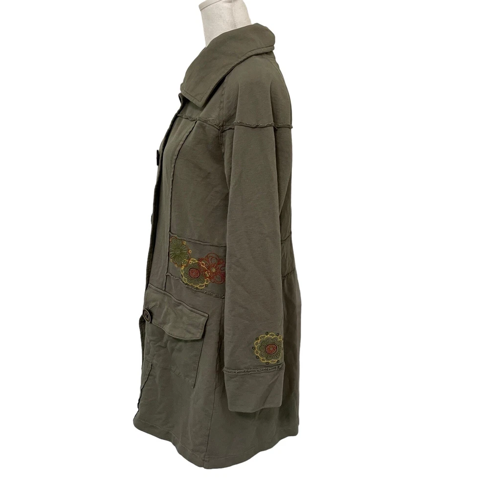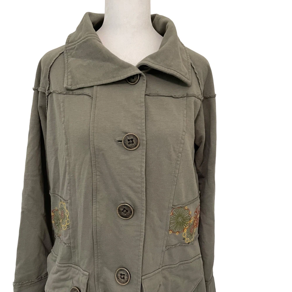 Acacia Embroidered Floral Button Front Knit Sweater Jacket Green size Medium Acacia Embroidered Jacket Size medium Sage green Embroidered floral detail throughout Long sleeve Exposed seam detail Button front 2 front button pockets Mid-length 100% cotton Great preowned condition Approximate measurements laying flat Bust 20.5" Length 30.5" 1lb 3 oz B4 bohemian, comfortable, boho, beach, hippie, hippy, festival, casual, fall, winter, twee, dark academia spring, gyspy, feminine, librarian, y2k, hippie, hippy, bohemian, festival, kidcore, kid core