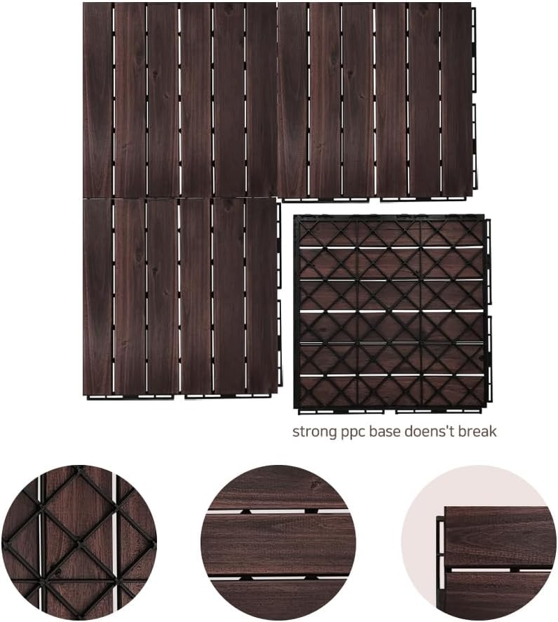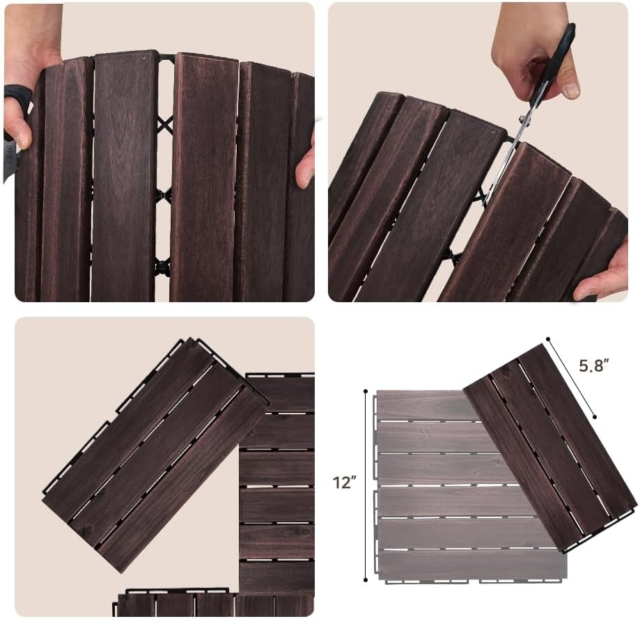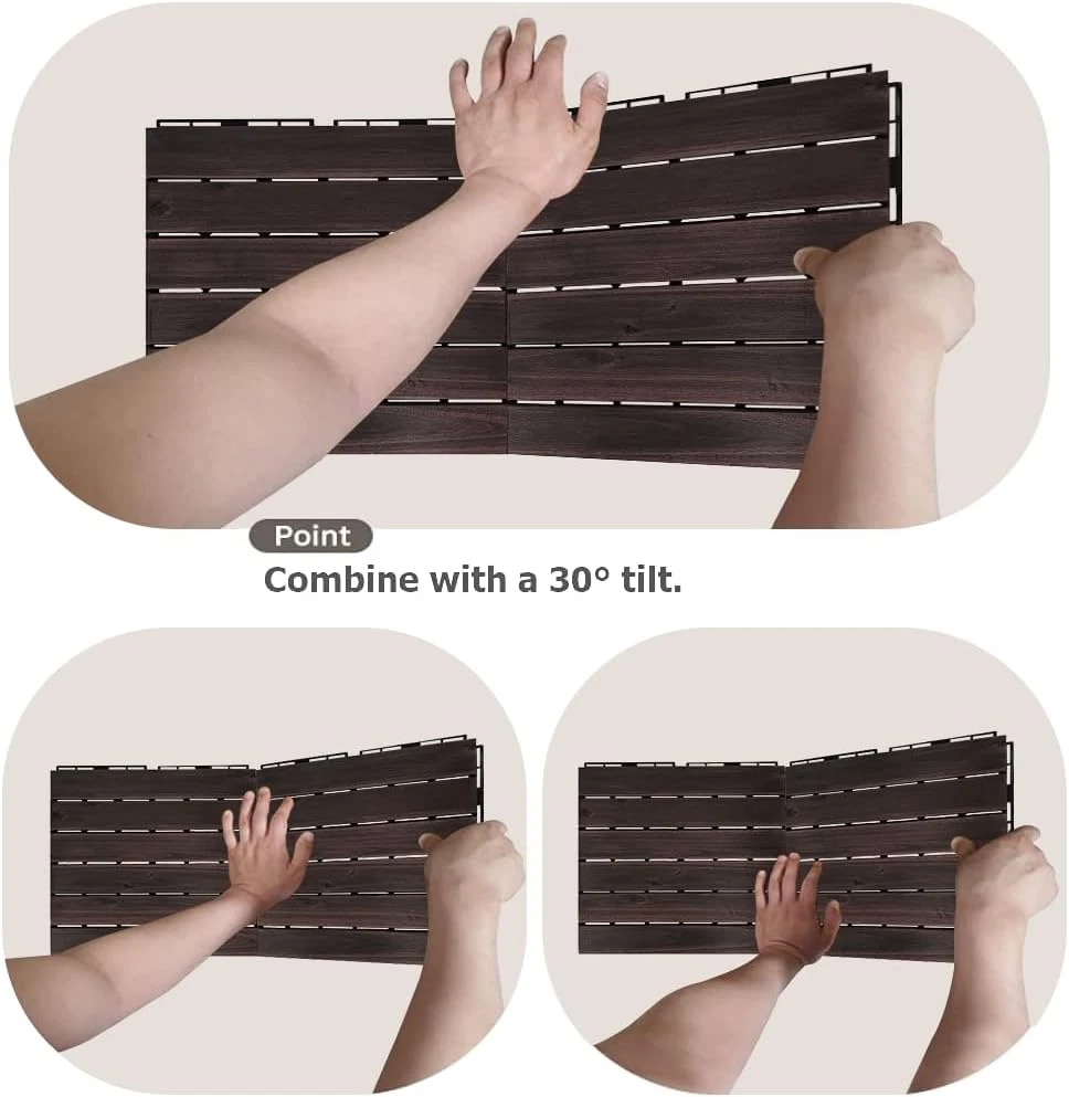 Natural Hardwood Decking – Crafted with genuine Acacia wood these interlocking tiles lock together to create a small ground deck, cover a worn patio, or even upgrade your balcony space for a handsome custom look. Change the mood - Made from wood, this product will completely warm up the atmosphere the moment you install it. Quick Interlocking Design – Our pre-oiled natural wood flooring not only looks amazing it’s easy to put together for DIYers. Simply lock them together by aligning the grooves and pushing them hard into place. No tools necessary. Optimal Build Height – [UNITURE] tiles are just at 0.78” in height which makes they can easily be placed over most surfaces or ground areas and won’t impact door openings. This makes them ideal for backyard decks, patios, pool areas, and more. Trusted Warranty Protection – Here at [UNITURE] we’re focused on providing high-quality and super durable tiles you can use almost anywhere. Contact us with any issues and we’ll be happy to help make it right. Product Description Acacia wood deck tile Acacia wood, which has a naturaltexture of wood, is a material with low deformationand deterioration. The robust design makes it durable and simple. Perfect as décor for both indoor and outdoor Exterior applications include use in outdoor patio flooring, dance floor for outdoor party, include shower mats, pools, ground and Interior applications include bathroom, living room carpet, terrace, apartment welcome mat, home office, balcony flooring, bathroom, reception and more! Easy Installation & Disassembly It is quick and easy to install and does not require glue or tools. All you have to do is snap the interlocking tiles together. Tilt it with your hand and press the part that is joined. In the process, you have to press it with a tilt of 30 degrees to connect the tiles well. FSC* Certification Products certified by Forest Stewardship Council UNITURE is good company that considers both the environment and products so that reckless logging does not harm the environment. Add to Cart Add to Cart Add to Cart Add to Cart Customer Reviews 3.9 out of 5 stars 79 4.3 out of 5 stars 75 3.9 out of 5 stars 13 4.0 out of 5 stars 10 Price $29.27 $ 29 . 27 $28.51 $ 28 . 51 $28.91 $ 28 . 91 $28.91 $ 28 . 91 Package Quantity 1Box (Set of 9pcs) 1Box (Set of 9pcs) 1Box (Set of 9pcs) 1Box (Set of 9pcs) Wood Type Acacia wood Acacia wood Acacia wood Acacia wood Size(W x L x H) 11.8 x 11.8 x 0.78 inches 11.8 x 11.8 x 0.78 inches 11.8 x 11.8 x 0.78 inches 11.8 x 11.8 x 0.78 inches Item Weight 1.52 pounds (1P) 1.52 pounds (1P) 1.52 pounds (1P) 1.52 pounds (1P) Non-Slip O O O O