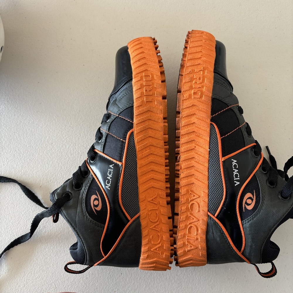 WORN-ONCE outside to try out, but no we’re on soles. Acacia Men's Spider Gel Broomball Sneakers are high-top lace-up athletic shoes in black and green fabric. They are comfortable and have a cap toe design. The outsole material is polyurethane and the lining and insole materials are fabric. The shoes are suitable for activewear, casual wear, walking, and have a solid pattern. The Spider Gel Broomball model has a spider theme and is suitable for summer, fall, and spring seasons. The shoes are available in US size 10, with a medium shoe width