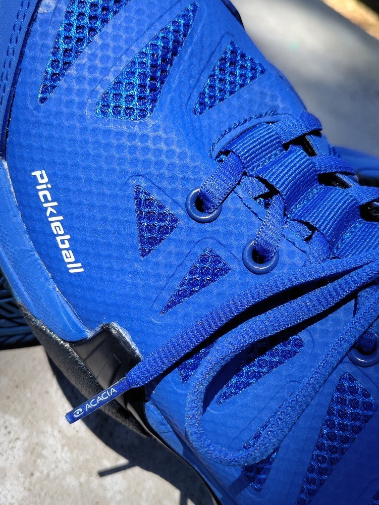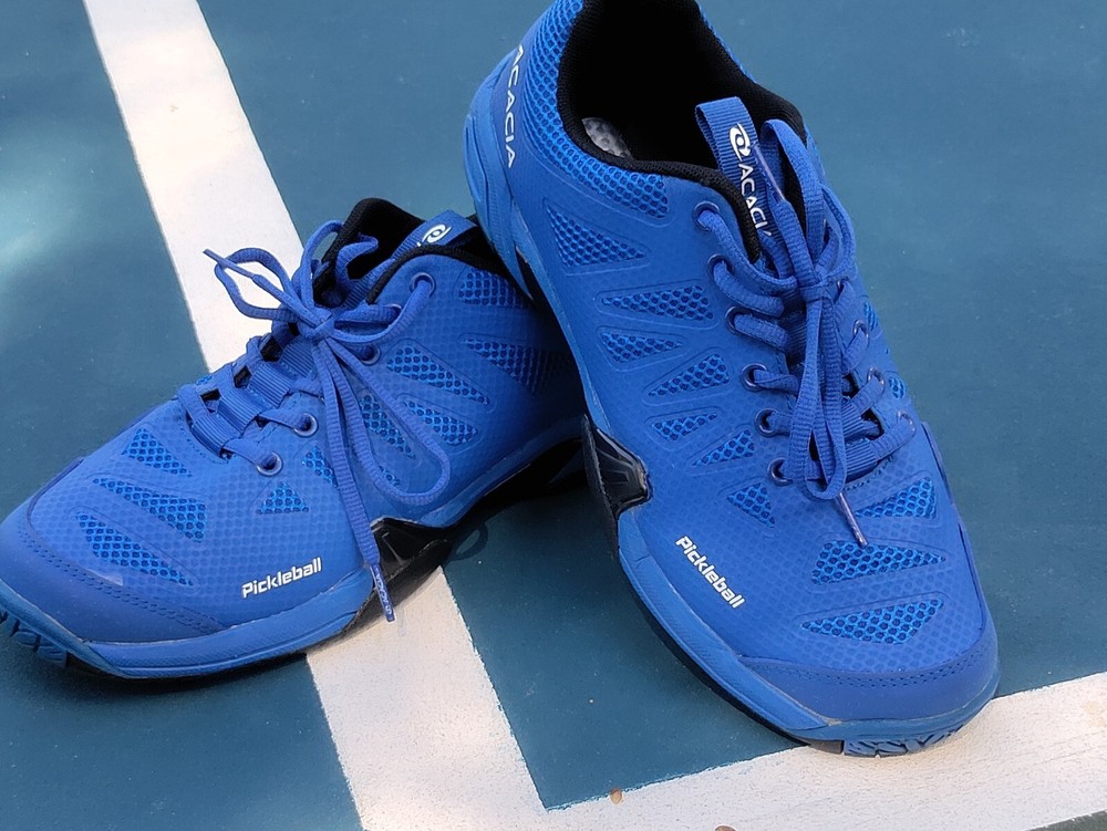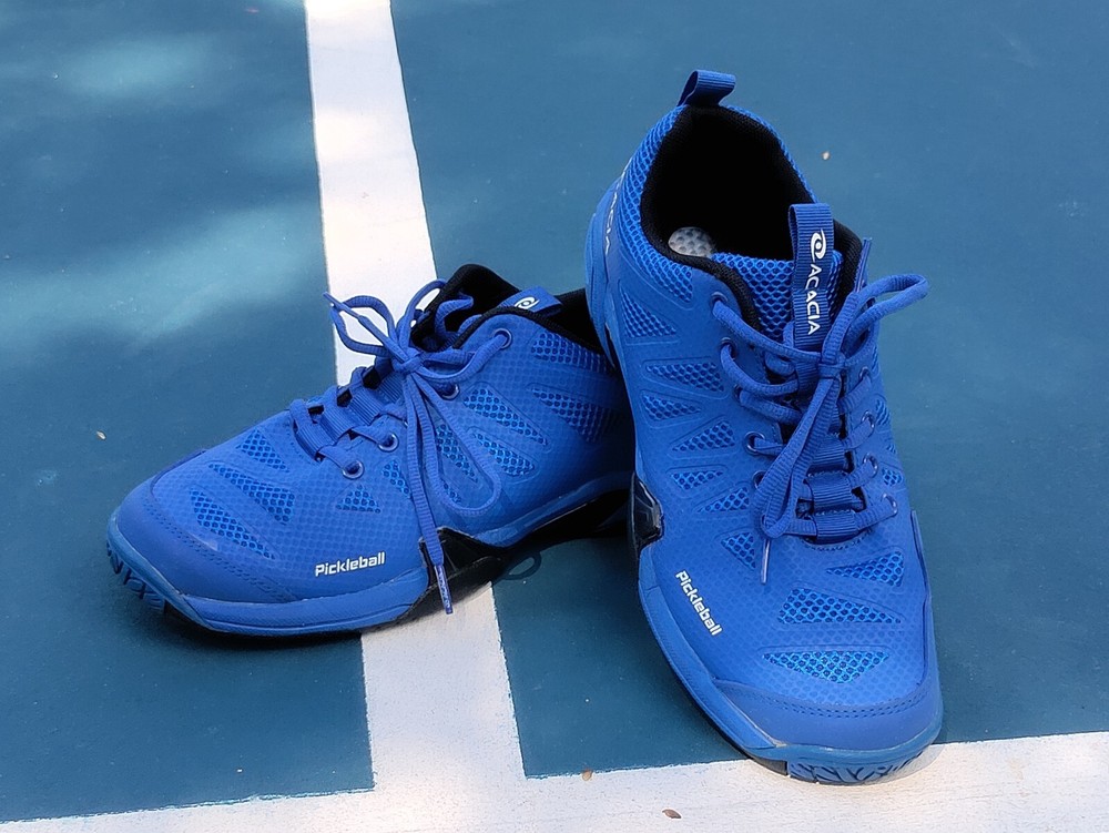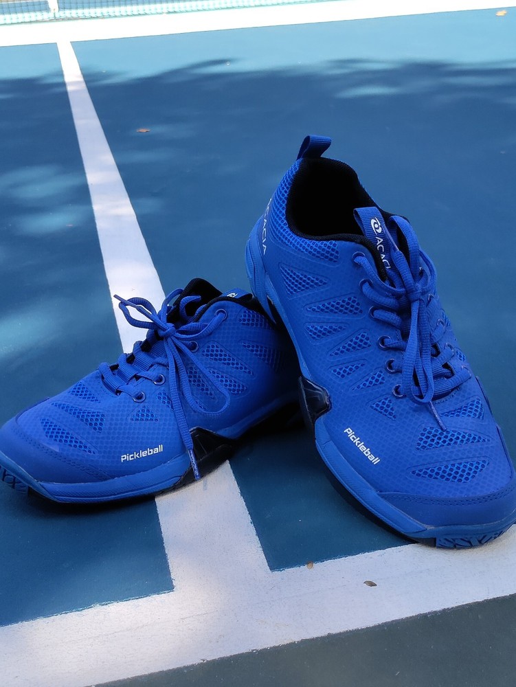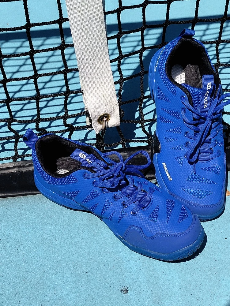 These acacia unisex pickleball shoes are perfect for women who wear medium 8 width shoes and men who wear size 6.5. The blue and black color combination adds a touch of style to your pickleball outfit. These shoes are designed to provide comfort and support during intense matches, making them a reliable choice for any player. The brand, acacia, is known for its quality and durability, ensuring that these shoes will last through many games. They are suitable for both casual and competitive players, making them a versatile option for anyone looking for a comfortable and stylish pickleball shoe. Great condition.