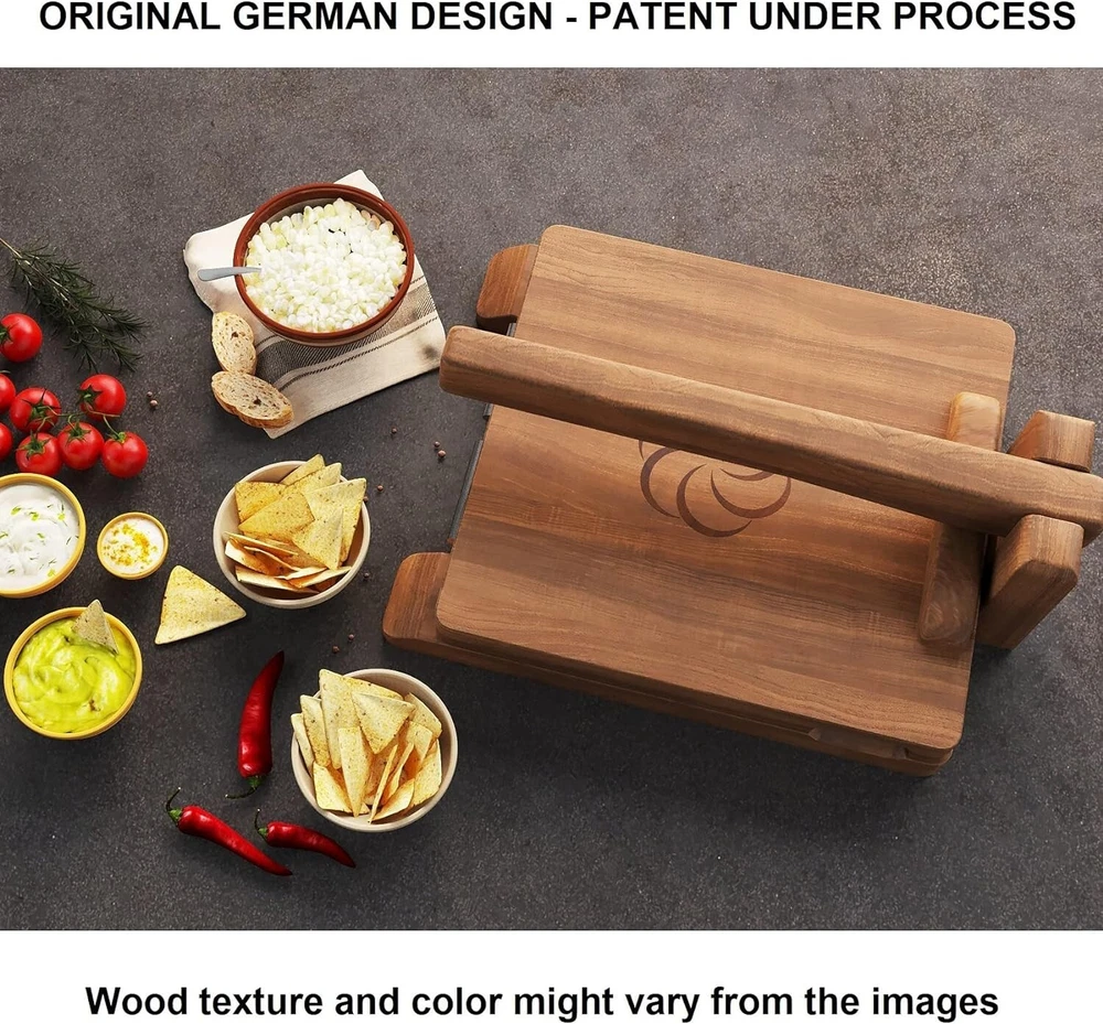 This tortilla press set is a game-changer! The acacia wood is sturdy and gorgeous, making fresh tortillas a breeze. Love the included dough cutter and plenty of papers—perfect for taco nights. The free e-book is a helpful bonus. Highly recommend for homemade tortilla lovers!